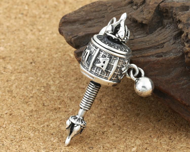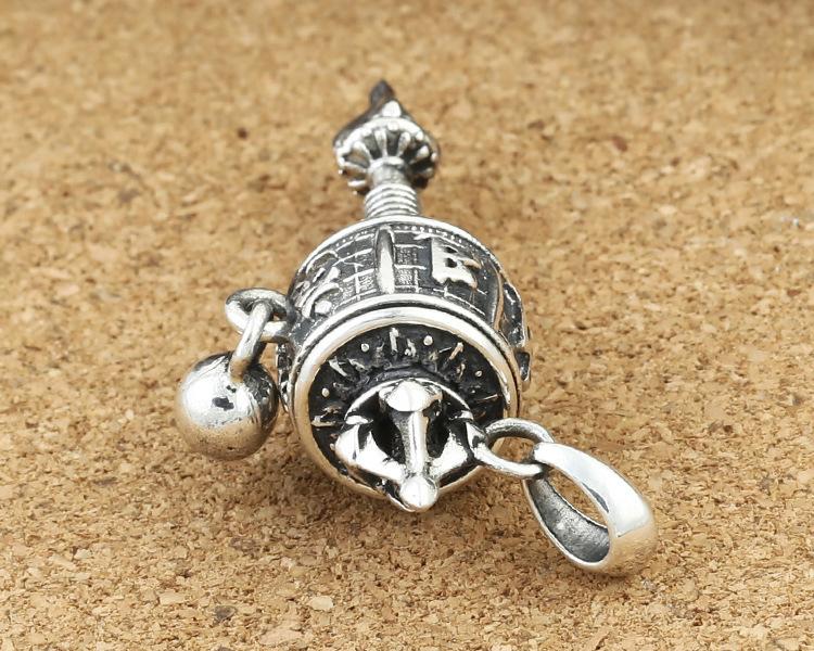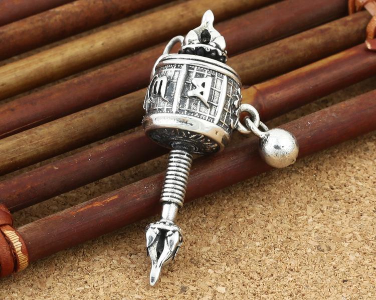 Venta al por mayor, joyería de plata esterlina S925, moda retro, artesanía, plata tailandesa, seis palabras verdaderas, colgante de bola colgante, cadena, colgante de suéter