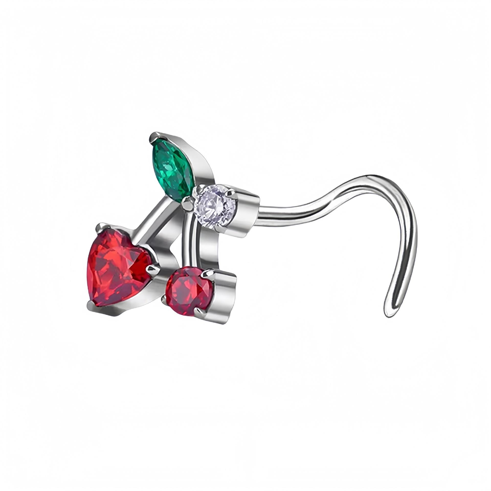 Acero Inoxidable Forma de Cereza Zircón Uña para la Nariz Anillo para la Nariz Joyería Simple Casual Joyería Perforación Uña para la Oreja Uña para el Labio Joyería para la Nariz Transfronterizo