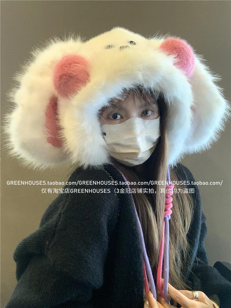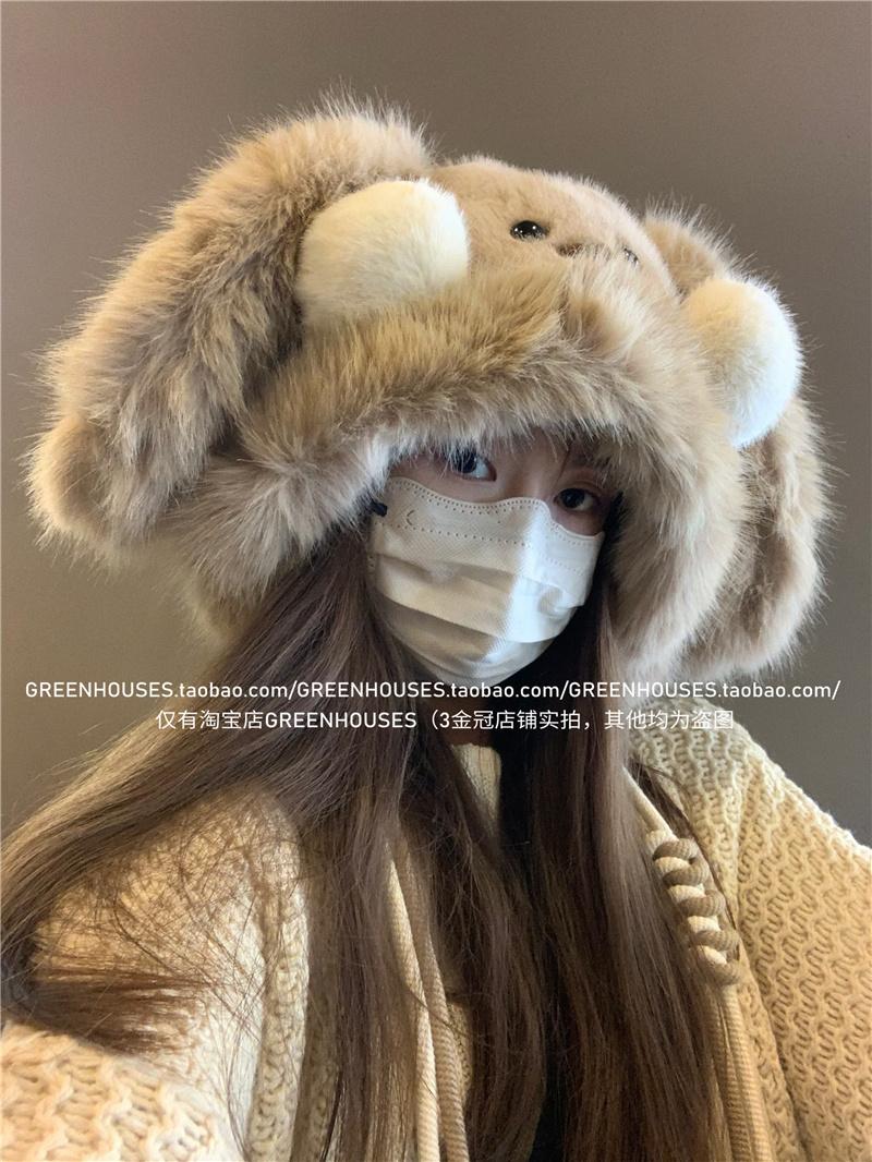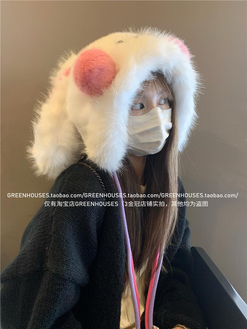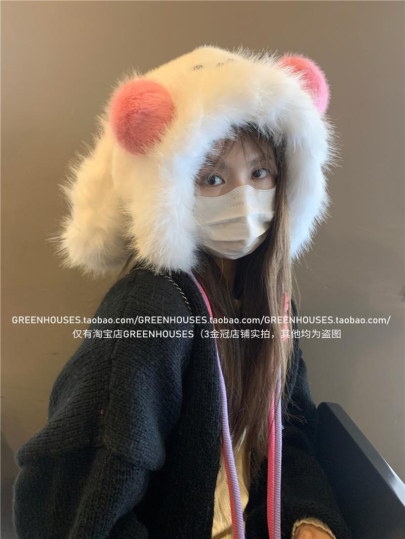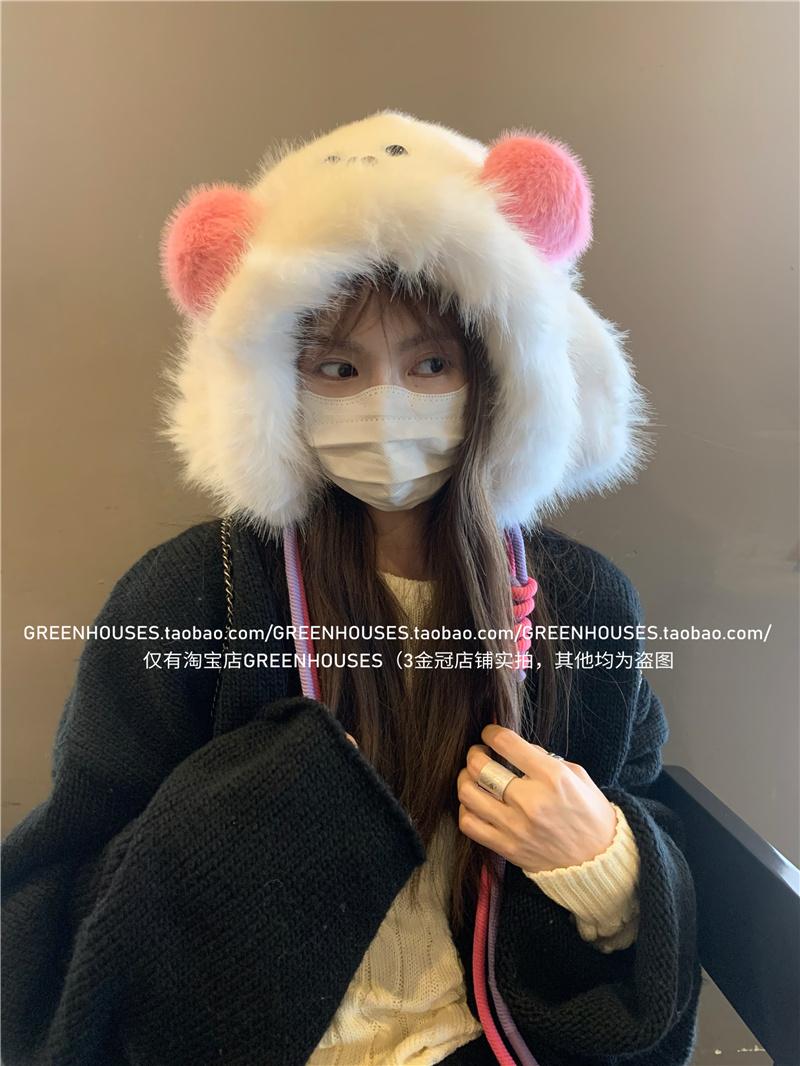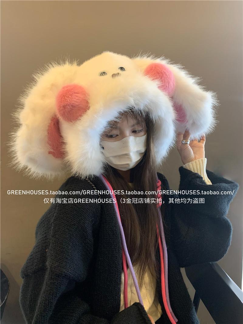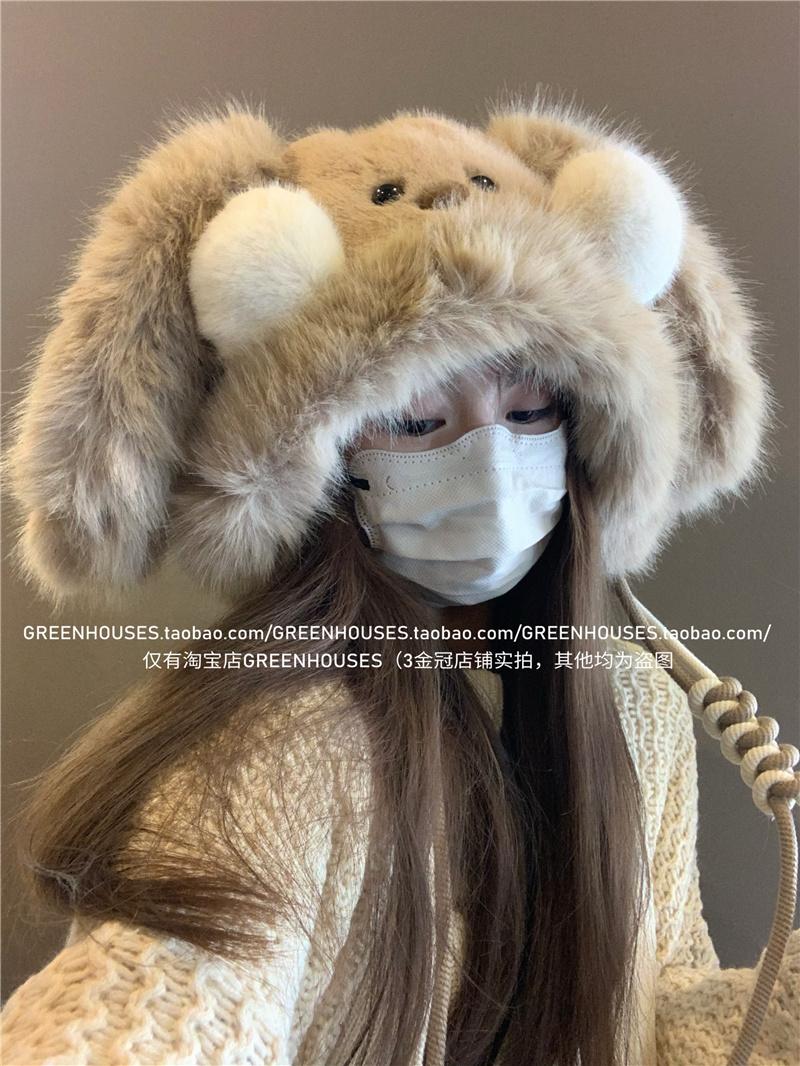 2024 Nuevo Corea del Sur Dulce Lindo Orejas de Conejo Gorro Esponjoso Cara de Niño Pequeño a Prueba de Frío Protección para las Orejas Engrosado Gorro Lei Feng