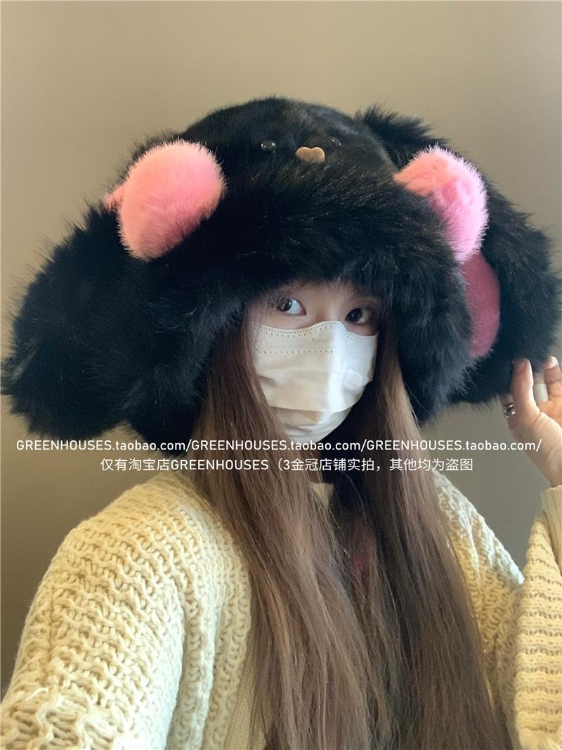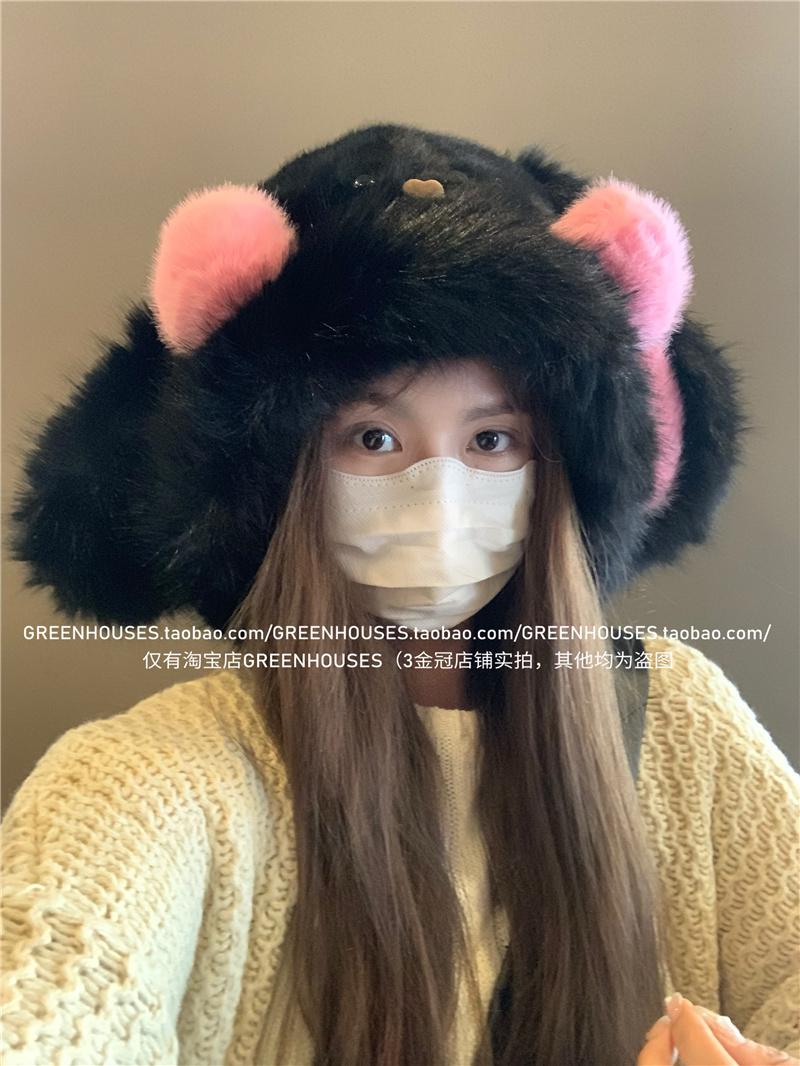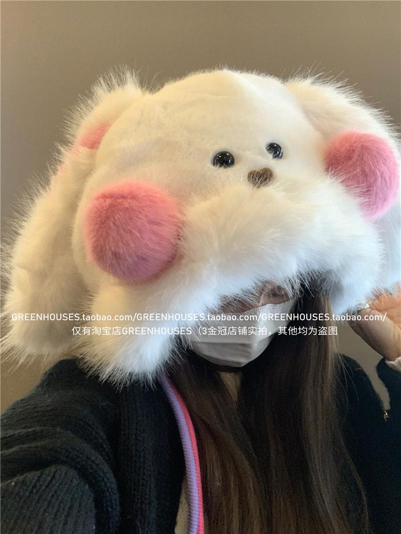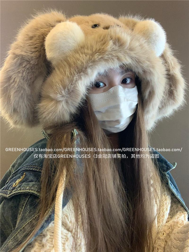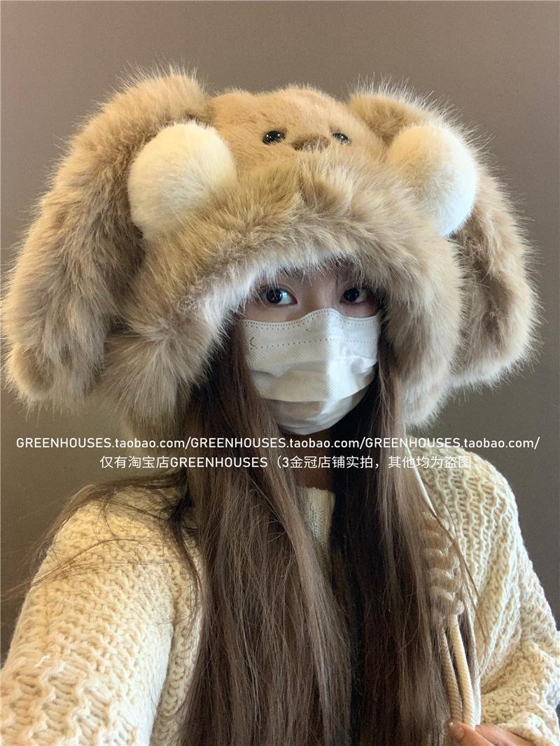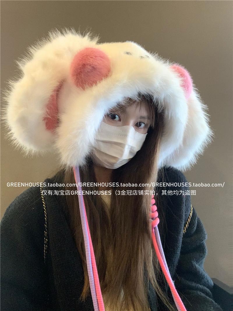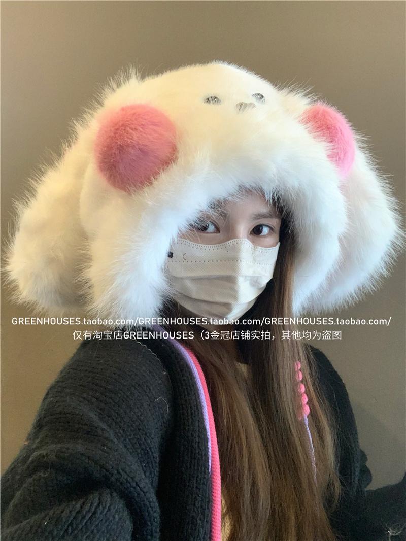 2024 Nuevo Corea del Sur Dulce Lindo Orejas de Conejo Gorro Esponjoso Cara de Niño Pequeño a Prueba de Frío Protección para las Orejas Engrosado Gorro Lei Feng