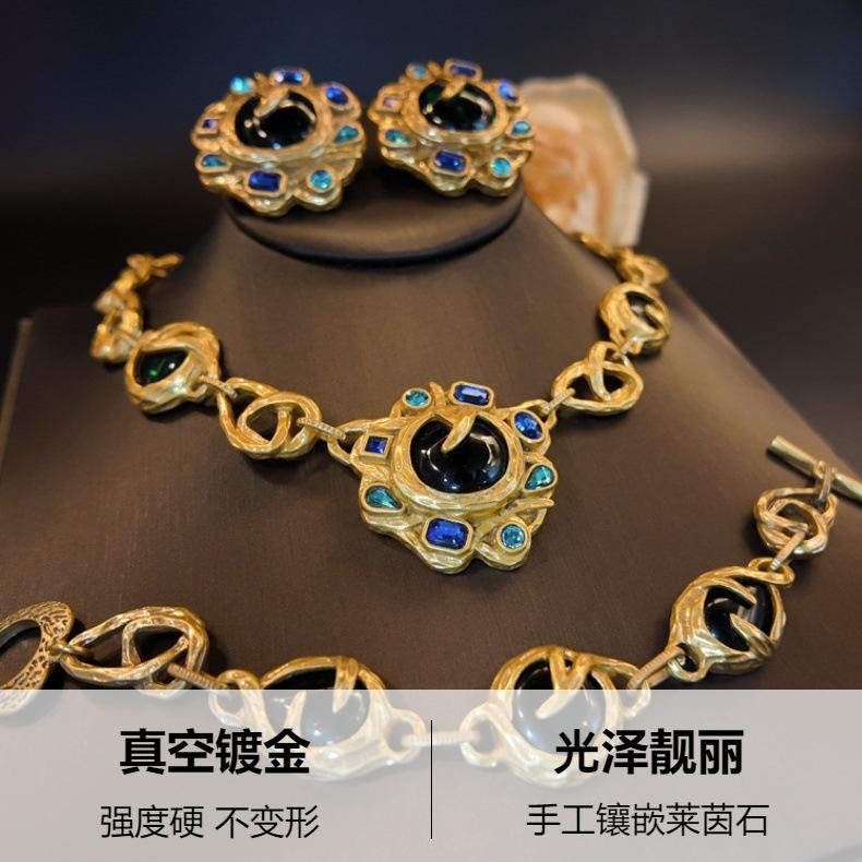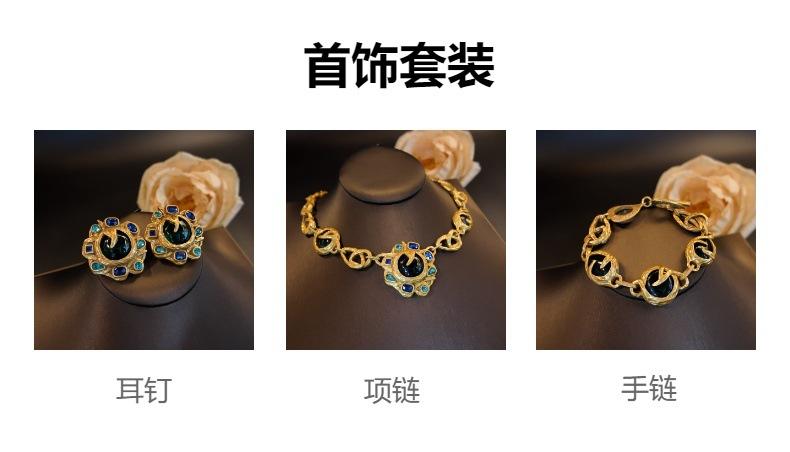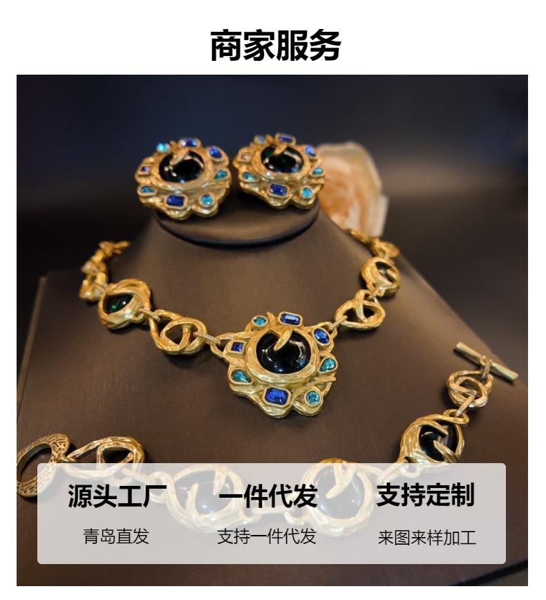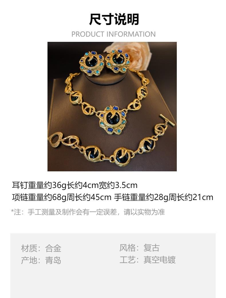 Joyería Retro Azul Rin Mano Aretes Girasol Verde Collar Cadena Rama Pulsera Conjunto Joyería Mayoreo