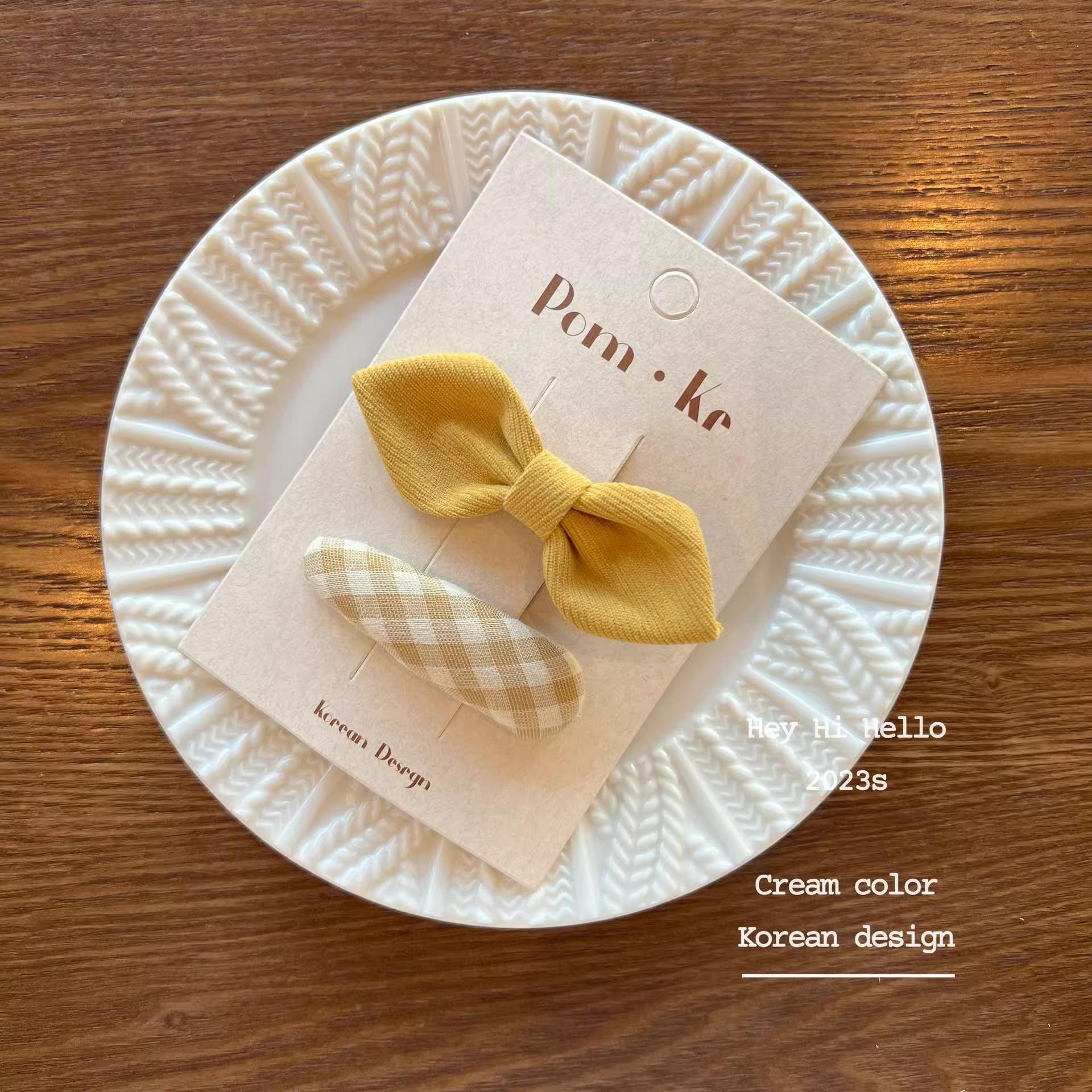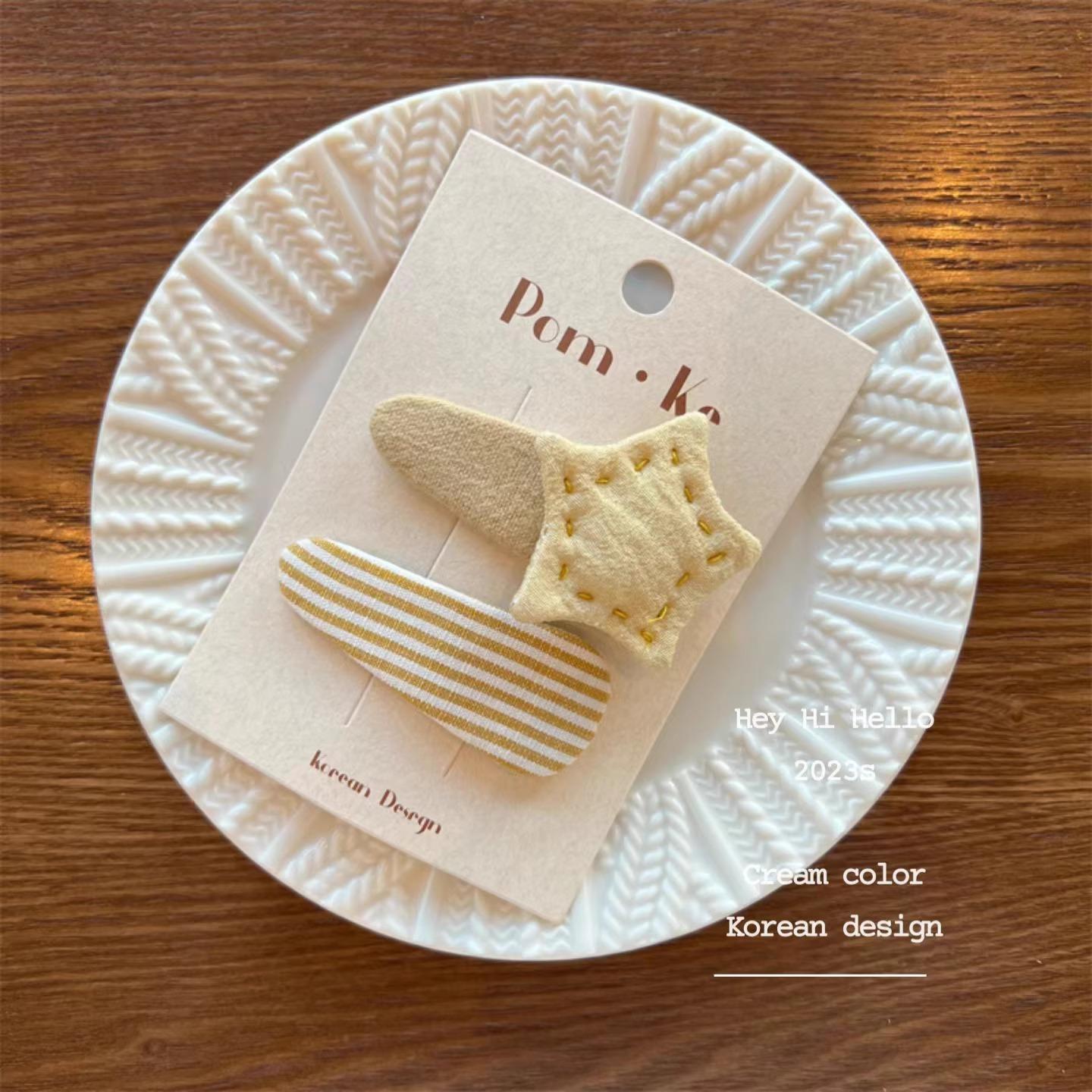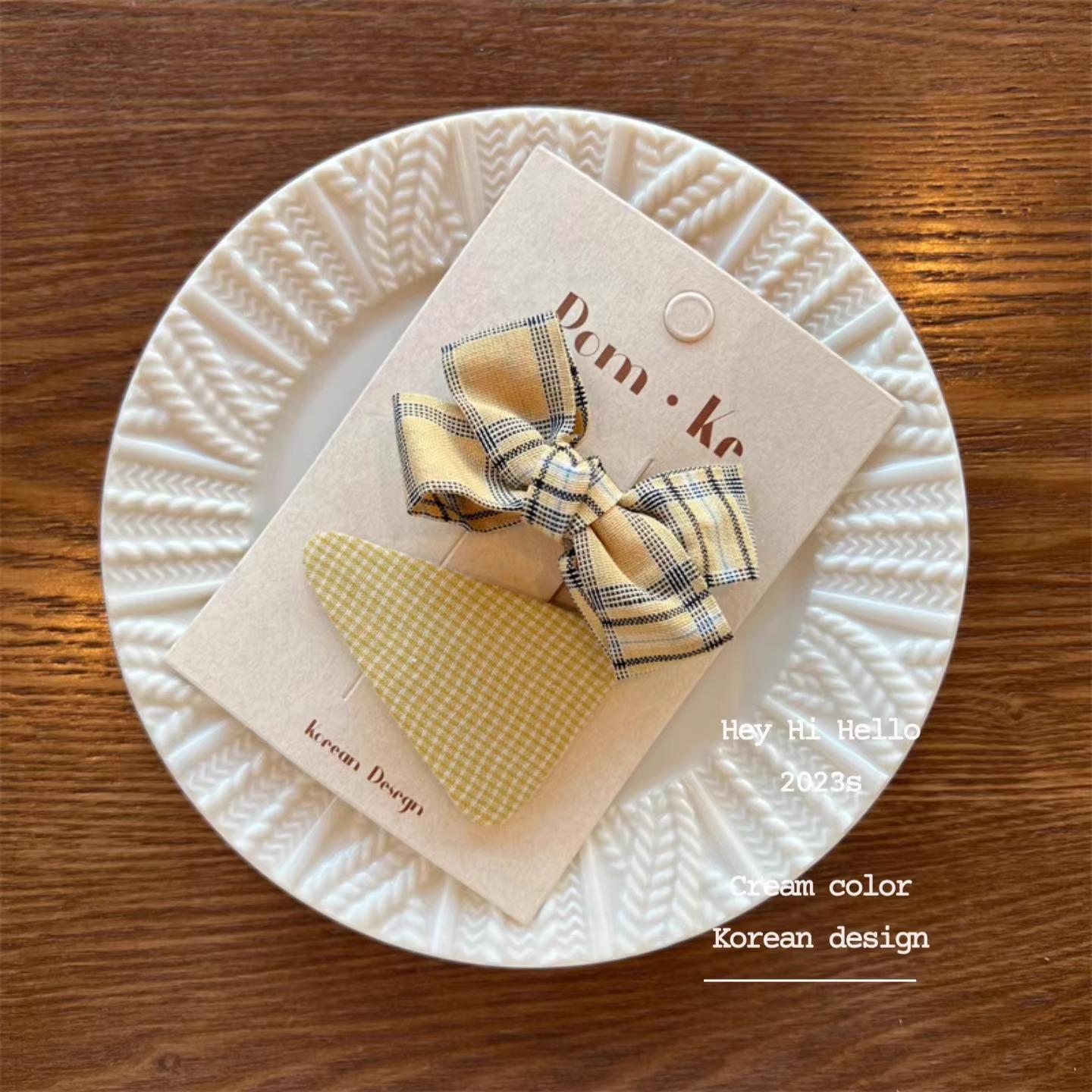 Horquilla de conejo con estrella bordada a mano, estilo coreano, con cuadros amarillos, para el pelo, lazo de tela, para niños