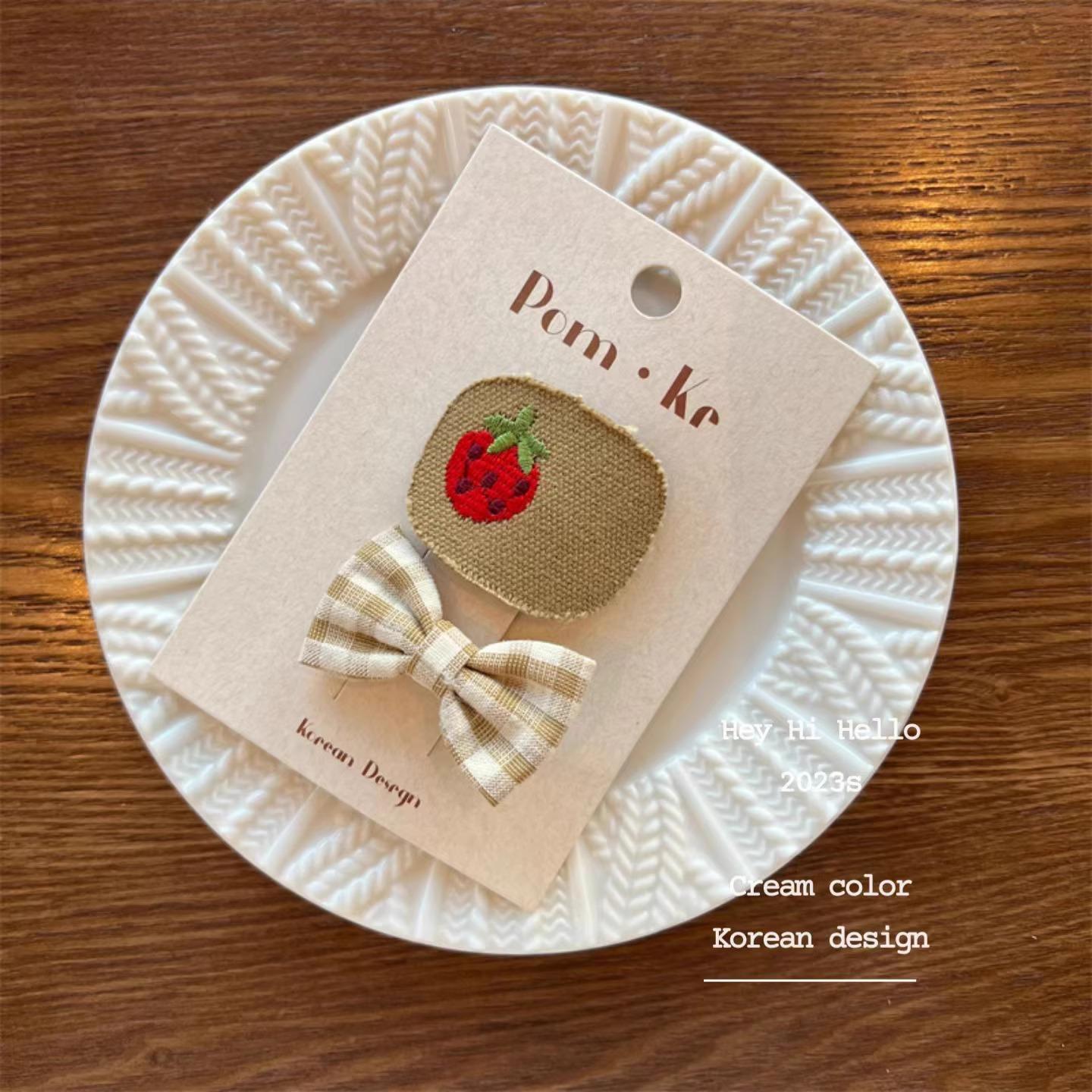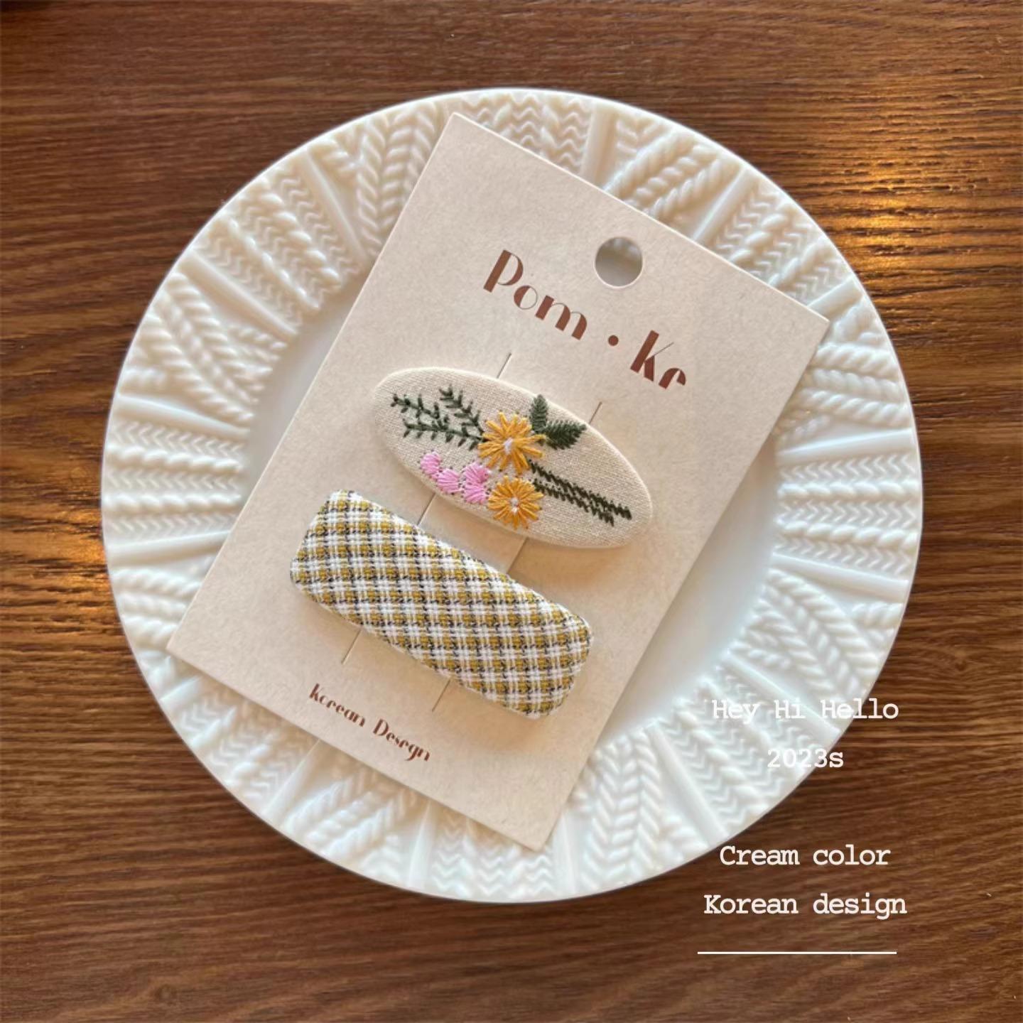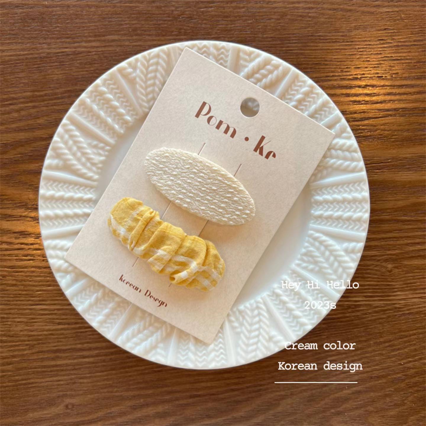 Horquilla de conejo con estrella bordada a mano, estilo coreano, con cuadros amarillos, para el pelo, lazo de tela, para niños