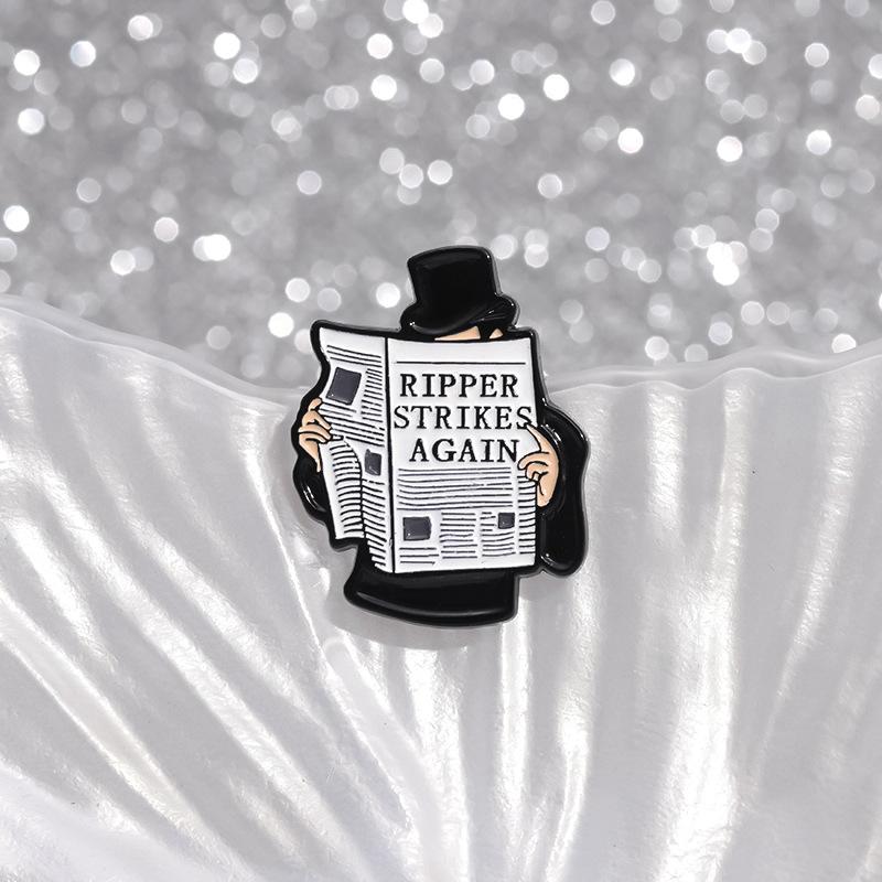 Hombres asesinos que leen periódicos en torno a obras de cine y televisión europeas y americanas Modelado de personajes Personalidad Moda Ropa Decoraciones Broche