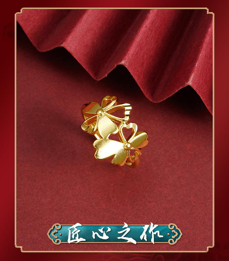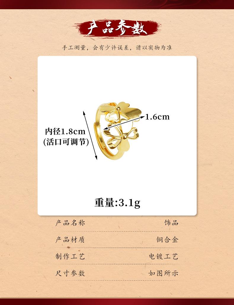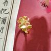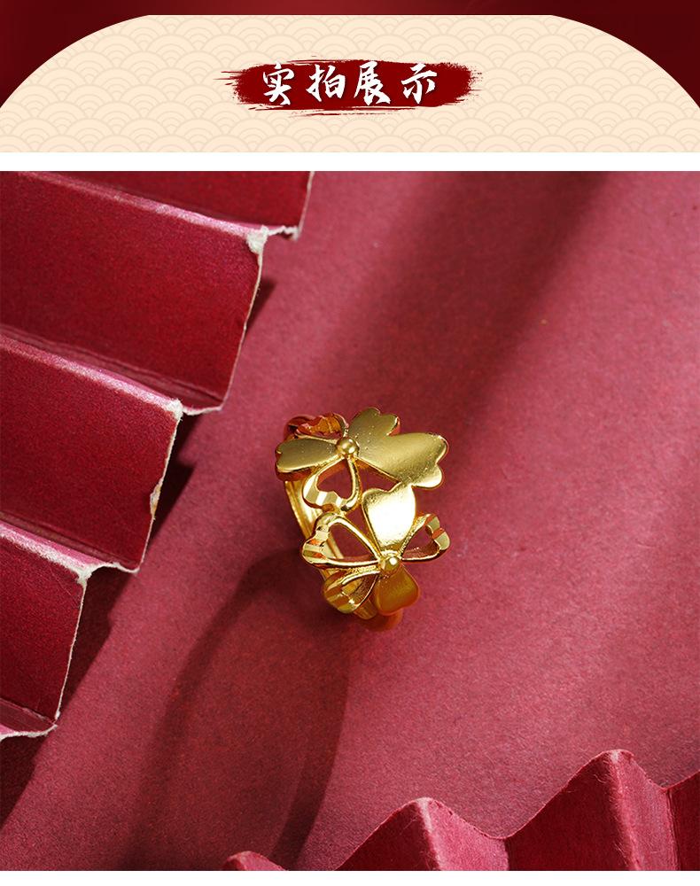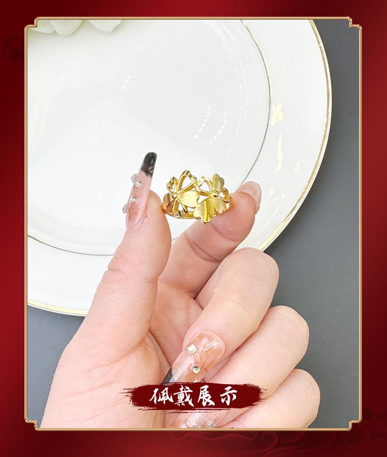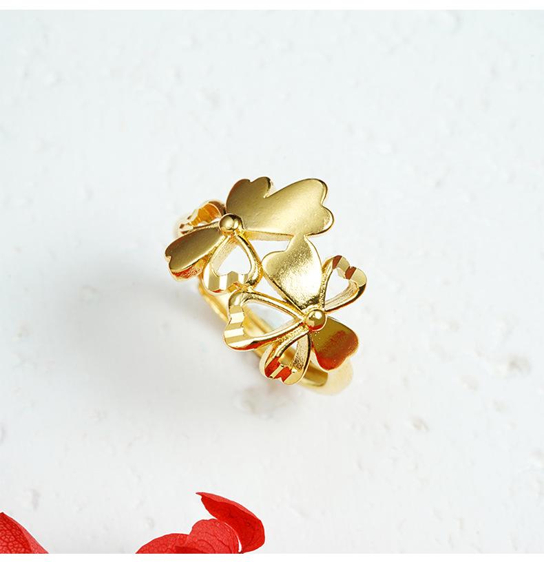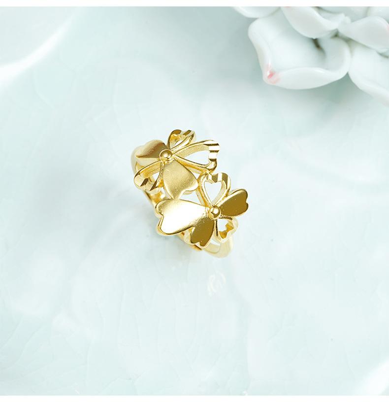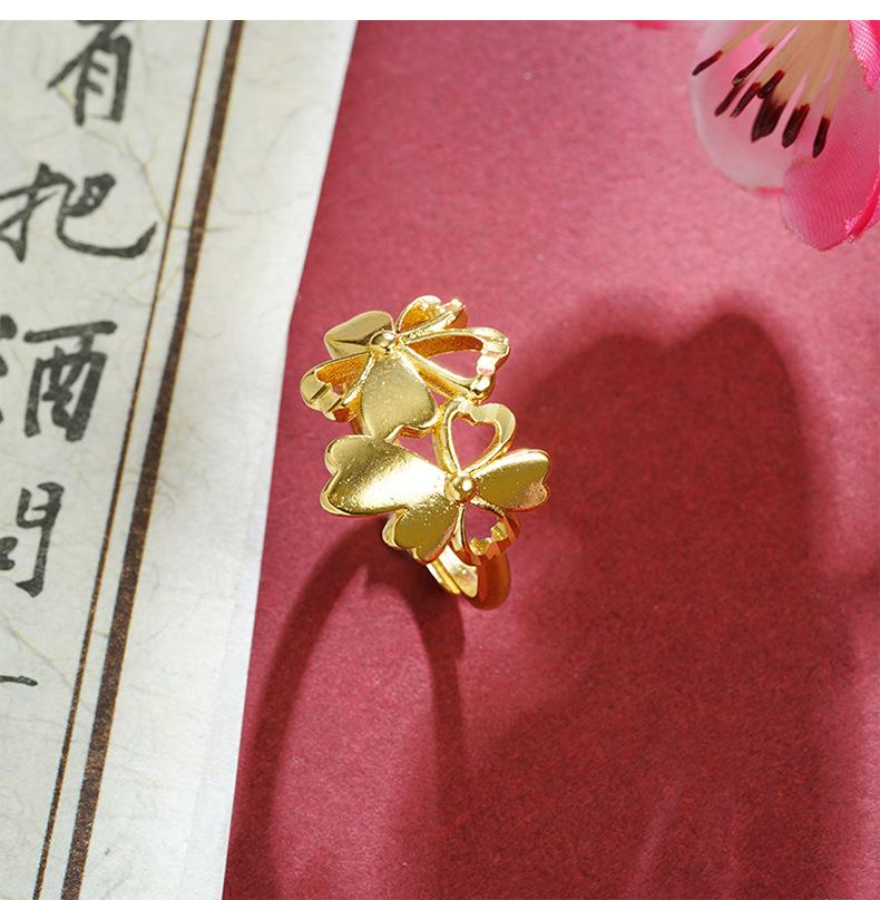 Anillo de Oro Arena Vietnamita Transfronterizo Retro Lujo Ligero Calado Trébol de Cuatro Hojas Joyería de Mano para Mujer de Color Duradero