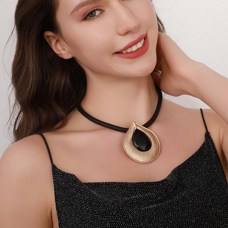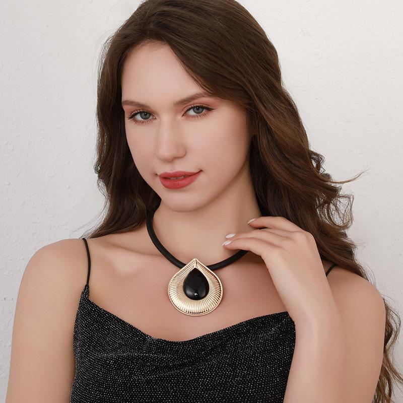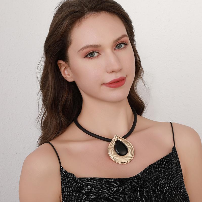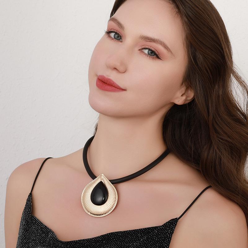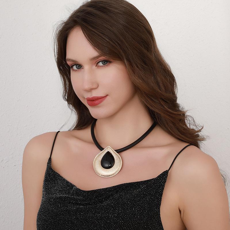 Collar corto de joyería retro para damas transfronterizas de Amazon, collar de moda con temperamento geométrico de metal y gota de agua, venta al por mayor en Europa y Estados Unidos.