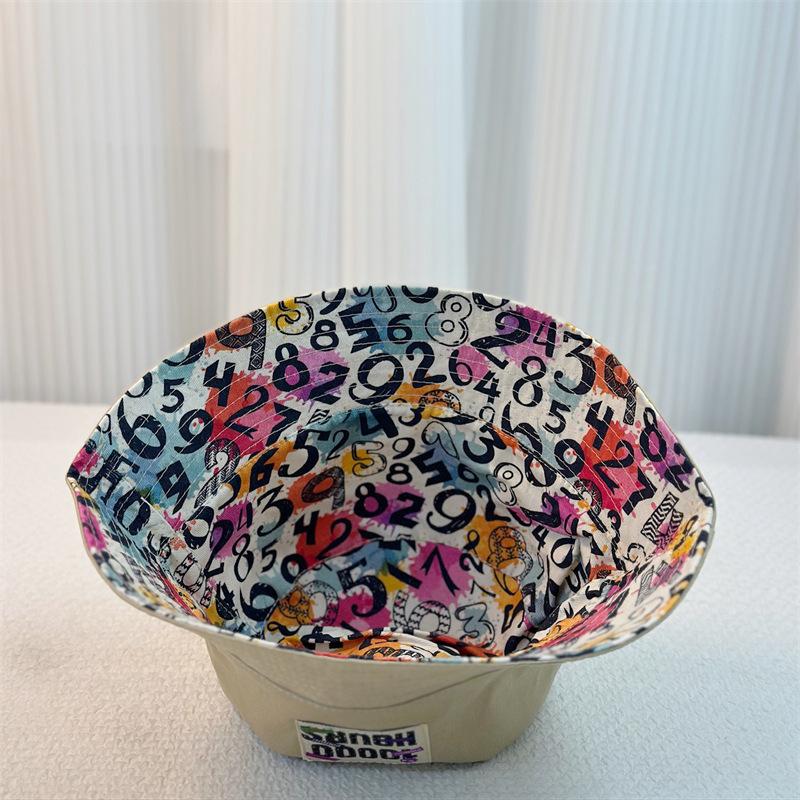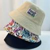 Sombrero de pescador japonés de cabeza grande, de doble cara y combinable, nuevo estilo, parasol, protección solar, etiqueta con letras impresas para parejas, sombrero de lavabo de ala ancha