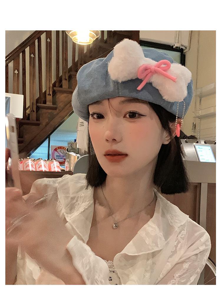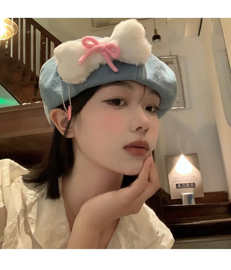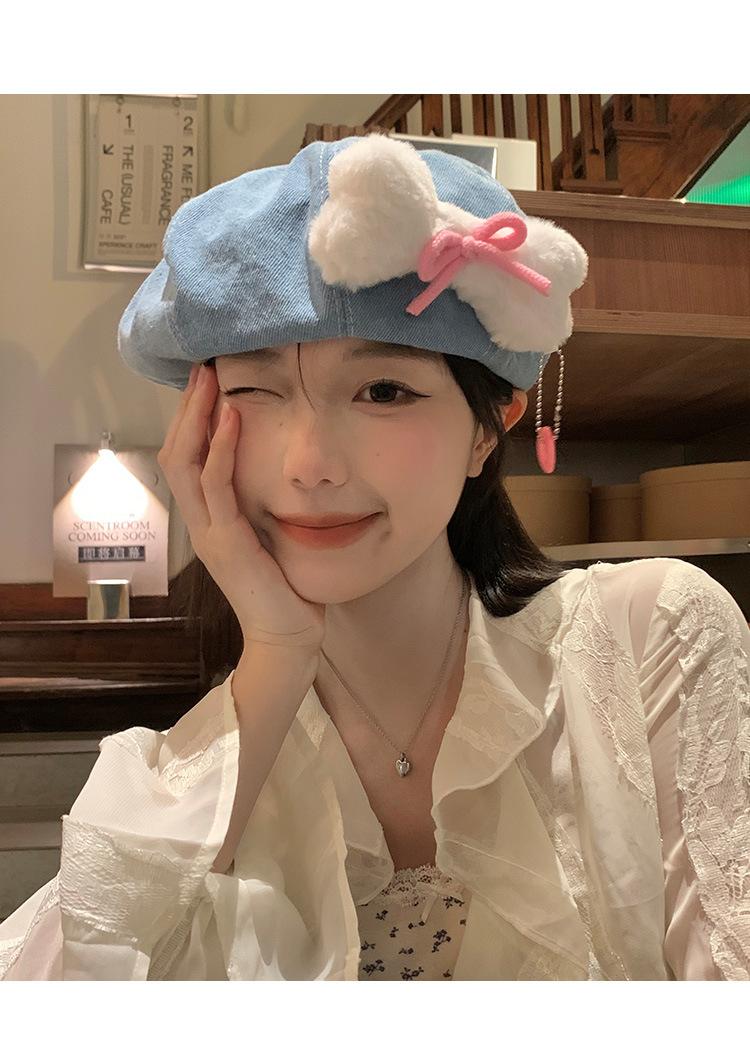 Boina vaquera de estilo coreano, estilo japonés, con huesos de peluche, para mujer, sombrero de pintor Beilei, sombrero octogonal con gran circunferencia de cabeza, moda de primavera y otoño