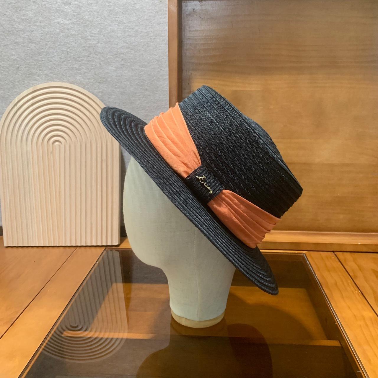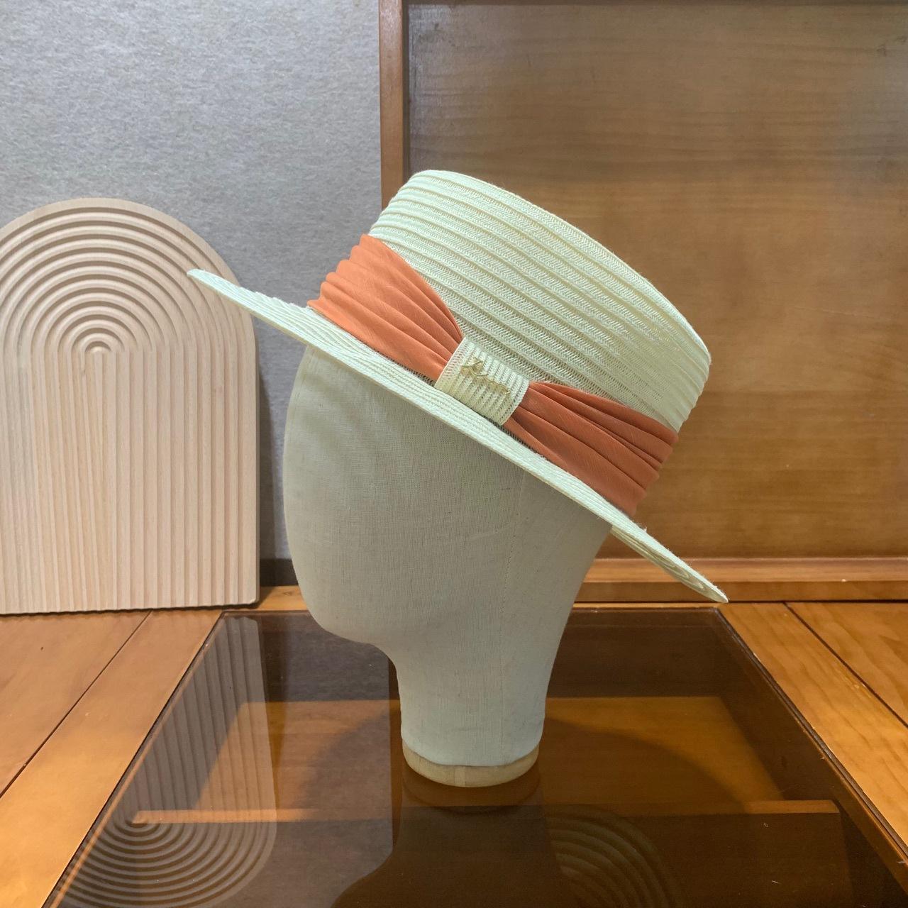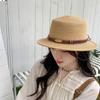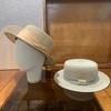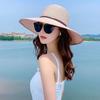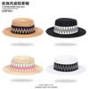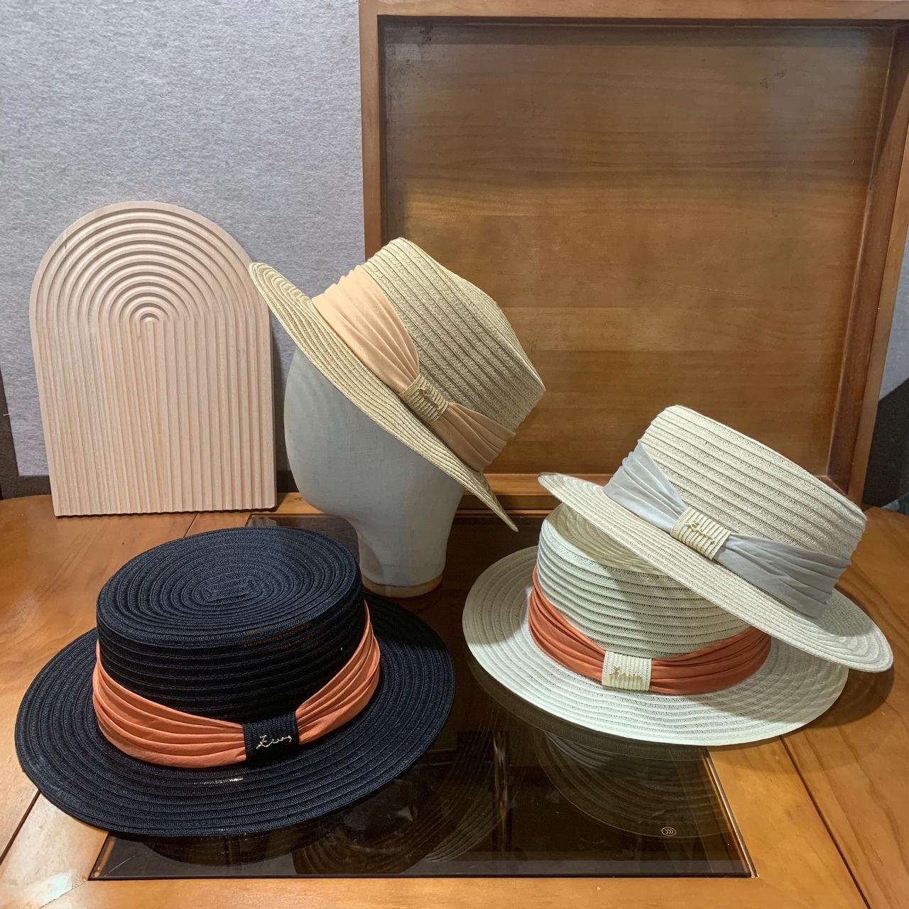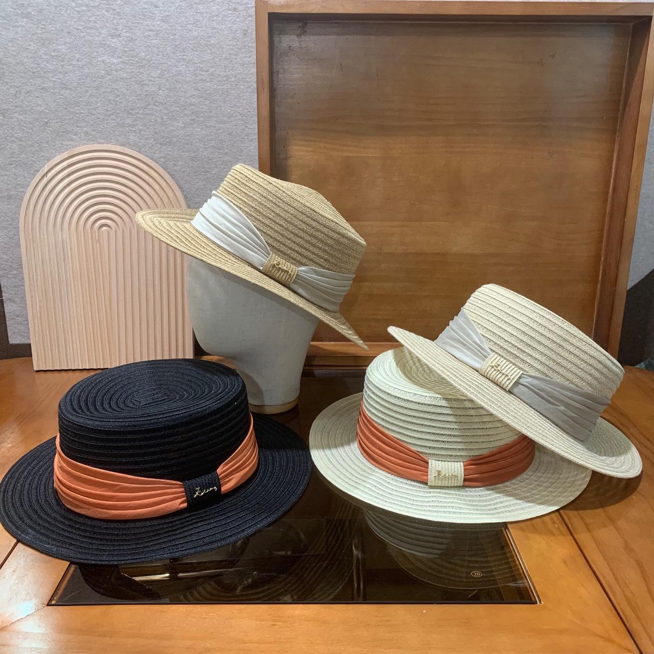 Sombrero de Paja de Playa de Copa Plana Superior Francesa de Lino Imitación para Mujer Adecuado para Viajes y Viajes Fotografiando Junto al Mar Protector Solar Lavable Sombrero con Visera