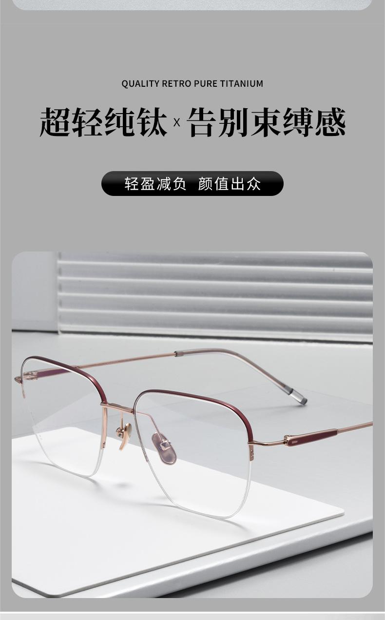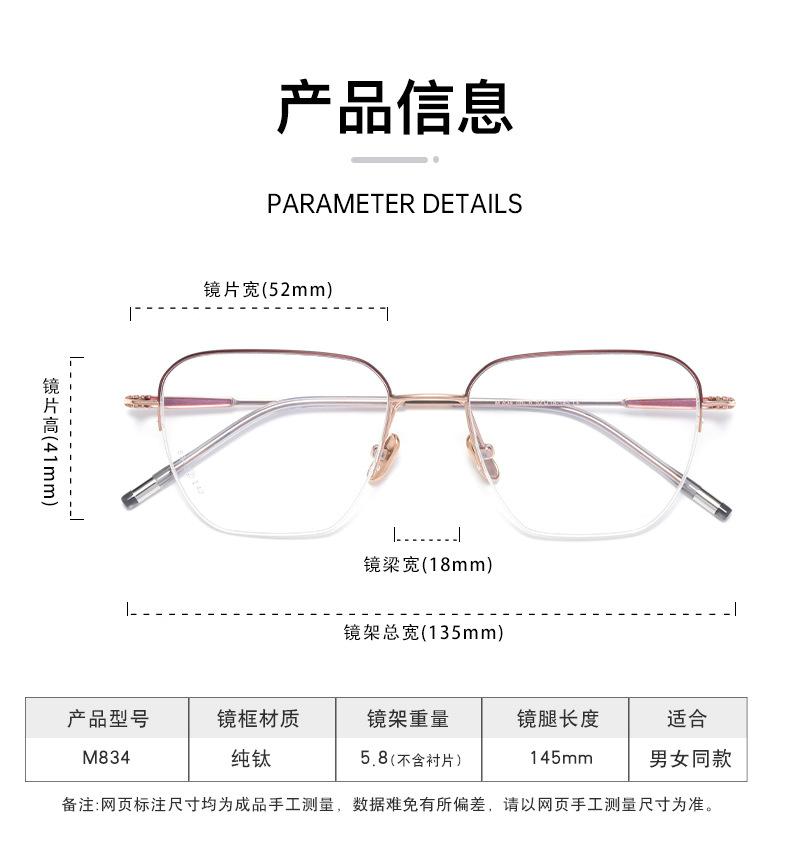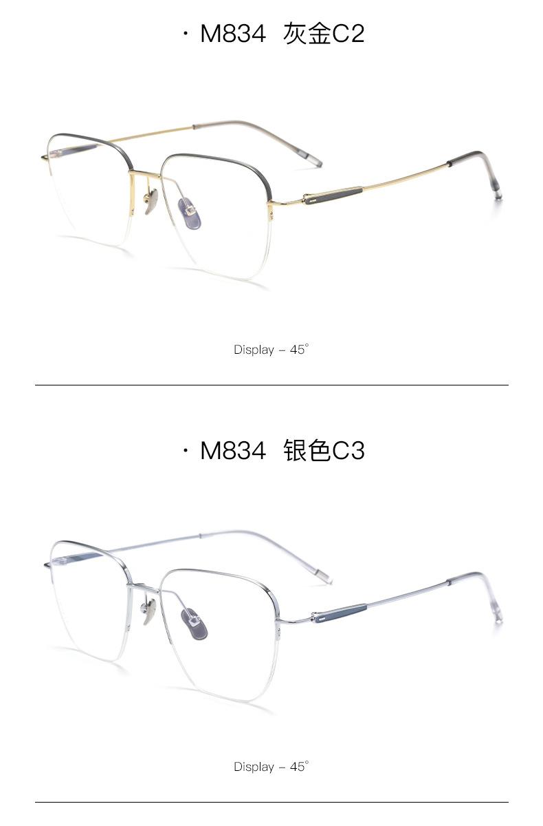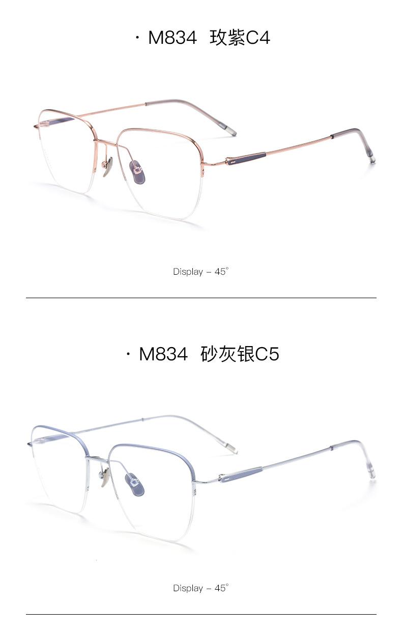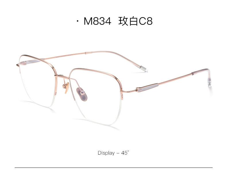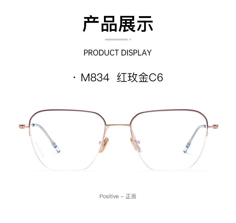 Armazón de gafas Baishifen M834 Shenzhen bicolor galvanizado de titanio puro con gafas para miopía para mujer, armazón de gafas retro de media montura