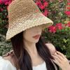 Sombrero Japonés de Paja de Color Contraste Simple Sombrero de Liebre para Mujer Verano Viaje Sombrero para el Sol Vacaciones Junto al Mar Parasol Protector Solar Sombrero con Aro para el Cabello