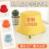 Sombrero para niños, sombrero amarillo pequeño para estudiantes de primaria y jardín de infantes japonés, sombrero de pescador, sombrilla, protector solar, gorro con logo impreso.