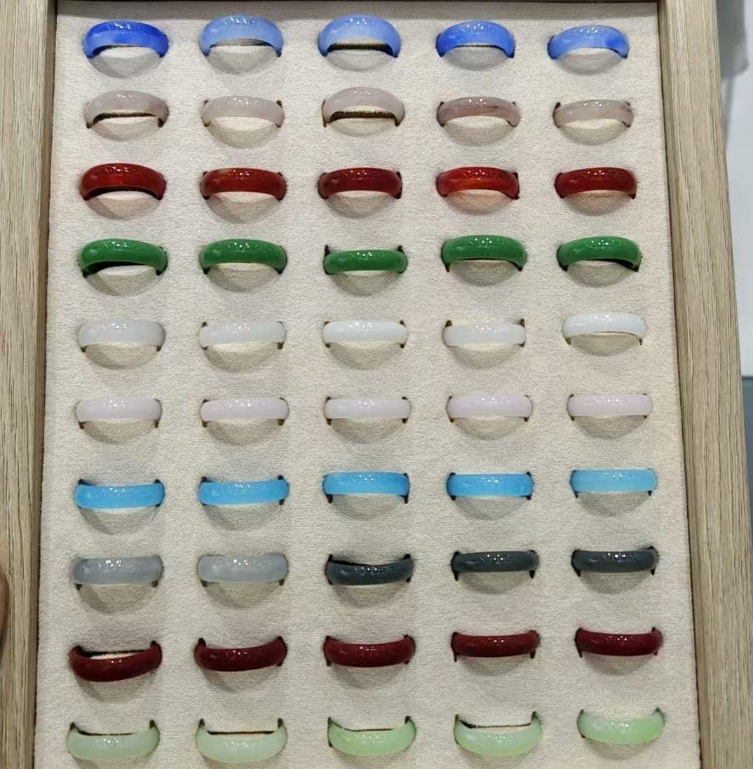 Agate color ring, White jade ring, Blue jade ring, Gray jade ring, Purple jade ring, Ink jade ring, Green plum...