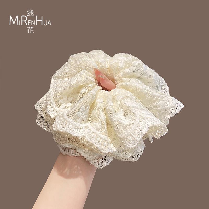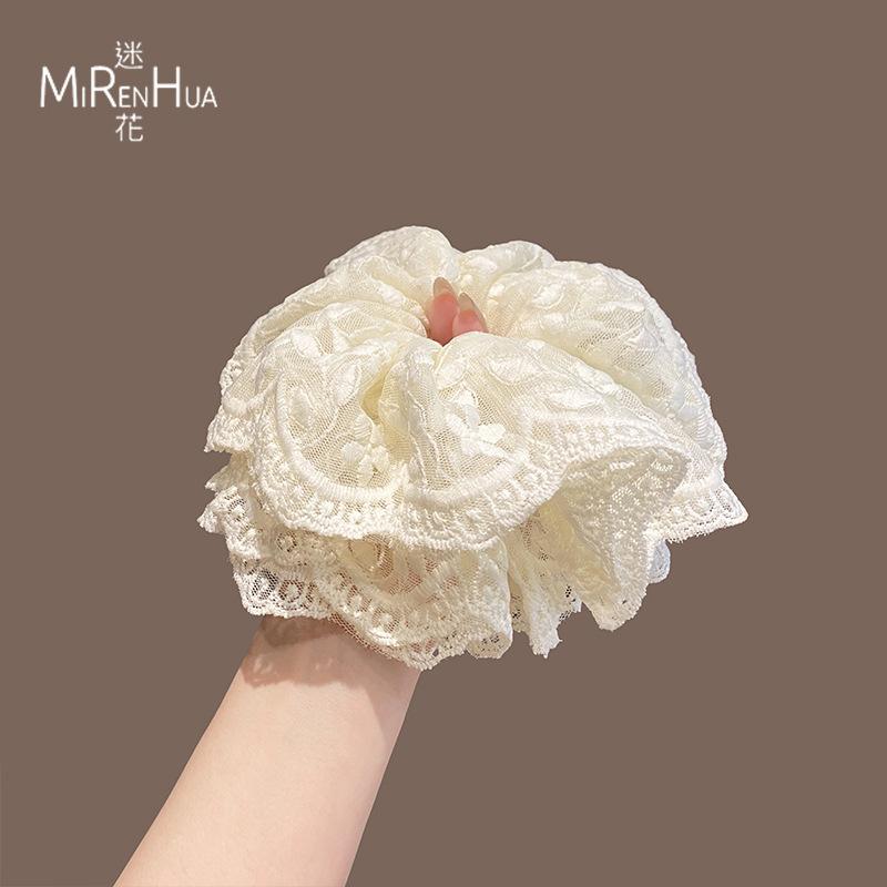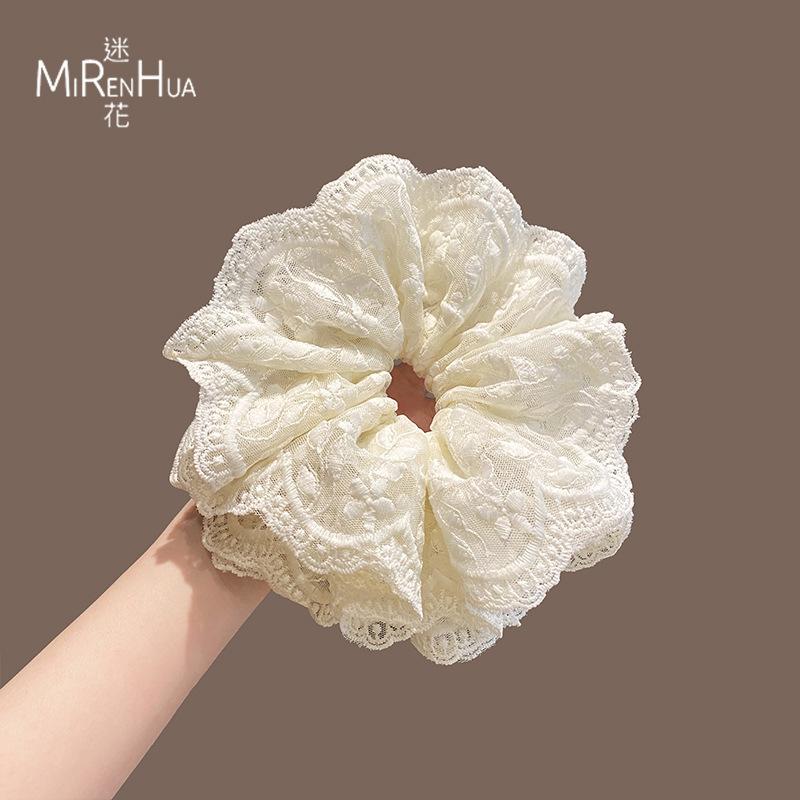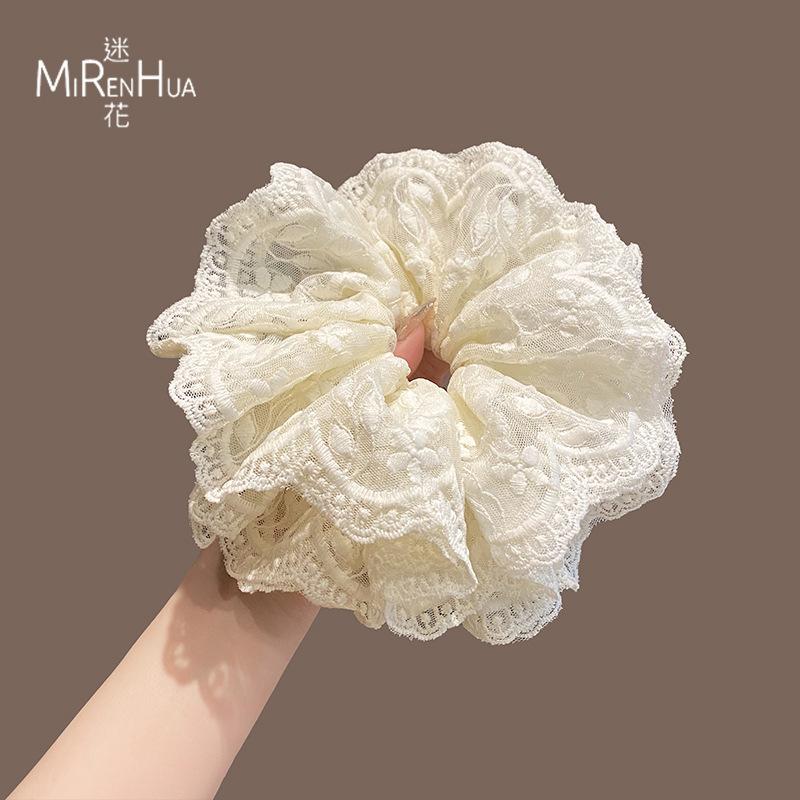 Diadema elegante de moda para mujer, accesorios para el cabello de alta gama, con encaje de flores pequeñas y anillo para el cabello de intestino grueso de Corea del Sur