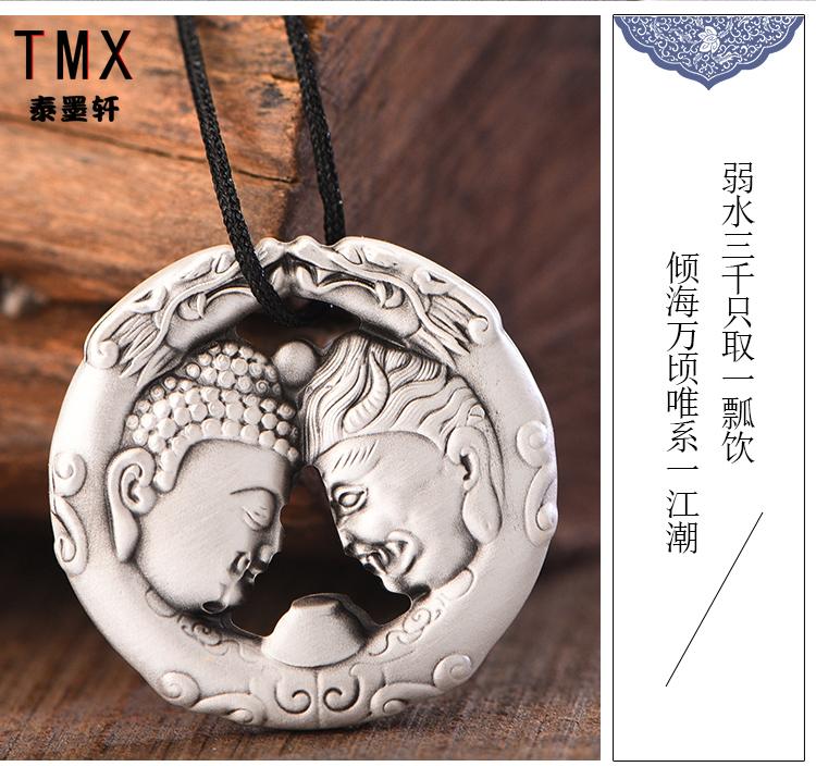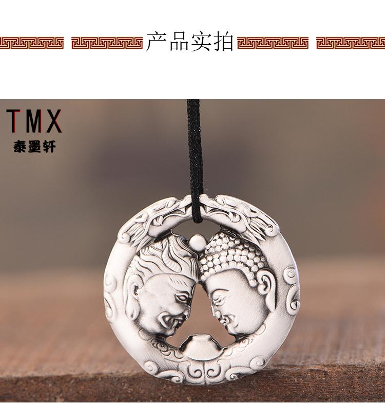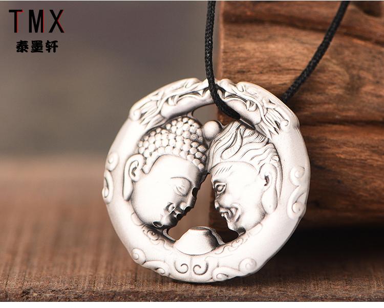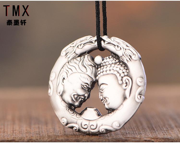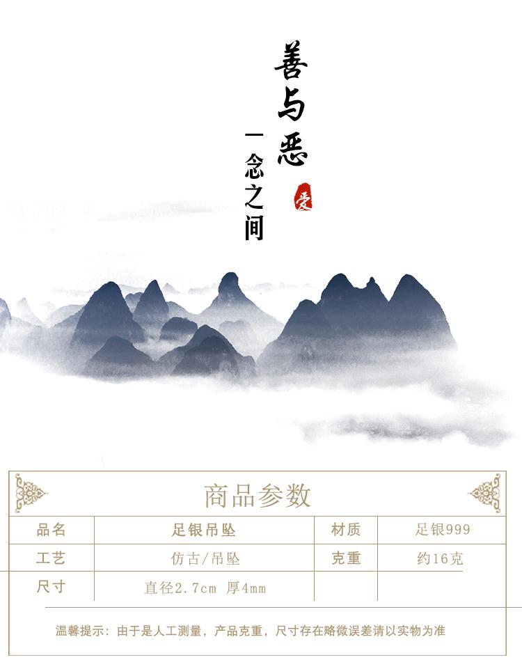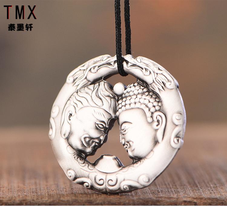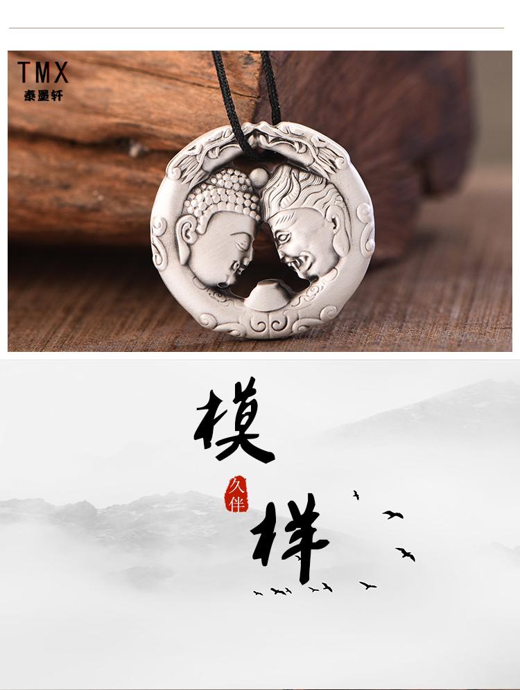 Colgante de plata de ley 999 para hombre y mujer, colgante entre el bien y el mal, cadena de suéter, joyería de plata antigua, cadena de suéter