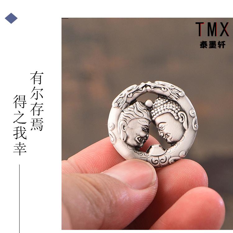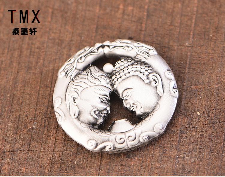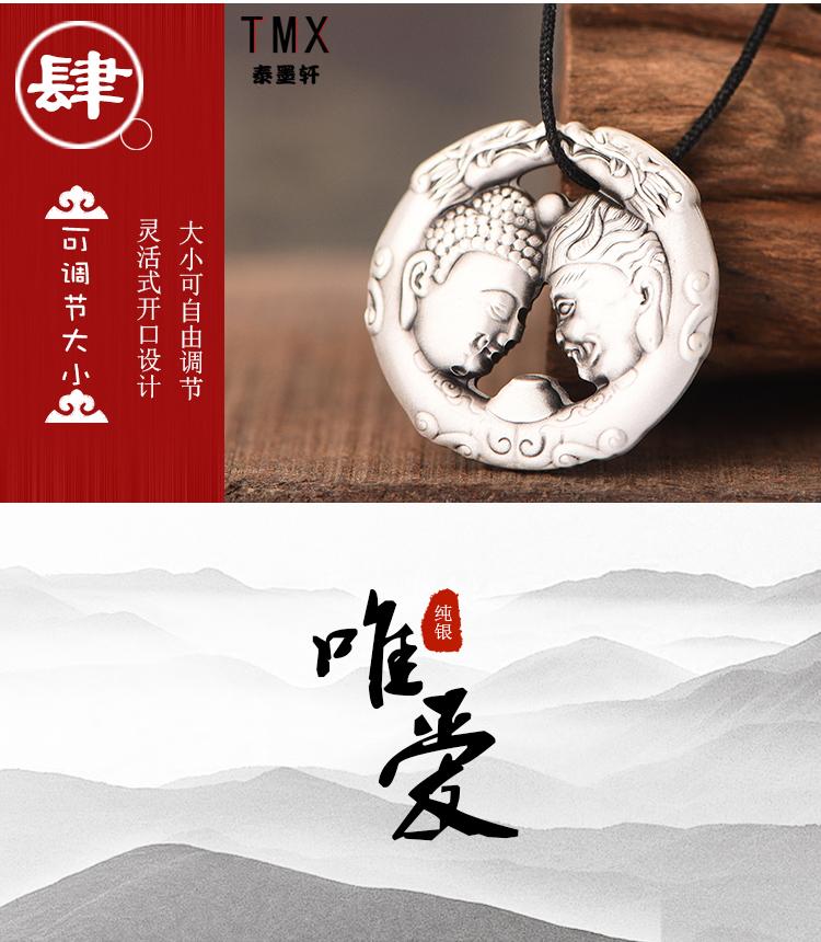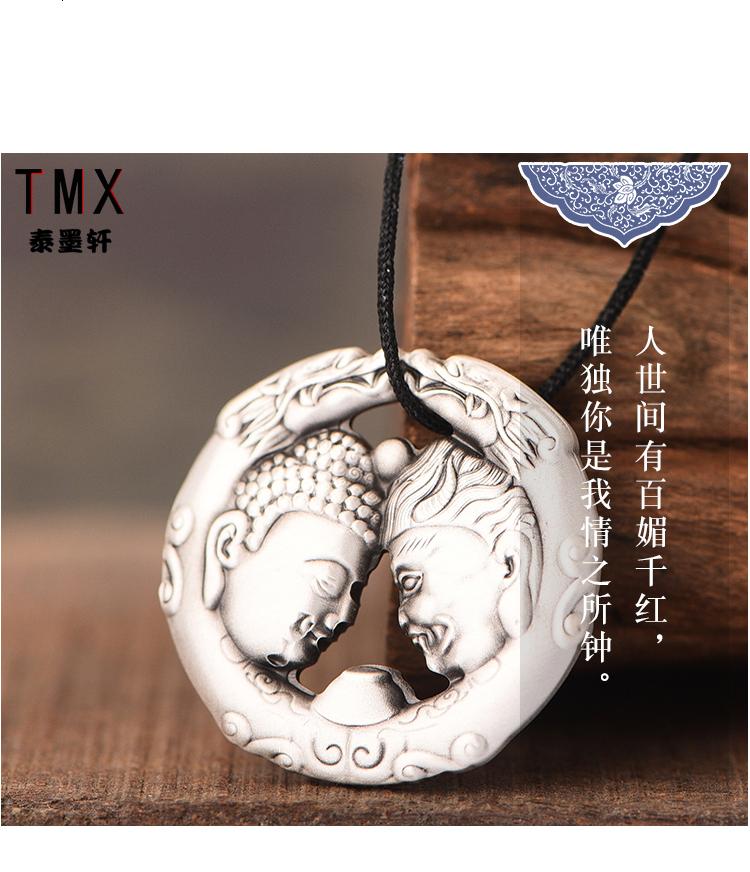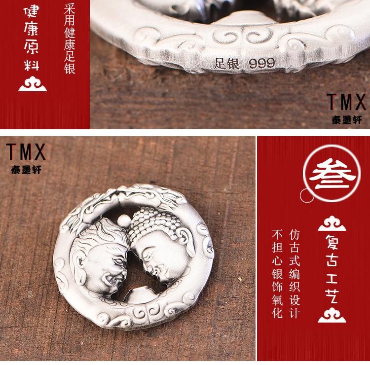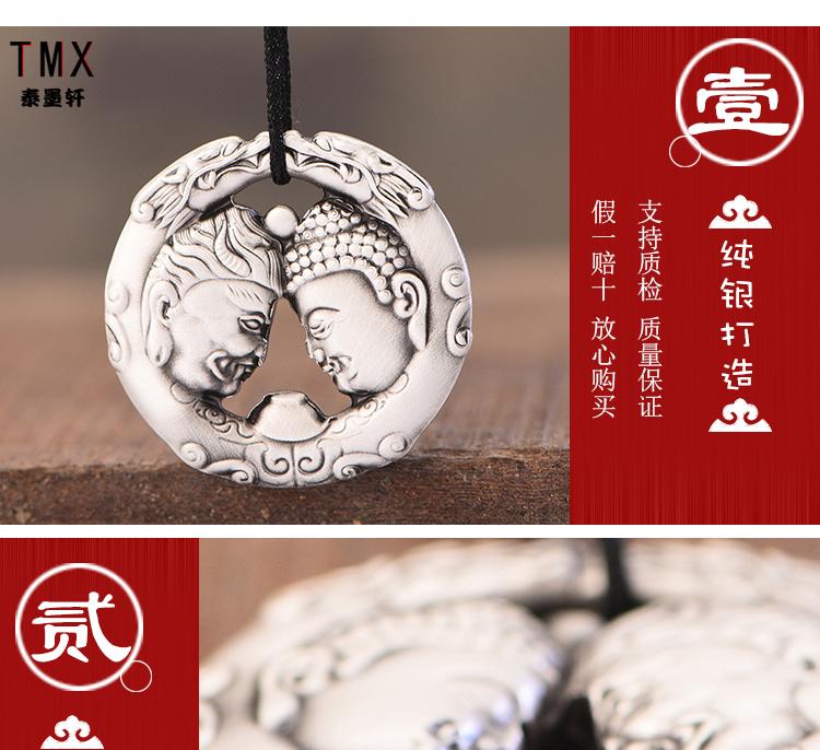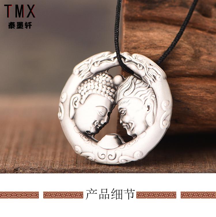 Colgante de plata de ley 999 para hombre y mujer, colgante entre el bien y el mal, cadena de suéter, joyería de plata antigua, cadena de suéter