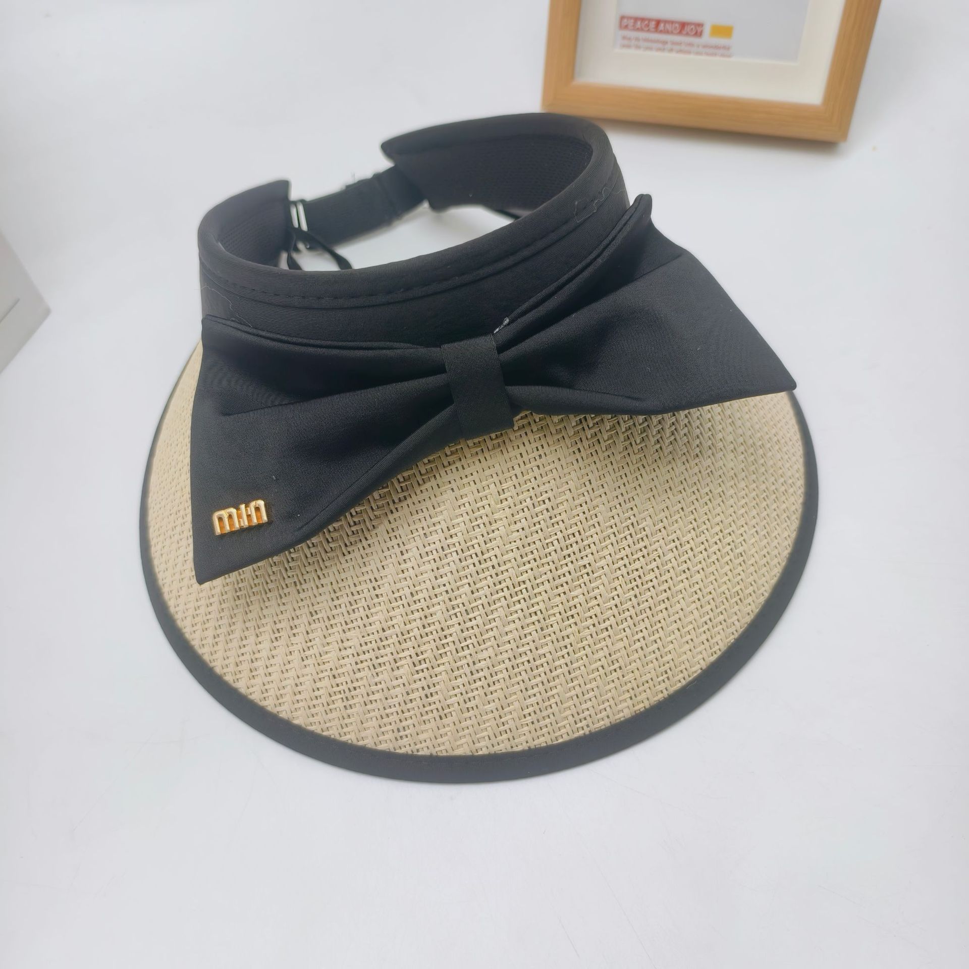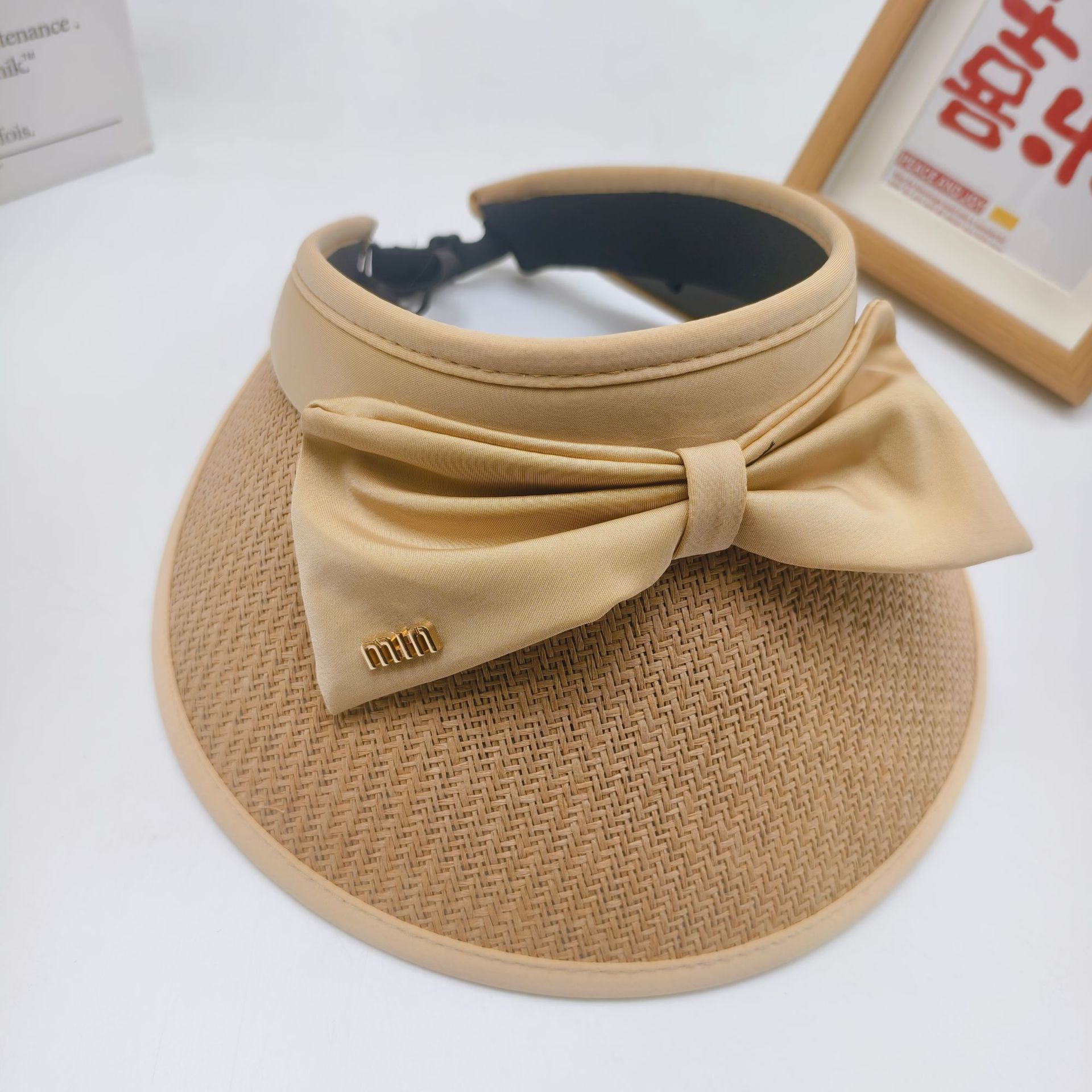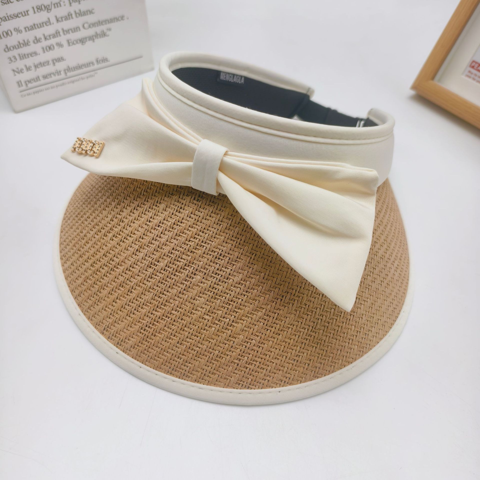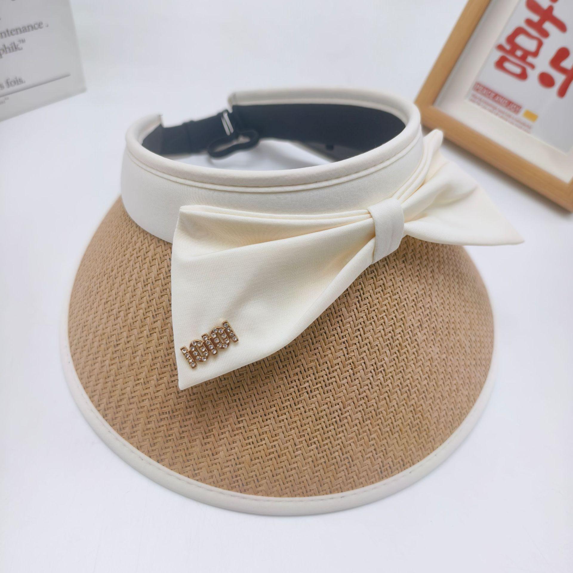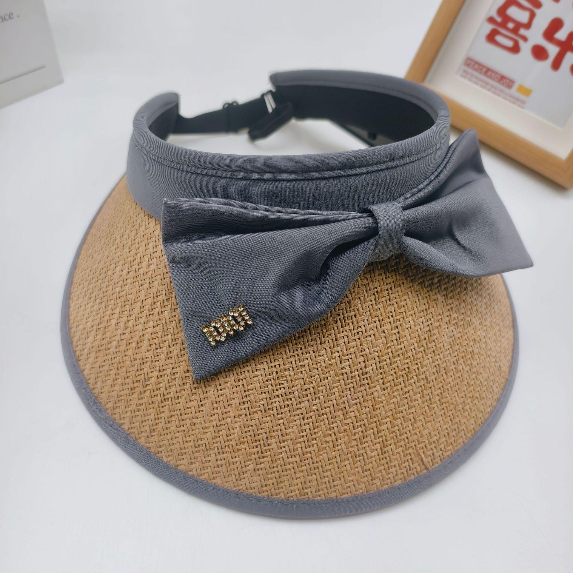 Sombrero de copa vacío de verano para mujer, nuevo sombrero de paja con lazo estilo coreano, sombrero para el sol para exteriores, protección solar que combina con todo.