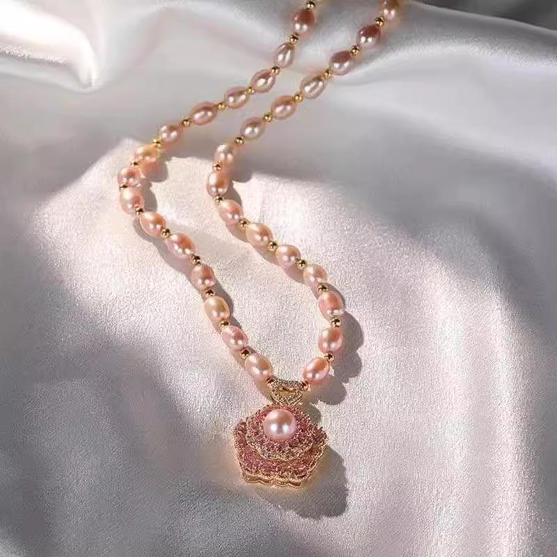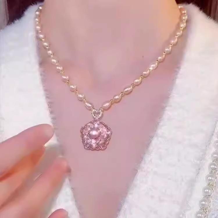 Collar de perlas con diseño de nicho y colgante giratorio de sentido avanzado, cadena para el cuello 2025, nueva cadena de clavícula de moda para mujer.