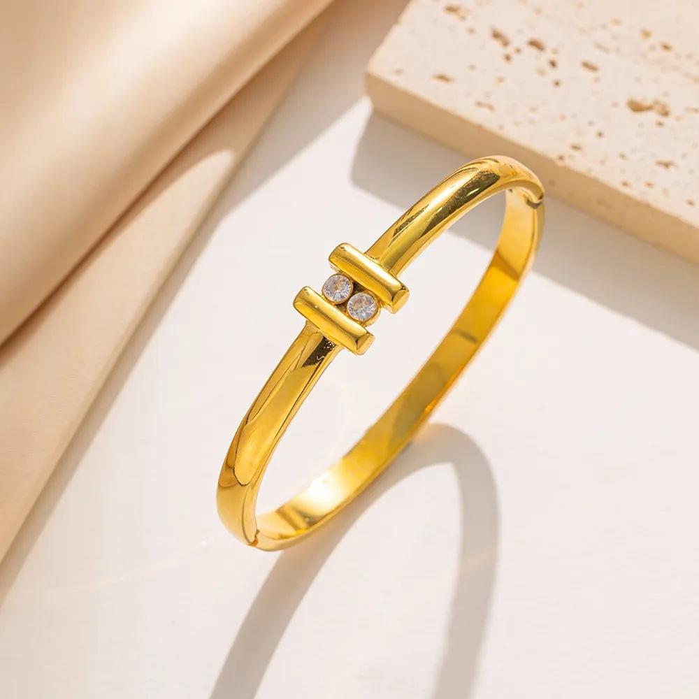 Pulsera de Titanio Lujo Ligero Incrustada con Diamantes Diseño Nicho de Alta Gama Joyería para Mujer Pulsera Exquisita de Acero Inoxidable sin Color