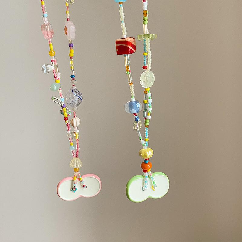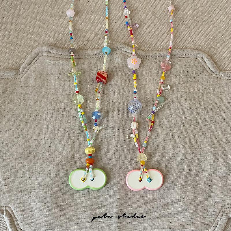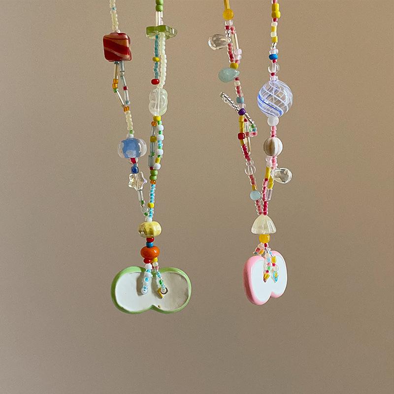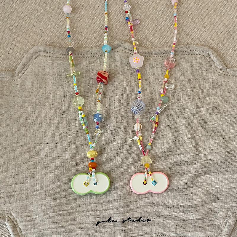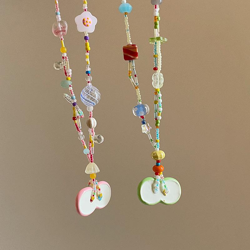 Colorido Collar de Manzana con Cuentas de Cristal con Esmalte de Dopamina para Mujer, Moda Fresca y Cool, Cadena de Collar Versátil, Cadena para Clavícula