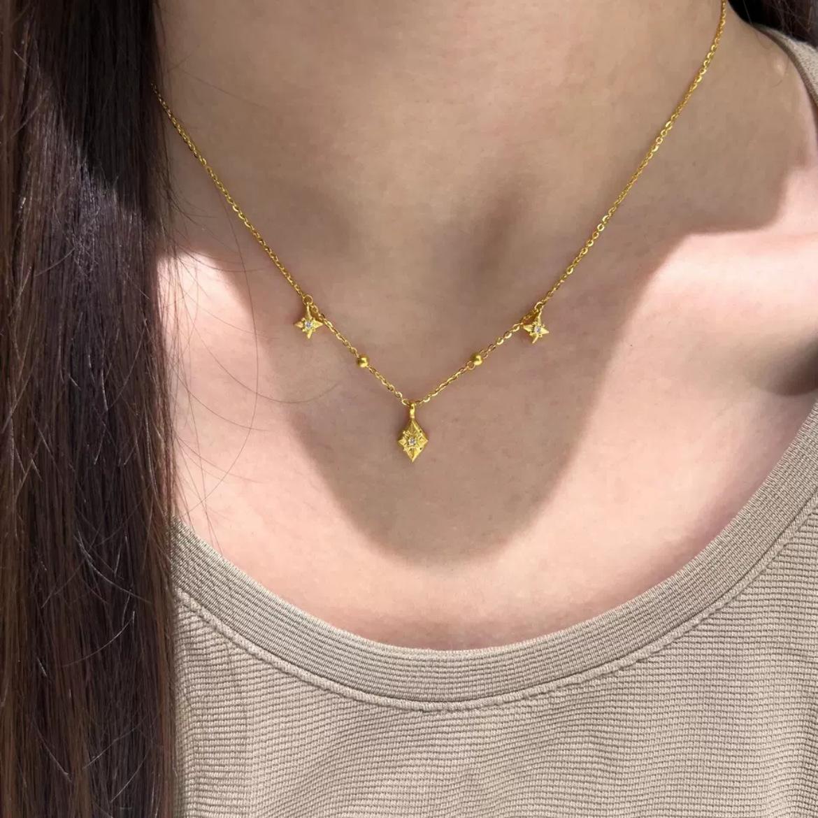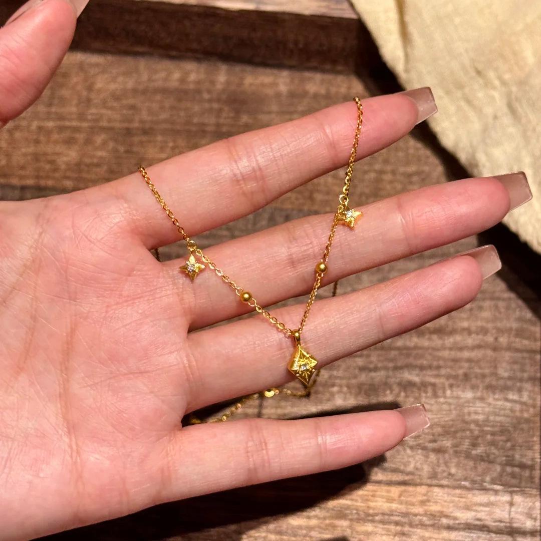 Collar Casual Romboidal Cuadrado Pequeño Estrella de Ocho Puntas para Mujer, Estilo Dulce, Moda de Alta Gama, Cadena Clavicular Estrella Intermitente Personalizada