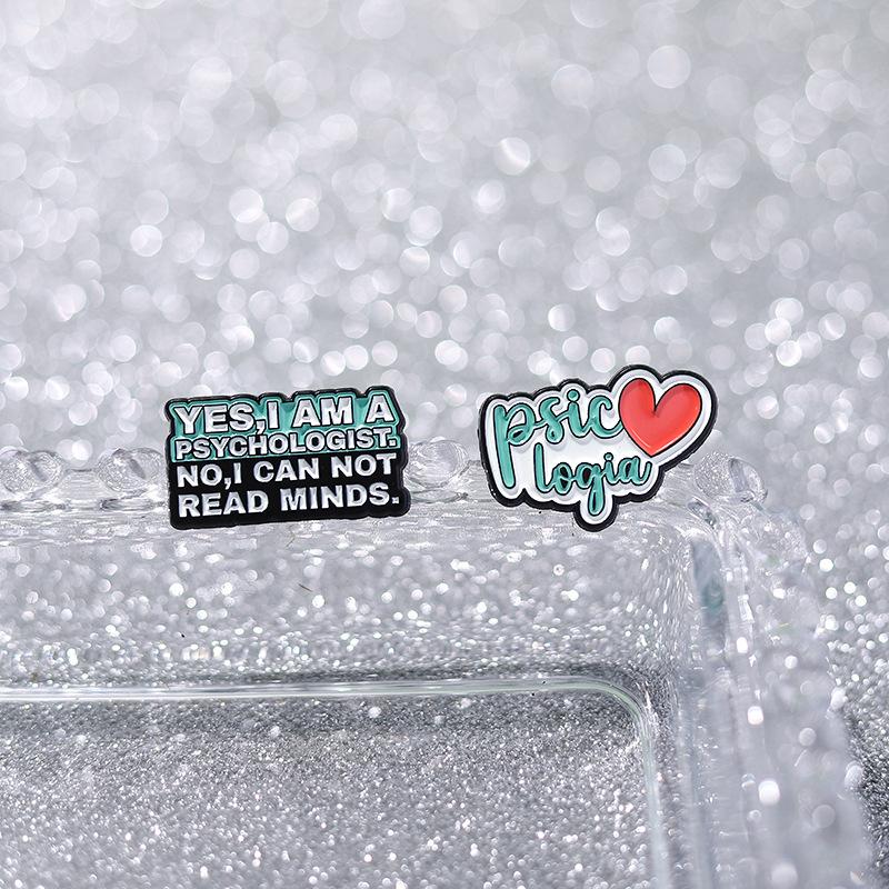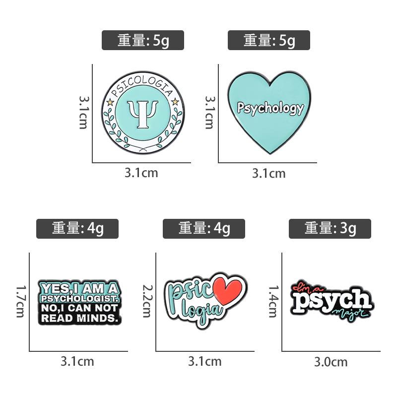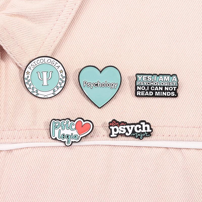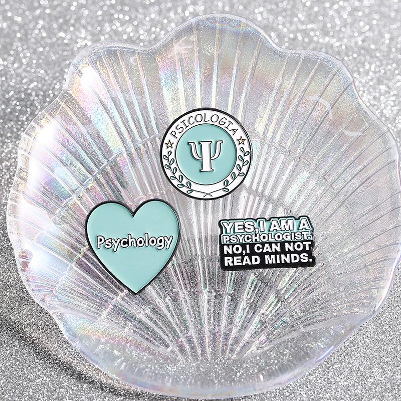Broche con letras periféricas y símbolo del nuevo departamento de psicología transfronterizo, insignia de metal creativa del departamento de curación azul, accesorios