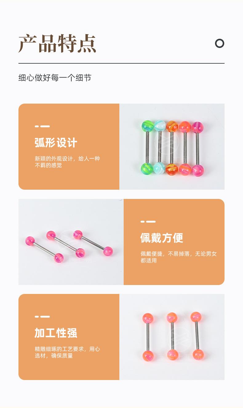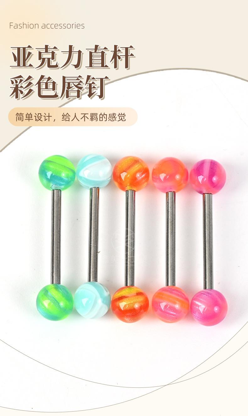 Nueva barra recta acrílica uña de lengua linda ins transfronteriza degradada colorida chica hot dulce joyería piercing