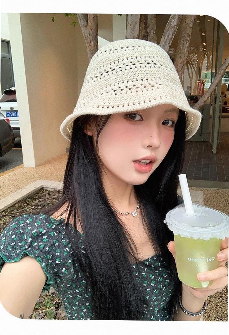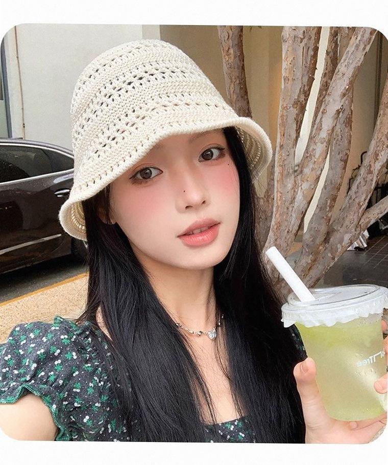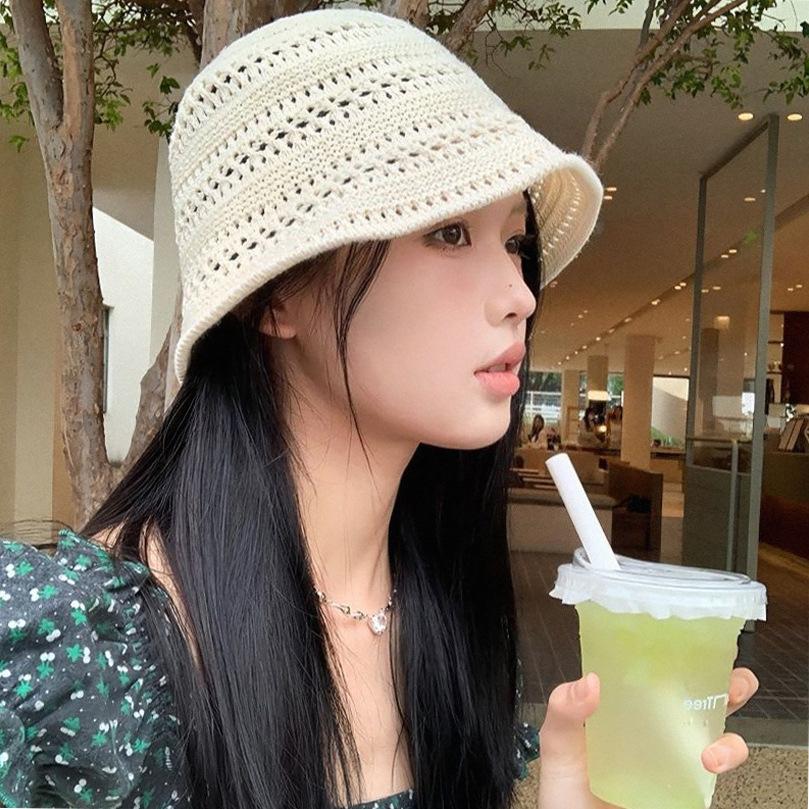 Sombrero de Pescador Hueco de Verano para Mujer, Delgado, Transpirable, Moda, Sombrero Parasol, Viaje, Vacaciones, Protección Solar, Sombrero de Cubeta, Sombrero de Sol