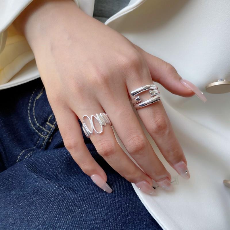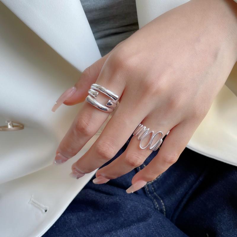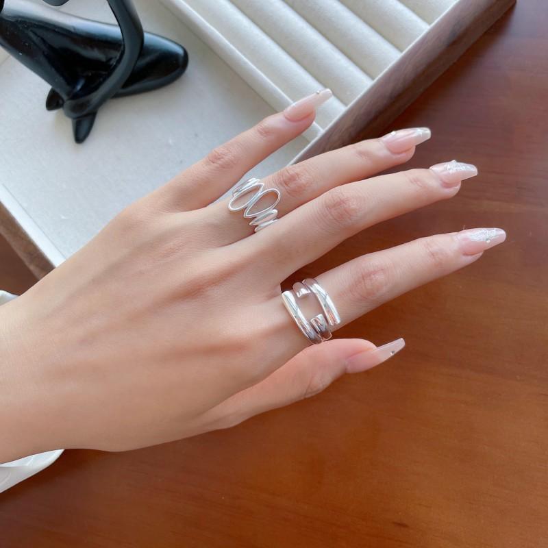 Anillo Irregular de Gota de Agua para Mujer Estilo Xiaohongshu Ins Moda Mesa Auxiliar Escalonada He Plata S925 Chapado Anillo de Dedo Índice Abierto Tendencia