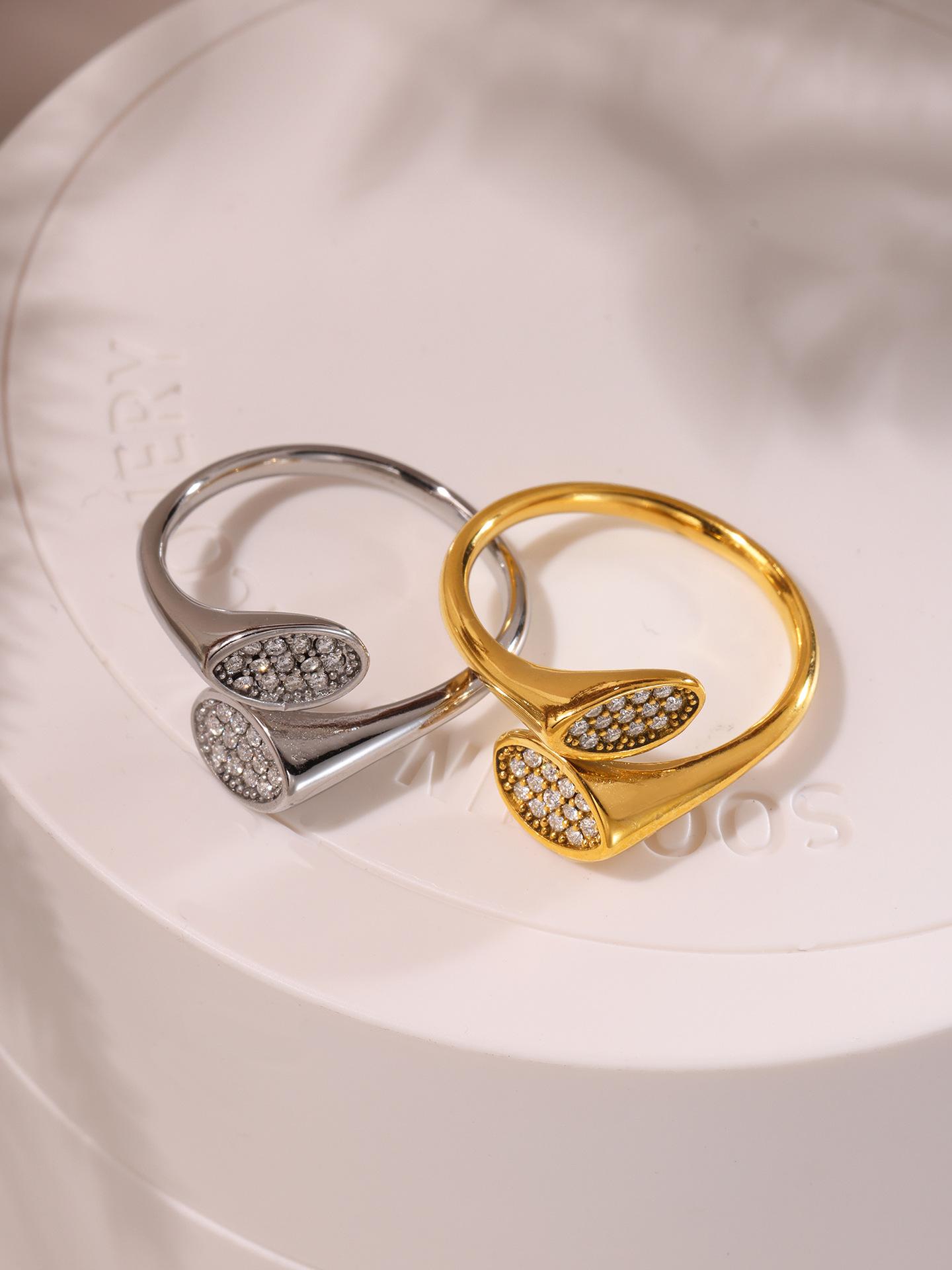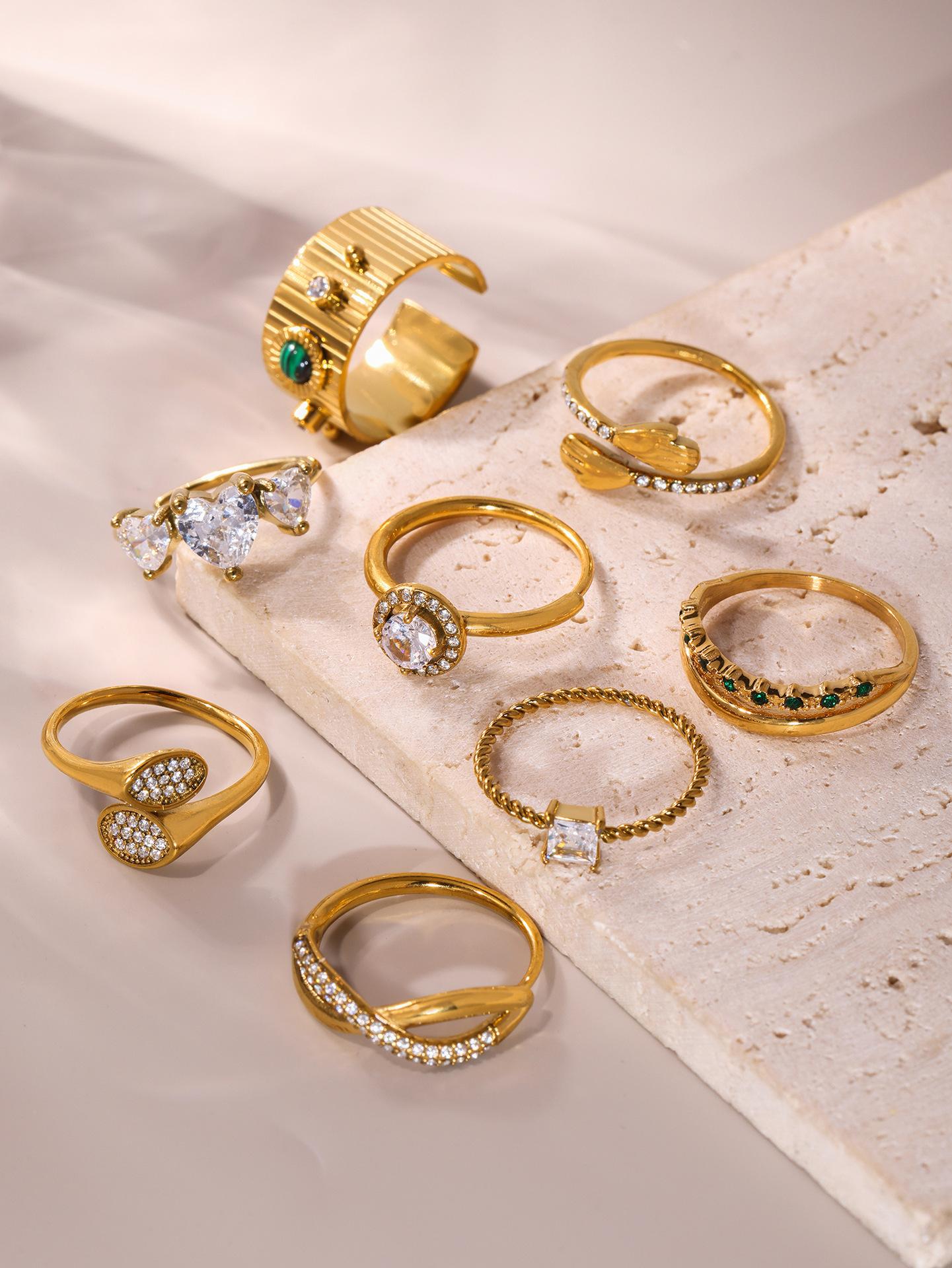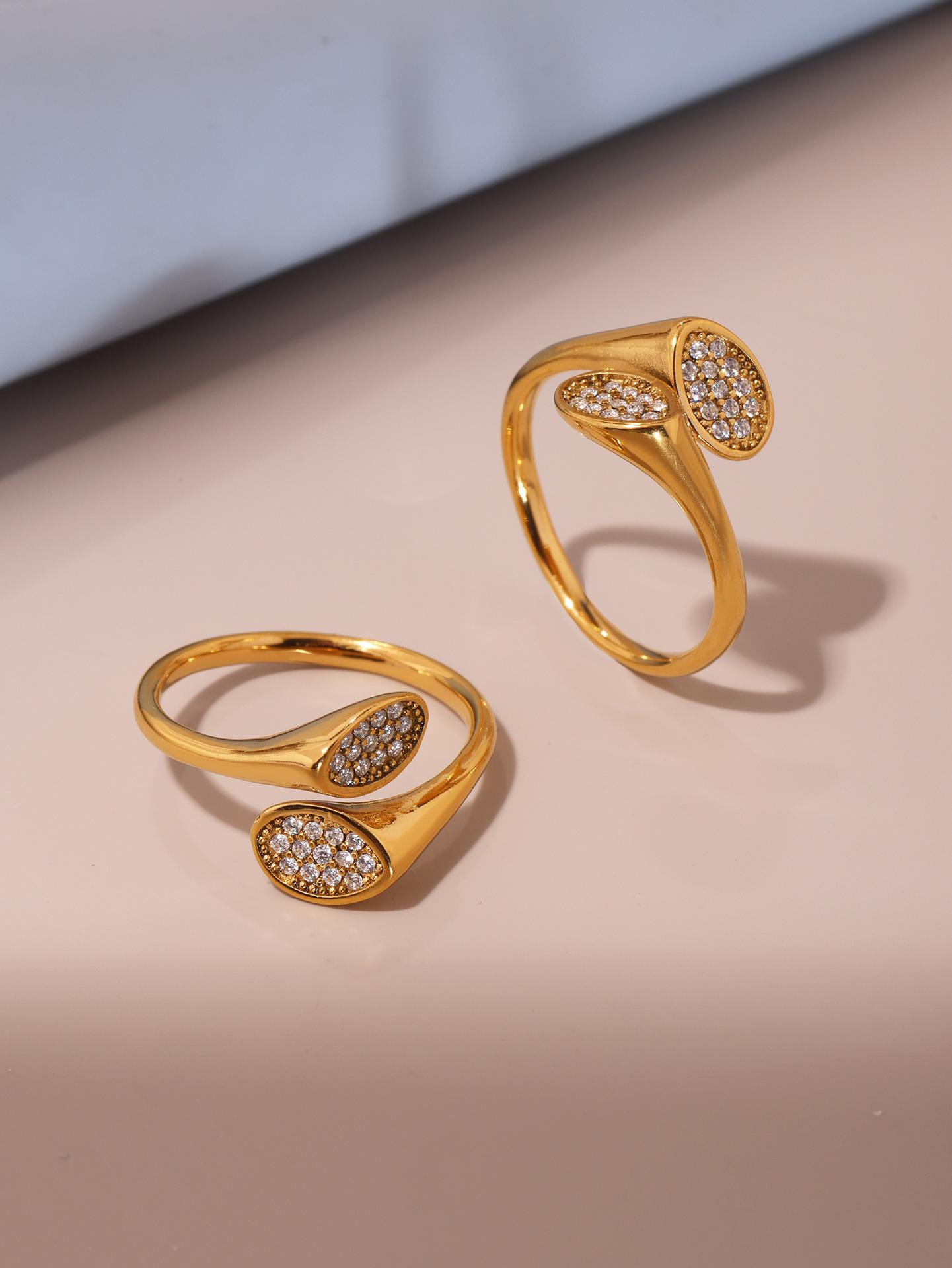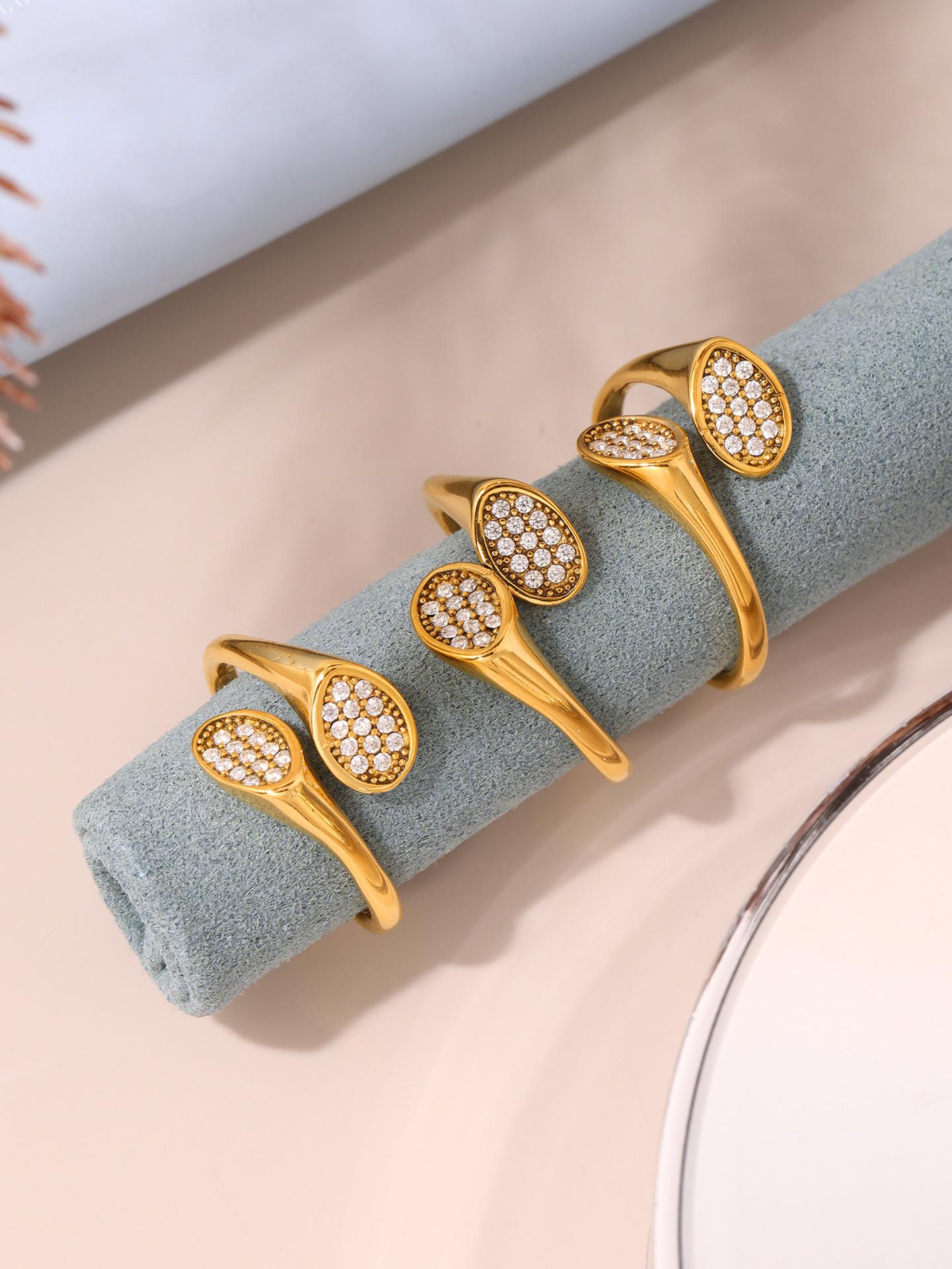 Joyería Europea y Americana Xinyixin Anillo Abierto con Diseño Irregular de Zircón de Alta Textura Anillo de Dedo de Acero Inoxidable Chapado en Oro