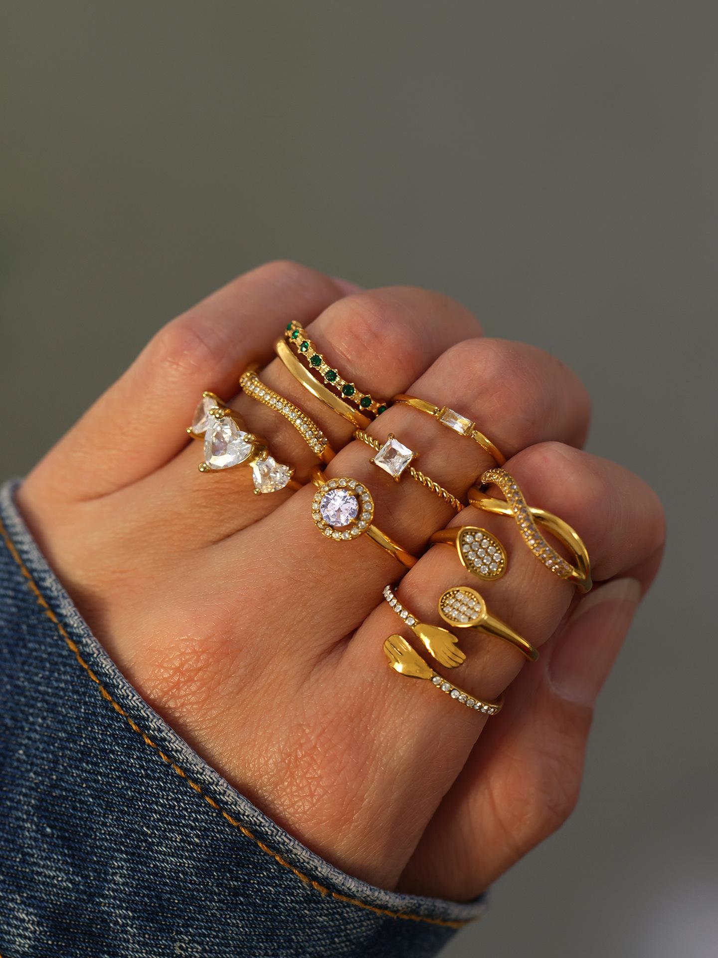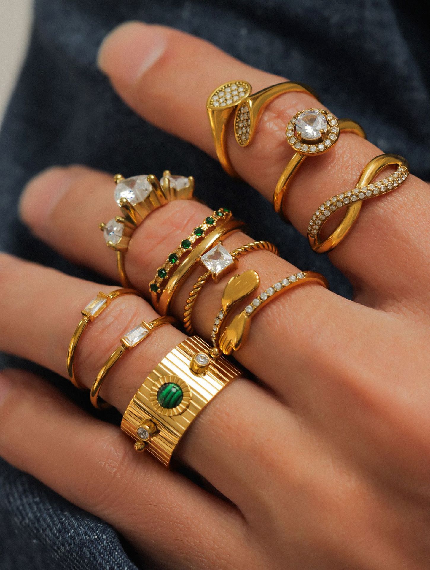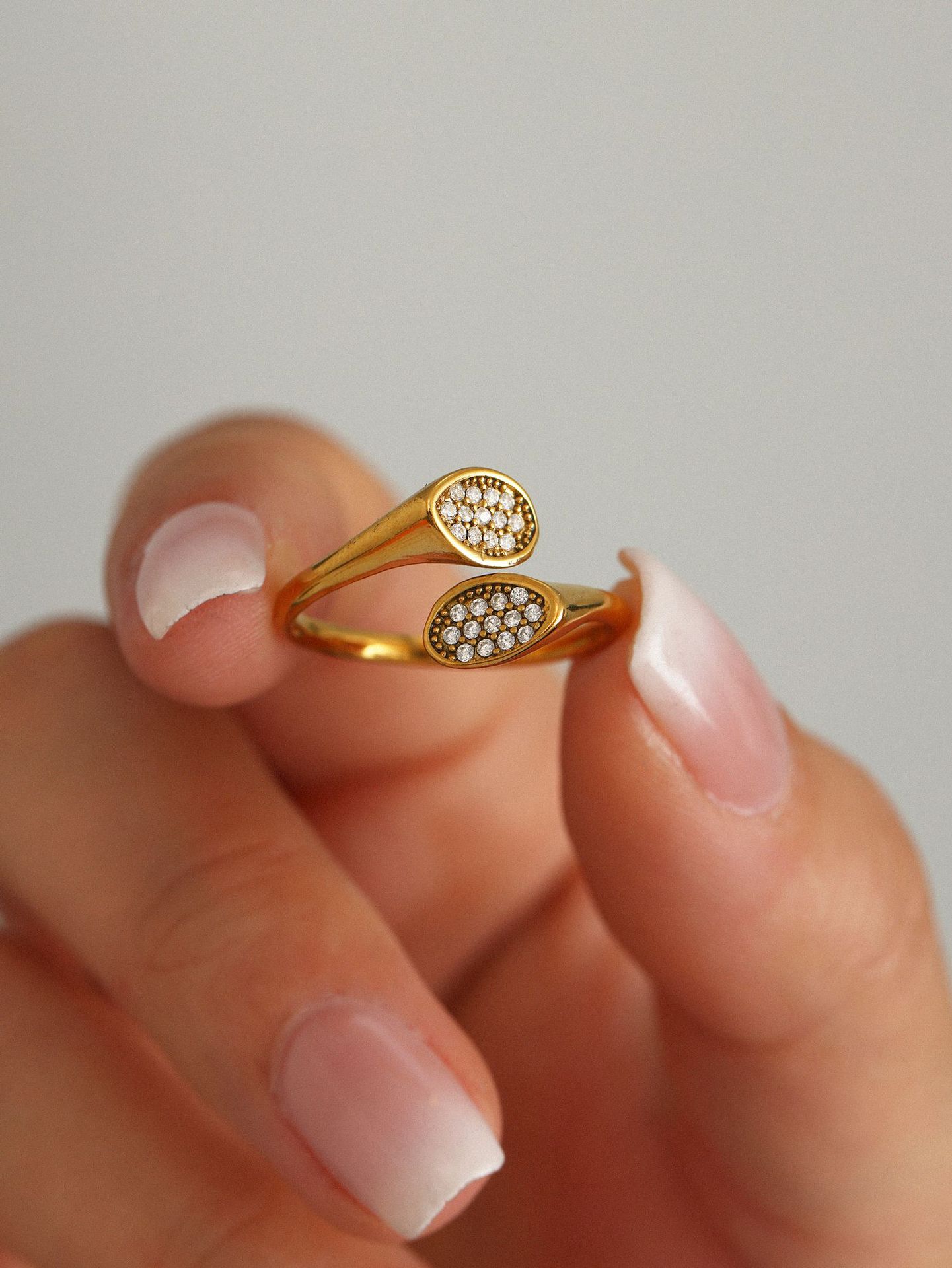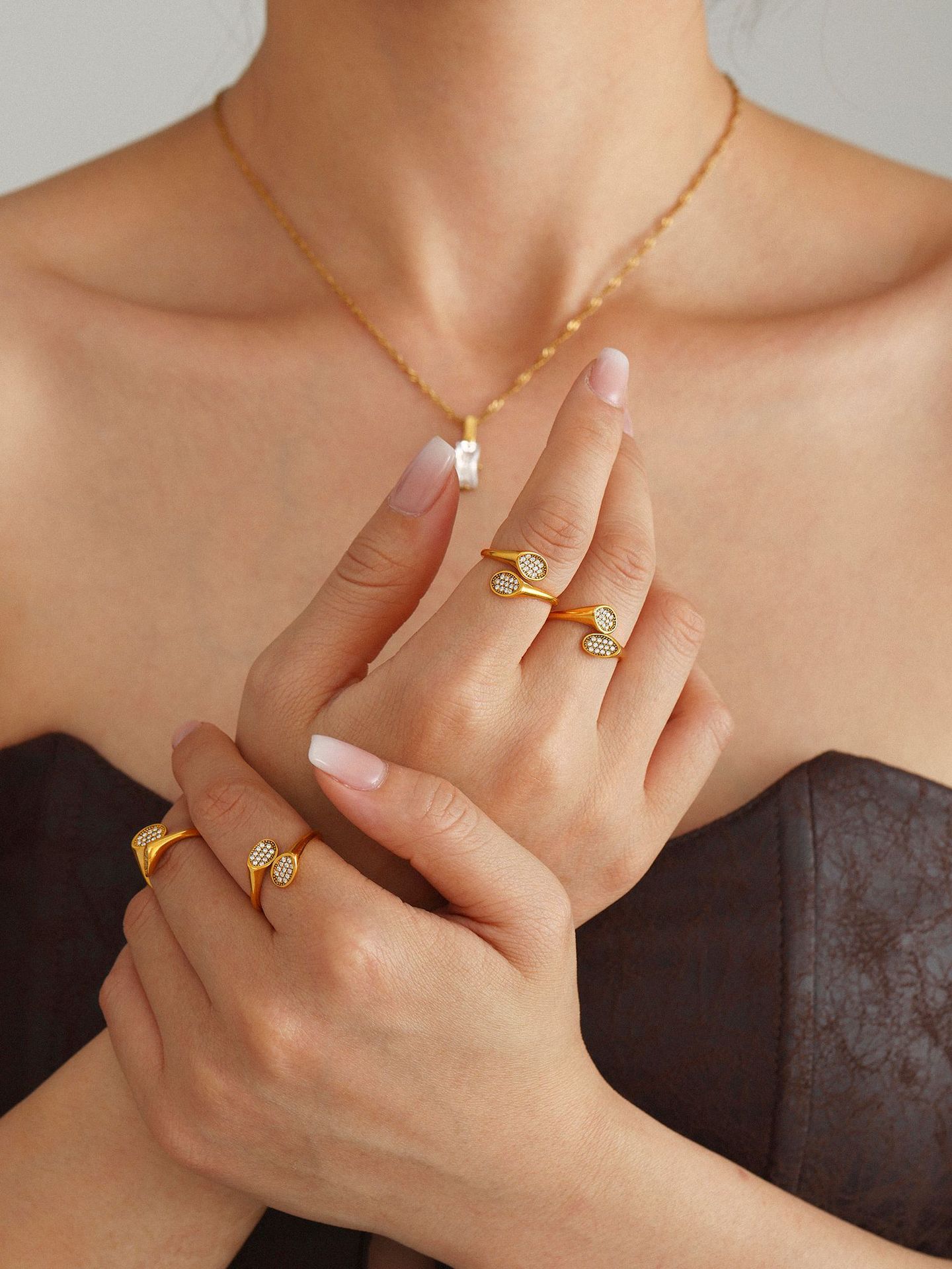 Joyería Europea y Americana Xinyixin Anillo Abierto con Diseño Irregular de Zircón de Alta Textura Anillo de Dedo de Acero Inoxidable Chapado en Oro