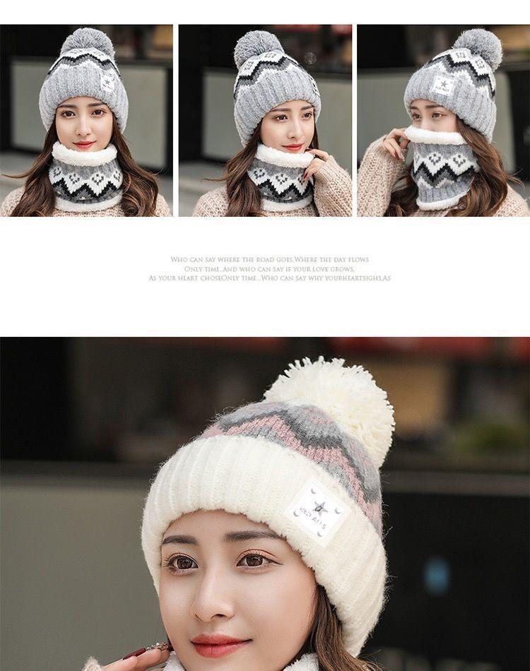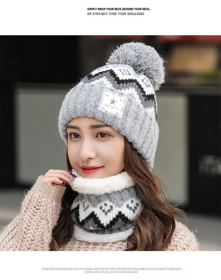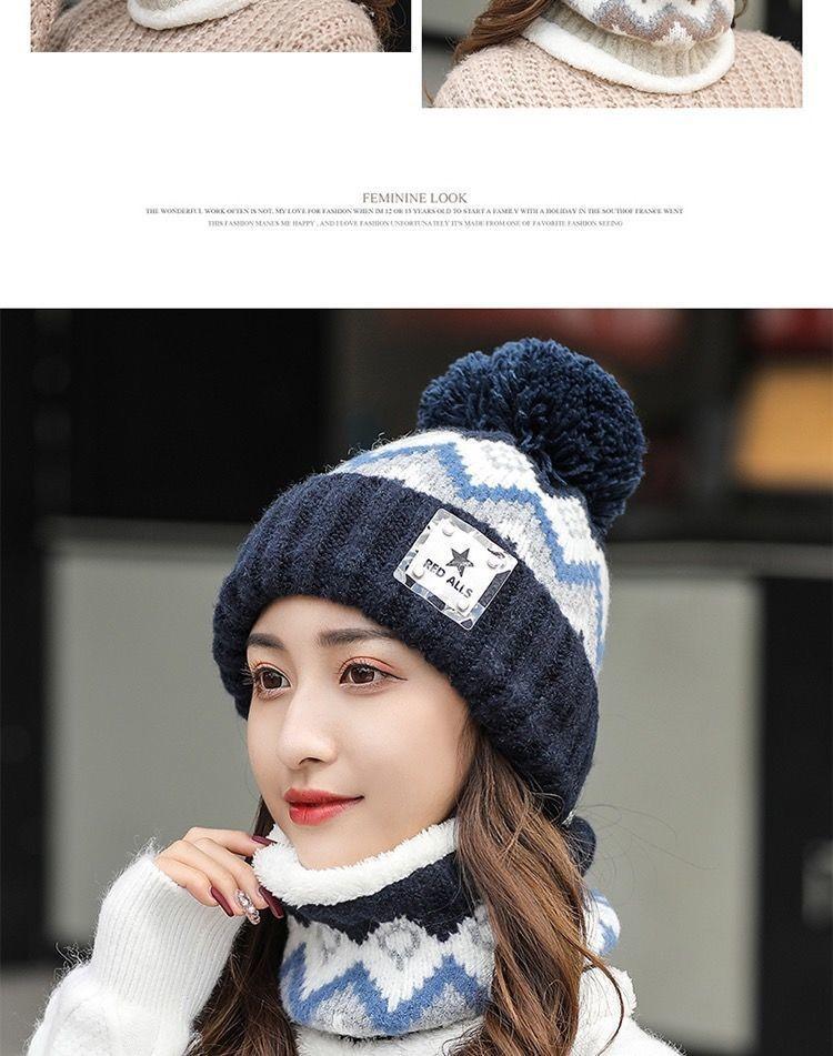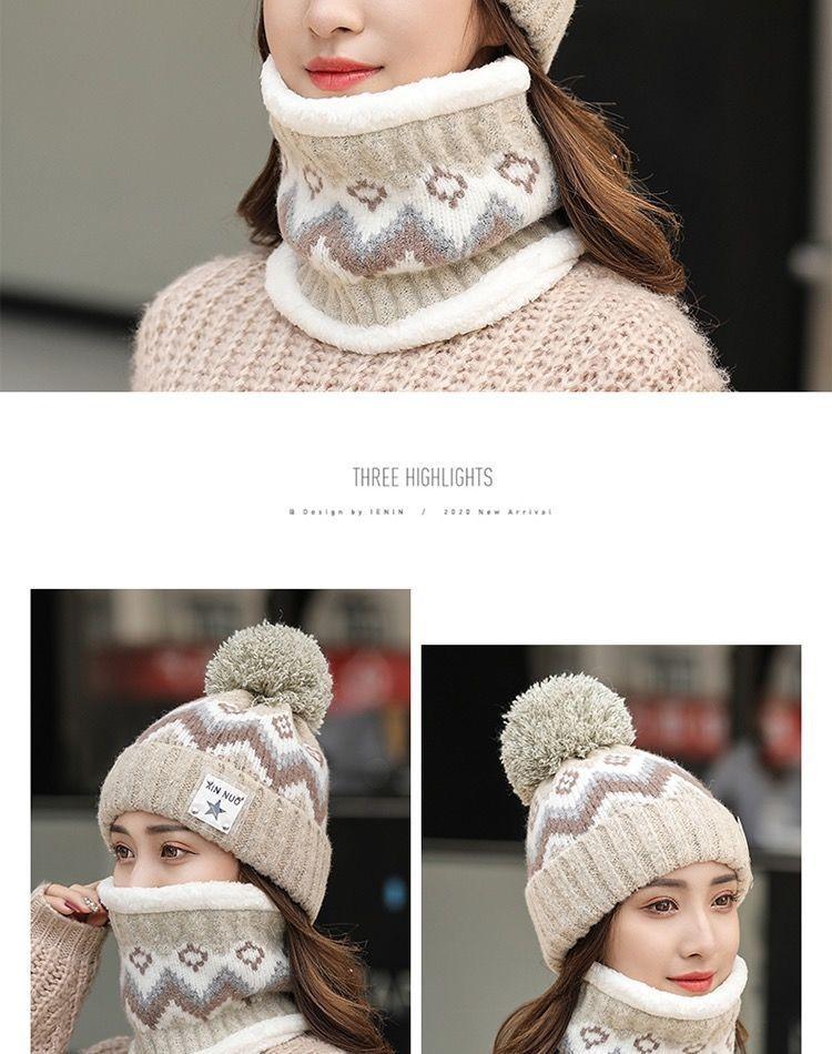 Gorro de punto con protección auditiva de estilo coreano para mujer, conjunto de dos piezas, gorro de lana con forro polar grueso, gorro cálido resistente al frío para exteriores
