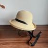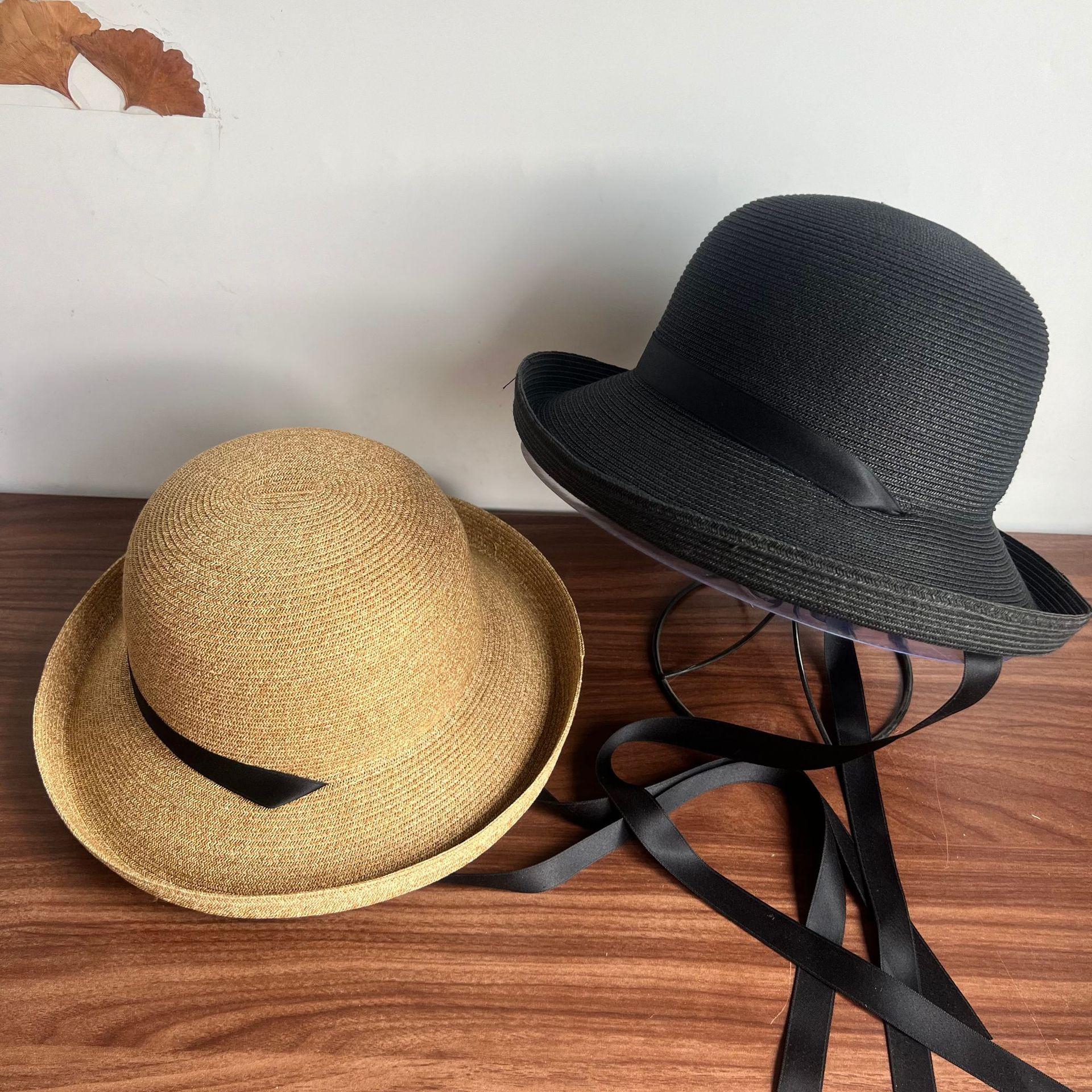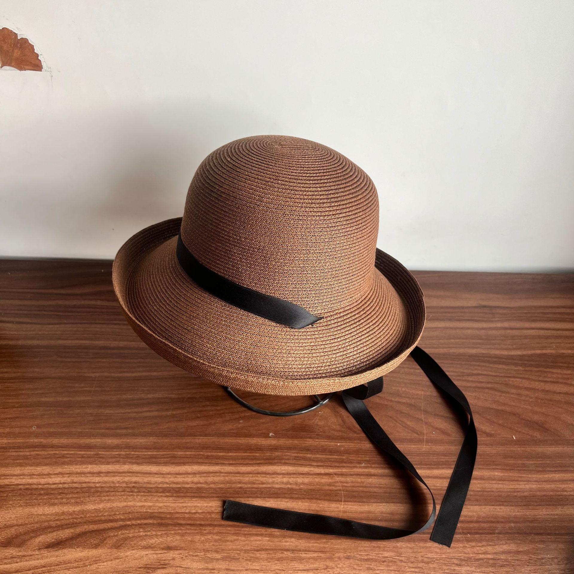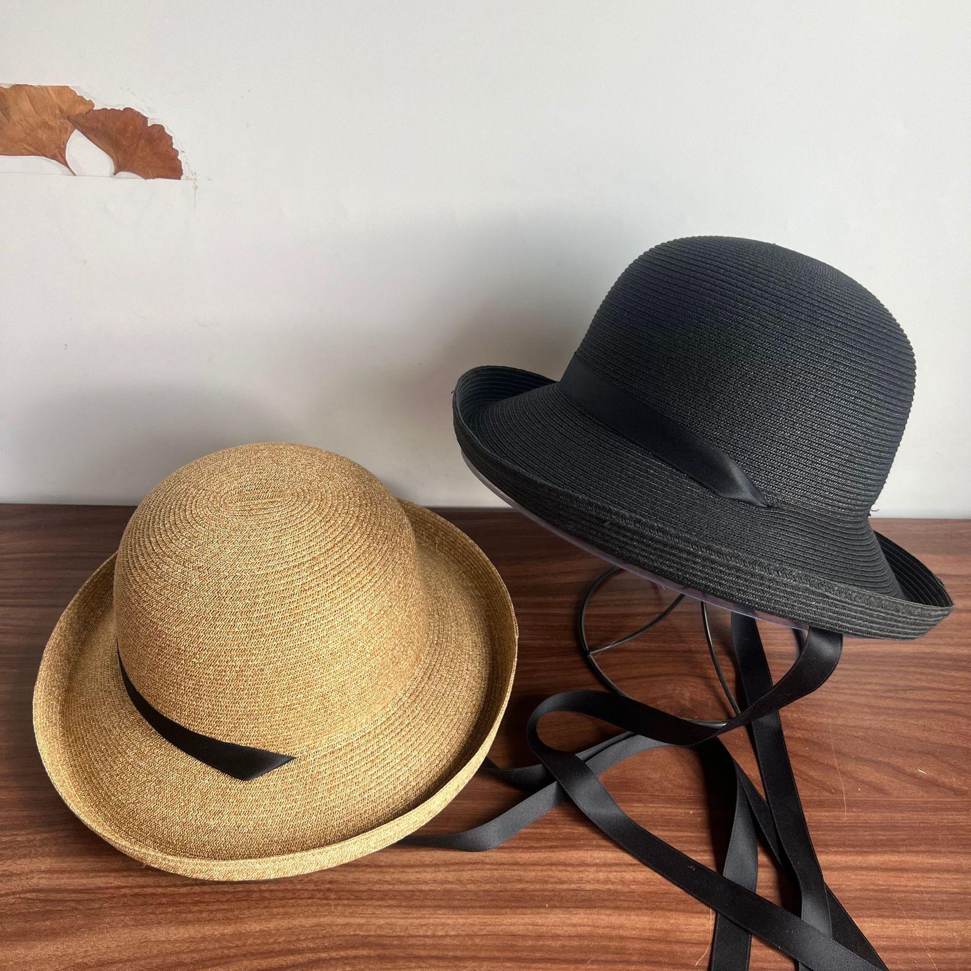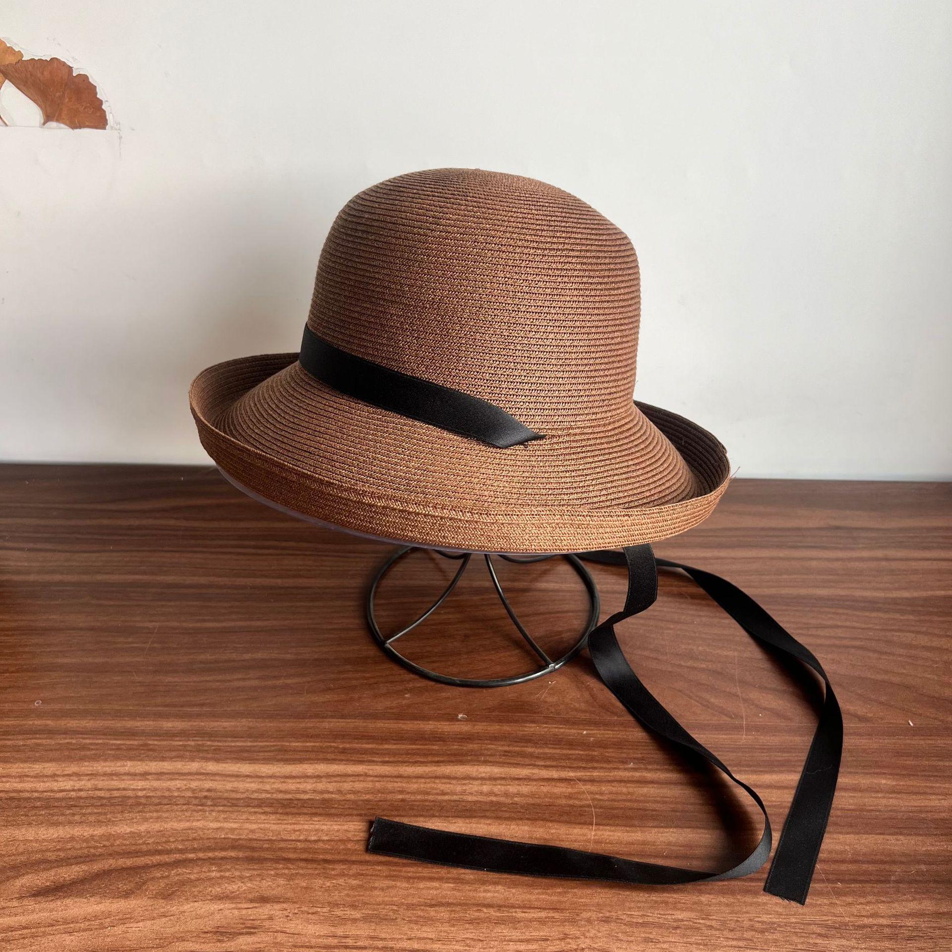 Sombrero Vintage Estilo Hepburn Francés Sombrero de Paja de Ala Ancha Sombrero de Verano de Playa para Mujer Sombrero Parasol Sombrero Protector Solar con Sombrero a Prueba de Viento