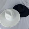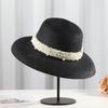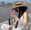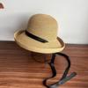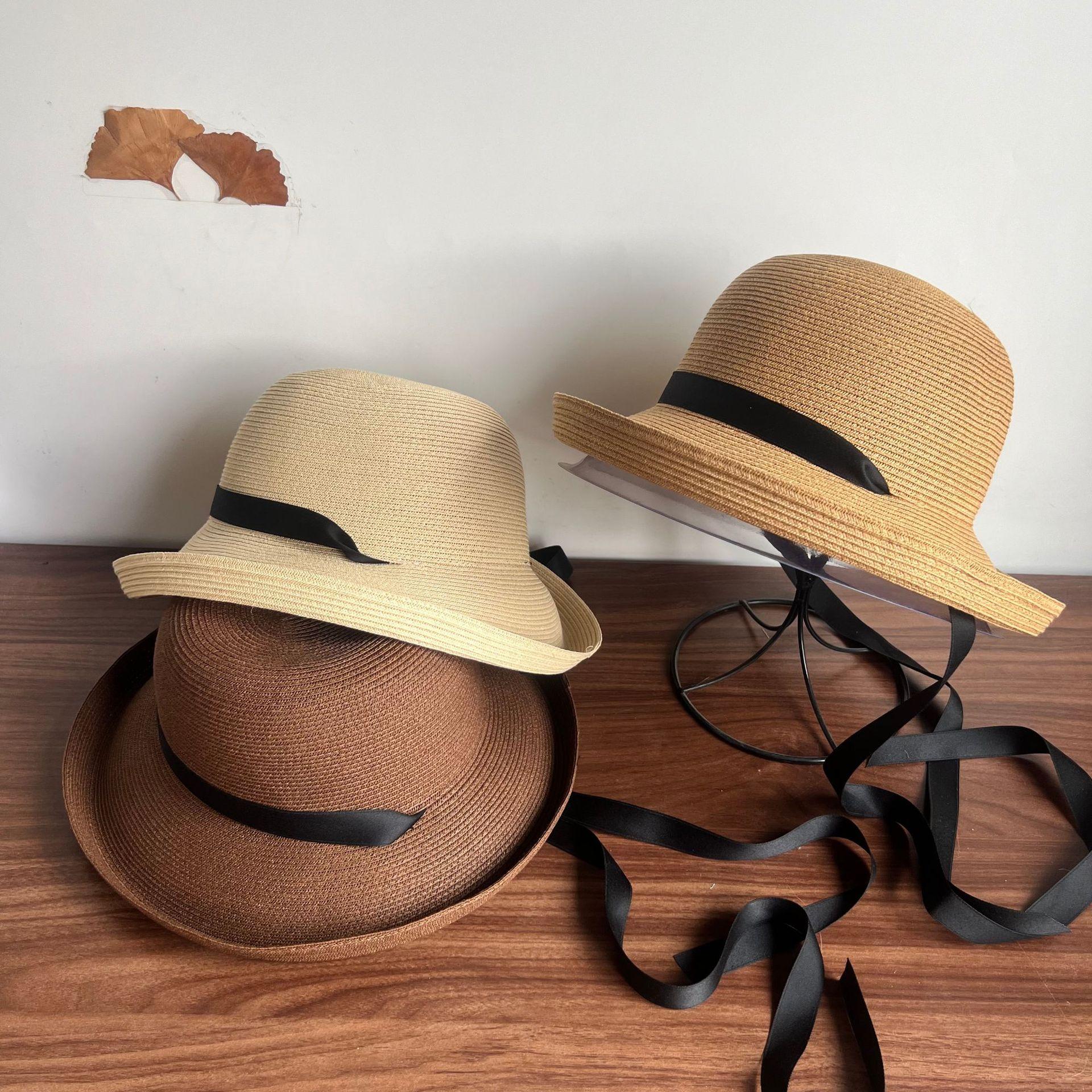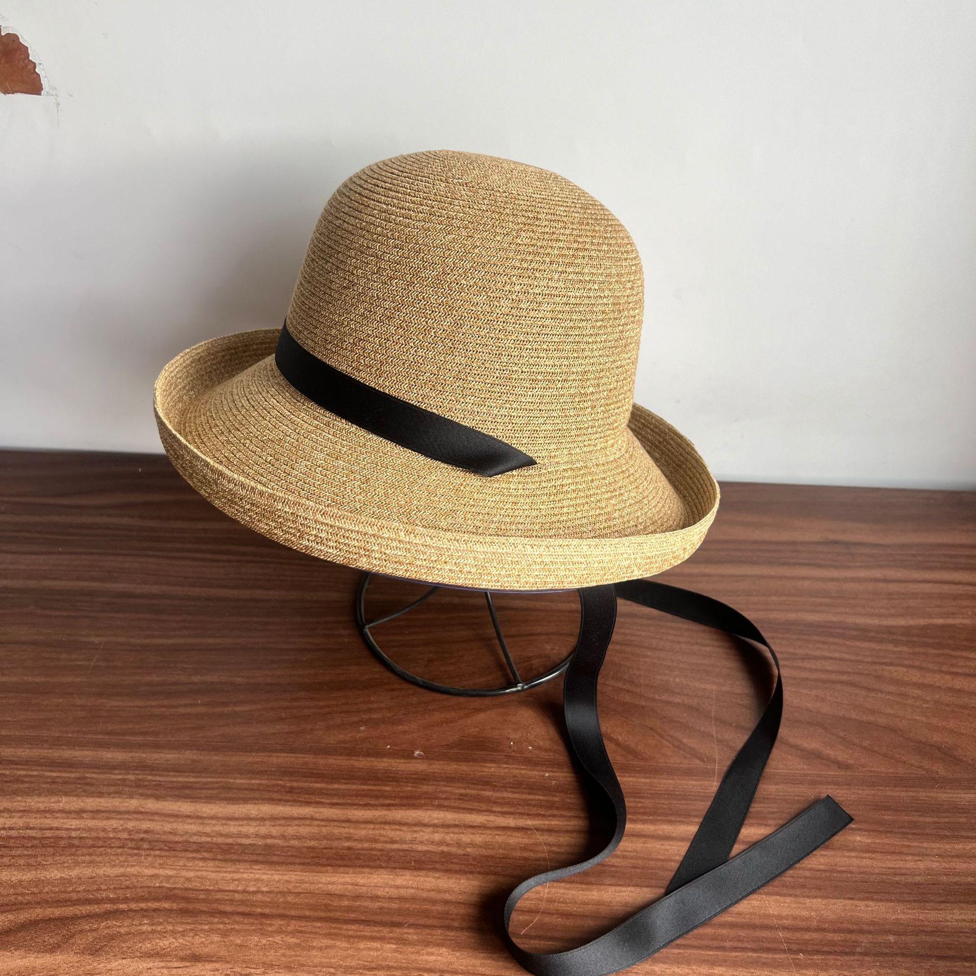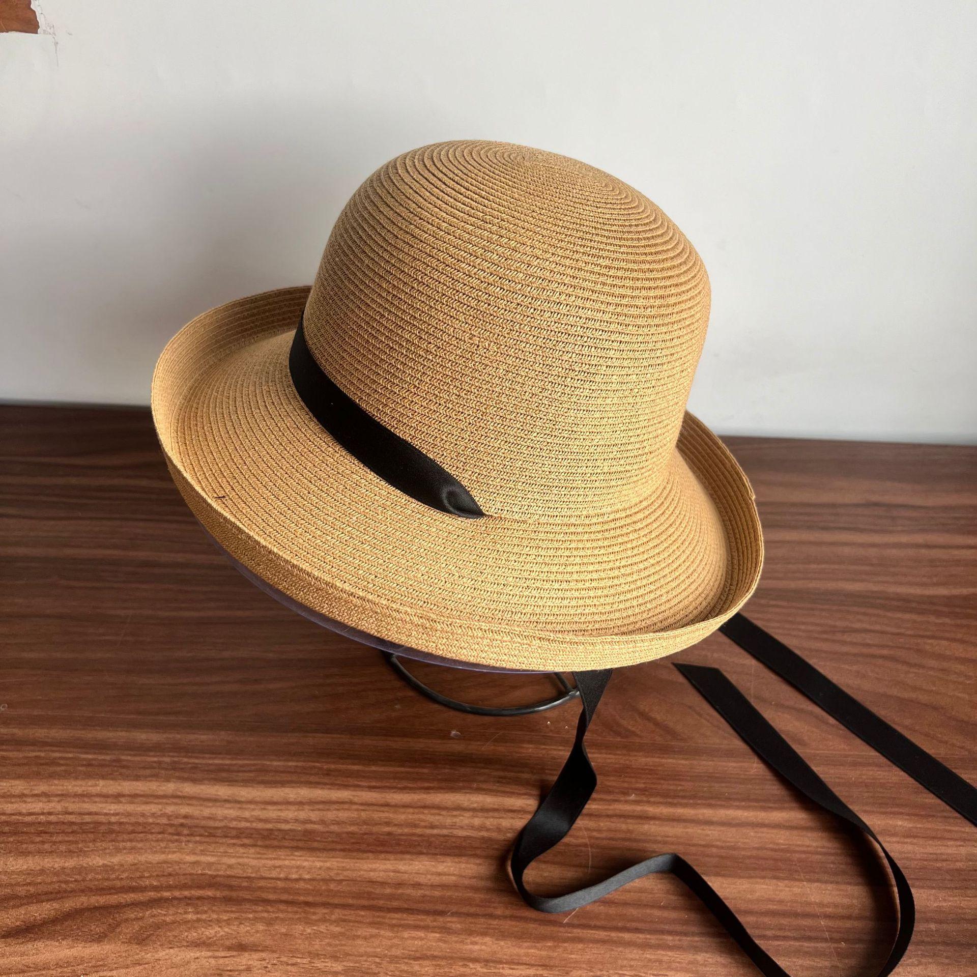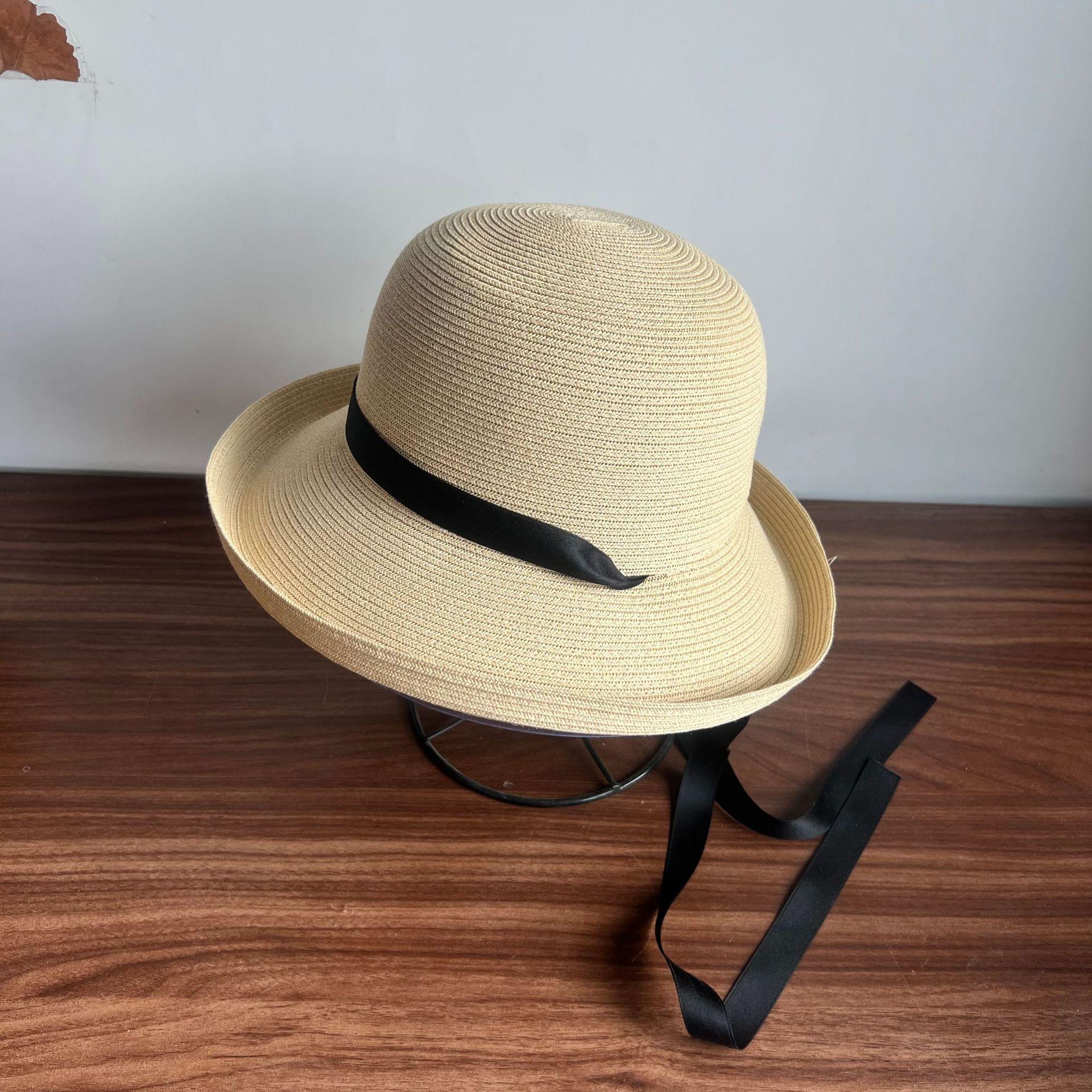 Sombrero Vintage Estilo Hepburn Francés Sombrero de Paja de Ala Ancha Sombrero de Verano de Playa para Mujer Sombrero Parasol Sombrero Protector Solar con Sombrero a Prueba de Viento
