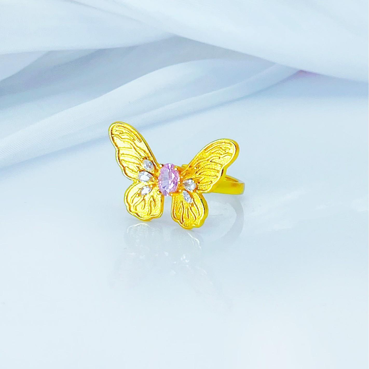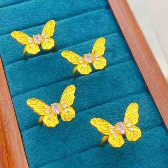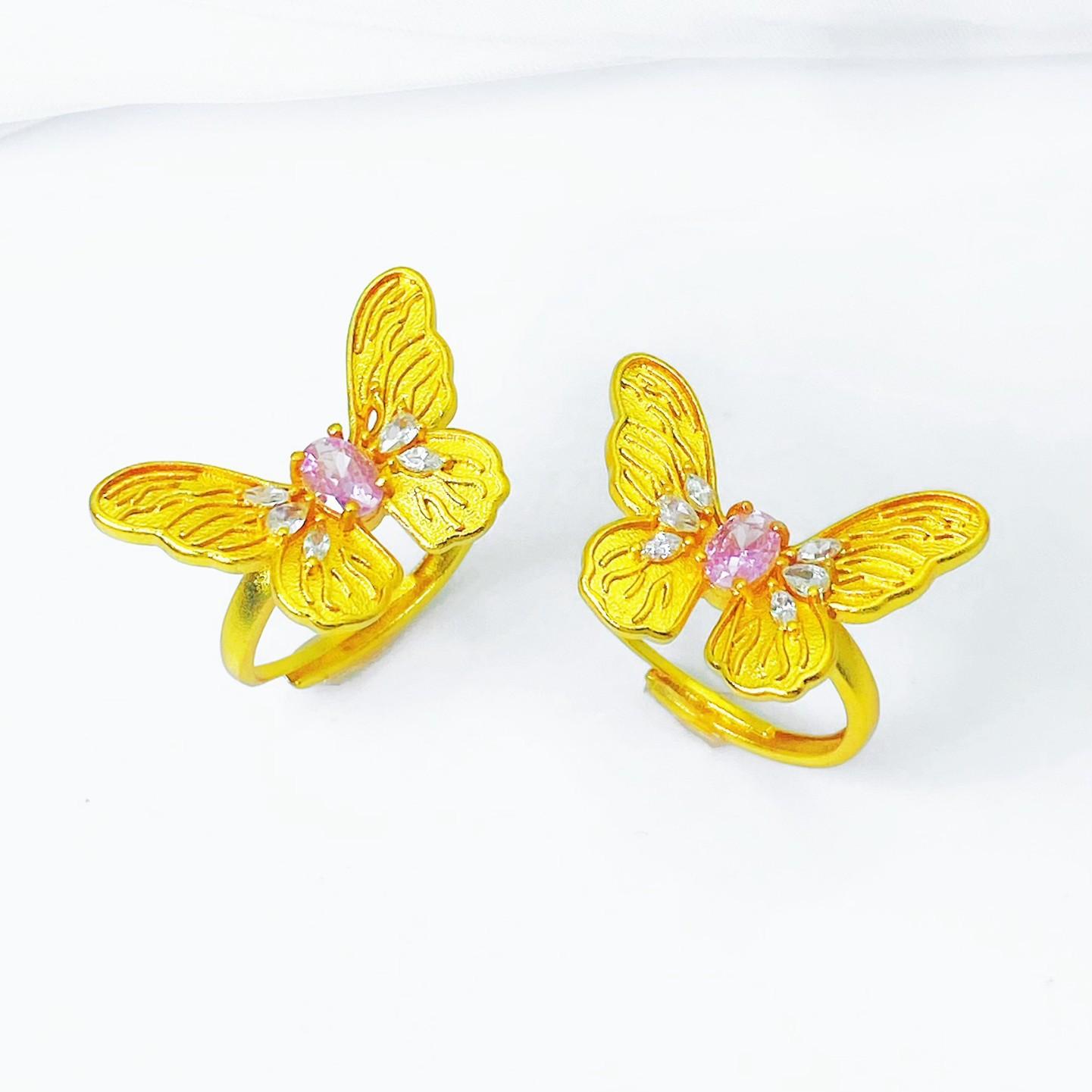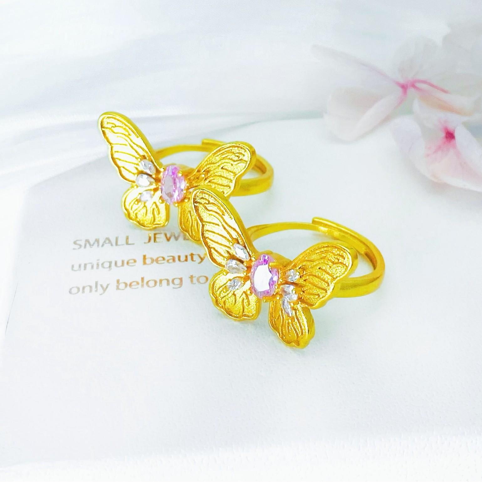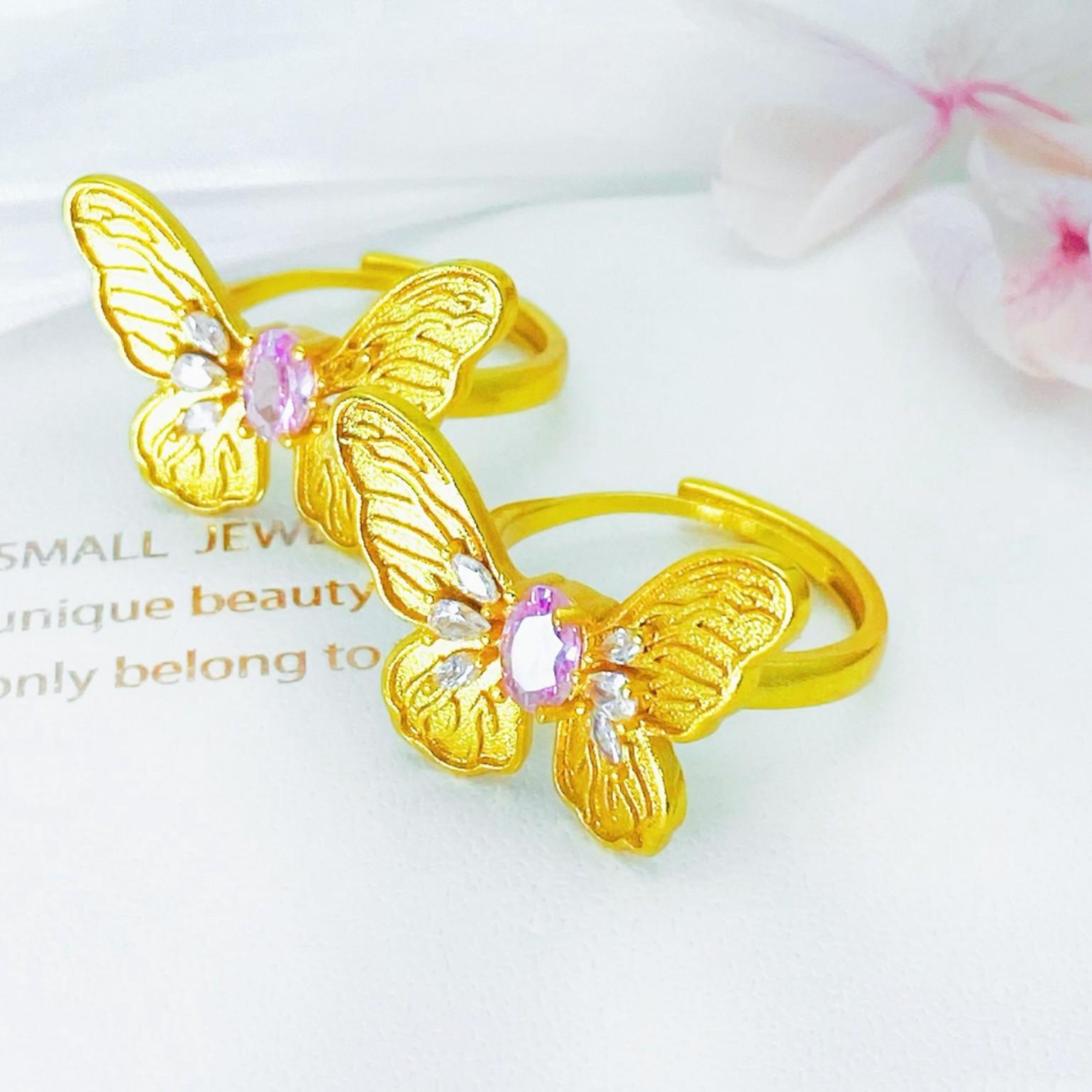 Anillo abierto de oro francés antiguo con punta de taladro, trefilado, sueño de mariposa, nicho para mujer, ajustable, lujo ligero, sentido de alta gama