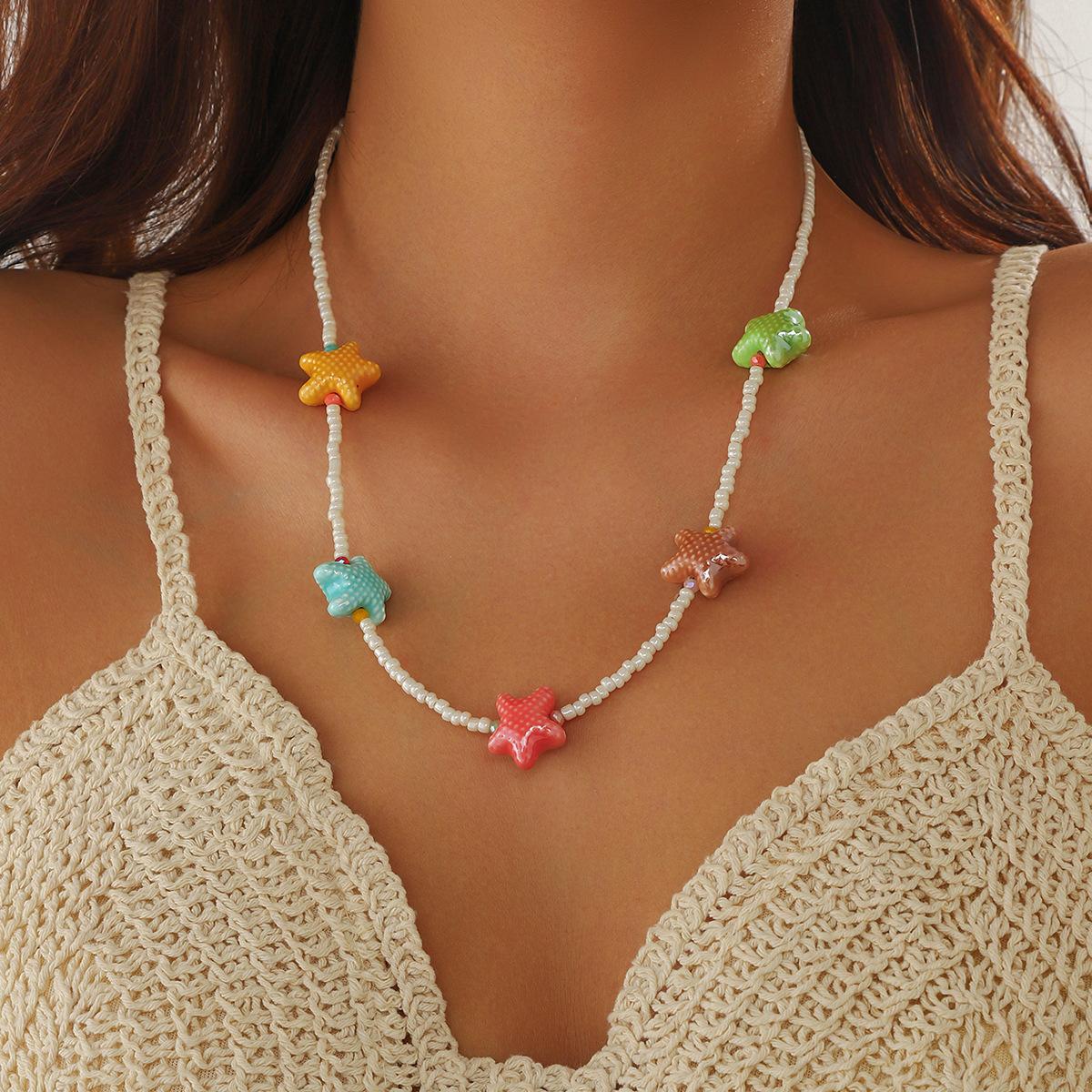 Collar de acero inoxidable con forma de estrella de mar transfronteriza, collar de clavícula de alto valor de color, nicho Joker, fabricantes de accesorios de collar para damas al por mayor