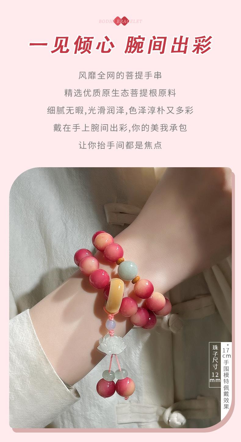 Pulsera de Doble Círculo de Raíz de Bodhi Rosa Púrpura Douyin Plato de Juego Colgante de Loto Luminoso Estilo Nacional Pulsera Juguete de Mano Venta al Mayoreo