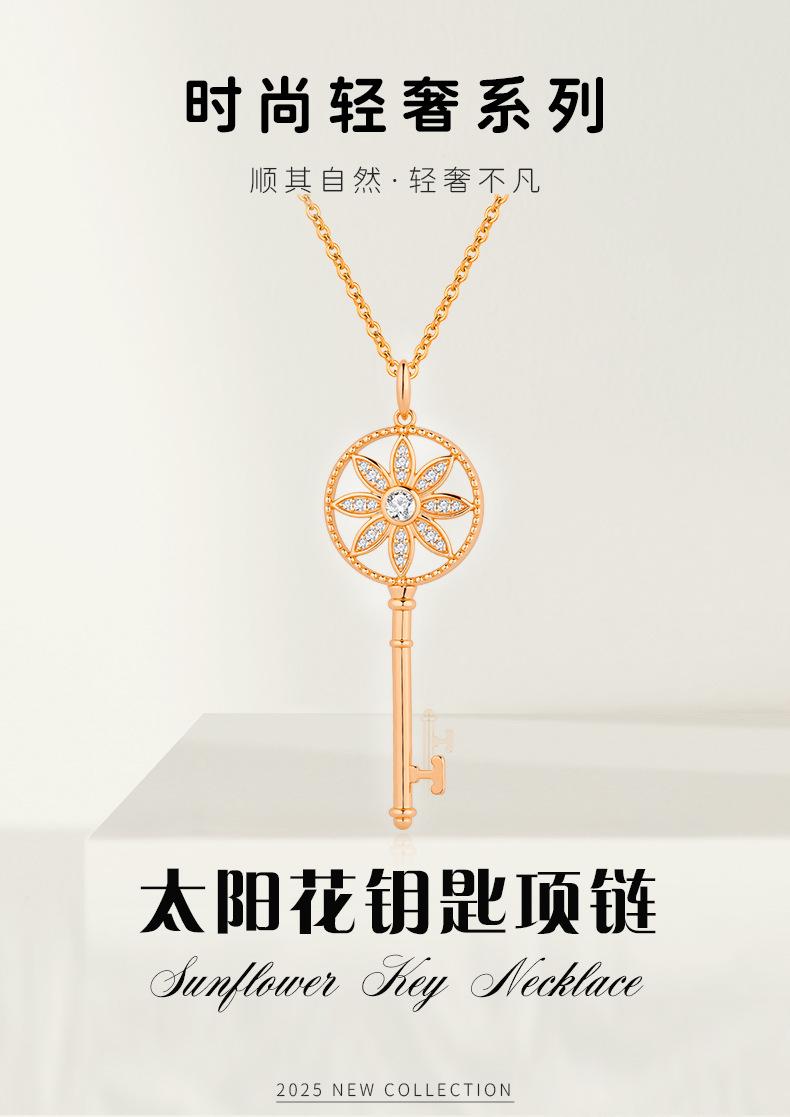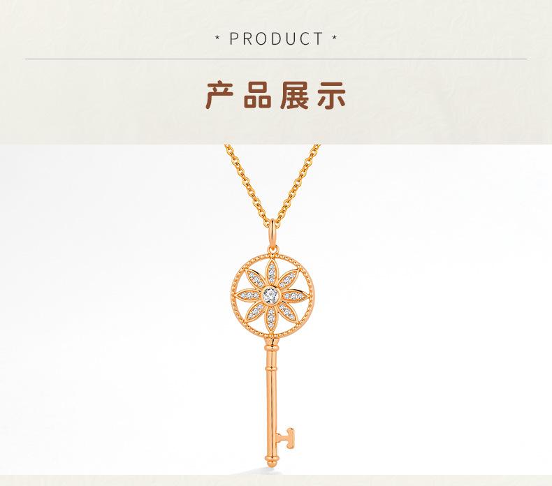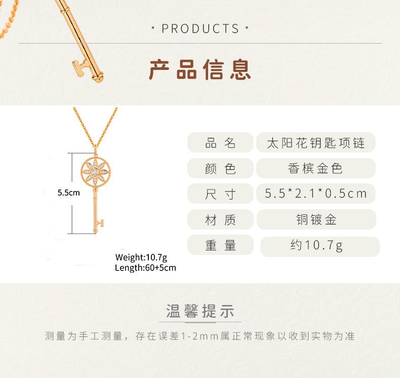 Collar de Llave de Girasol para Mujer Nicho Lujo Ligero Incrustado de Diamantes Cadena de Lana Moda Chapado en Oro Transfronterizo Caliente Collar Largo