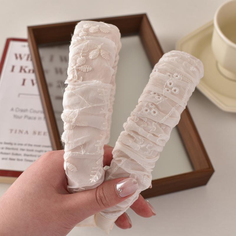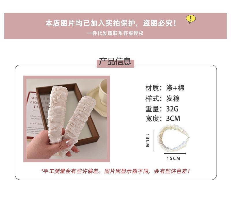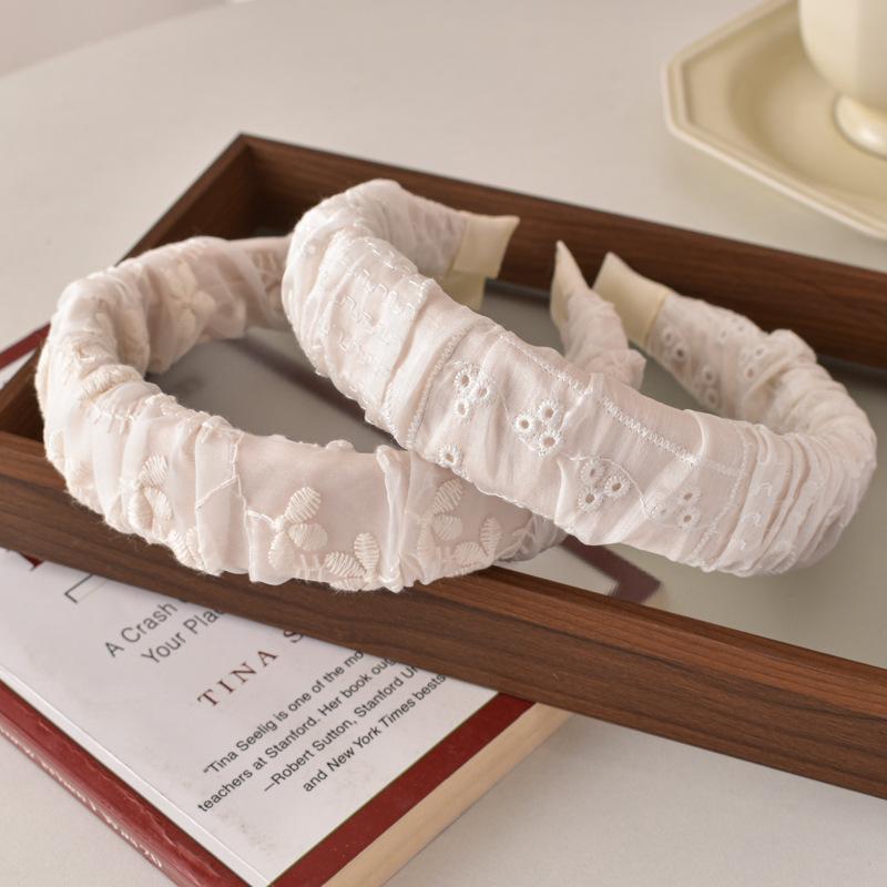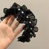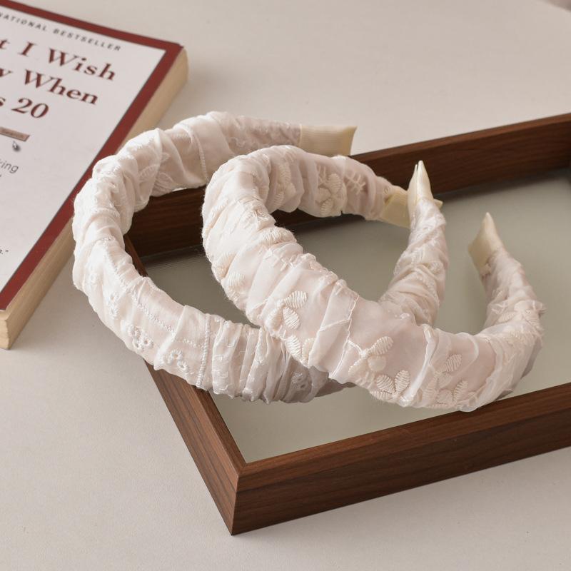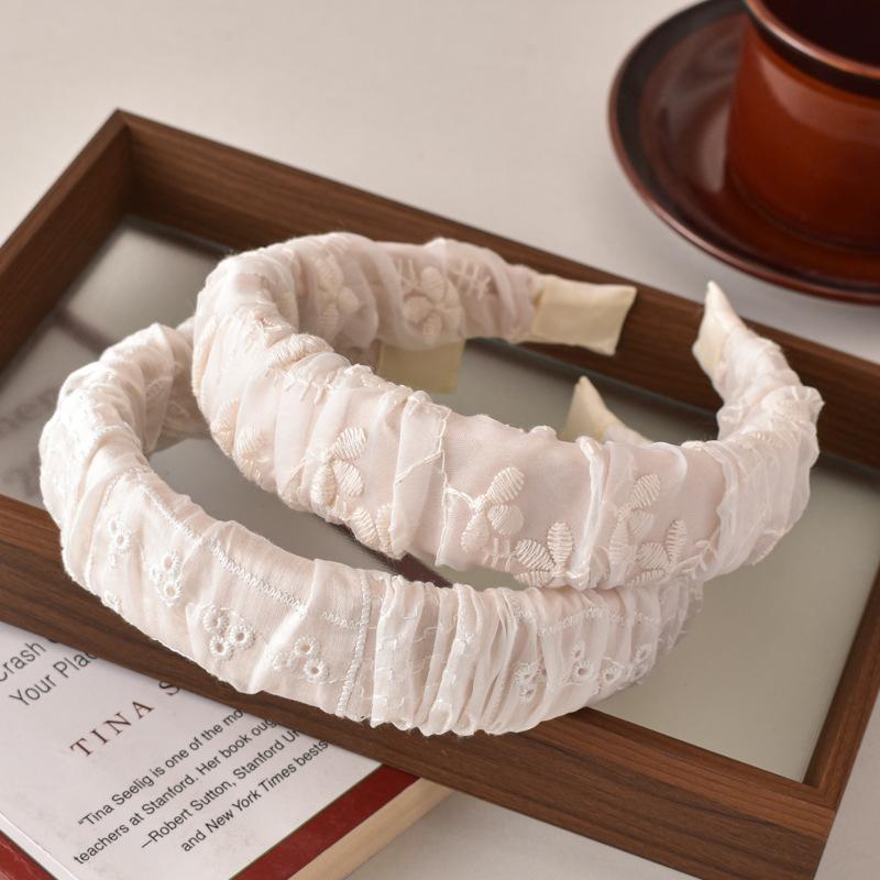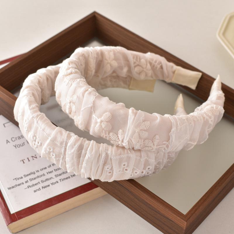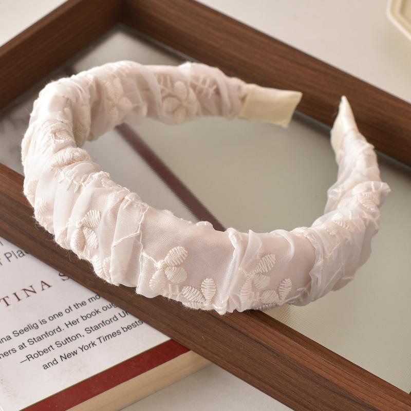 Diadema de Encaje Francés Bordado Plisado con Esponja Diadema de Tela para la Parte Superior Craneal Alta Accesorios para el Cabello Artísticos de Crochet de Malla de Hada