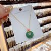 Collar de calcedonia con hebilla de paz y flor de loto de Guofeng, diseño sencillo y elegante, cadena de clavícula ligera y de lujo que combina con todo.