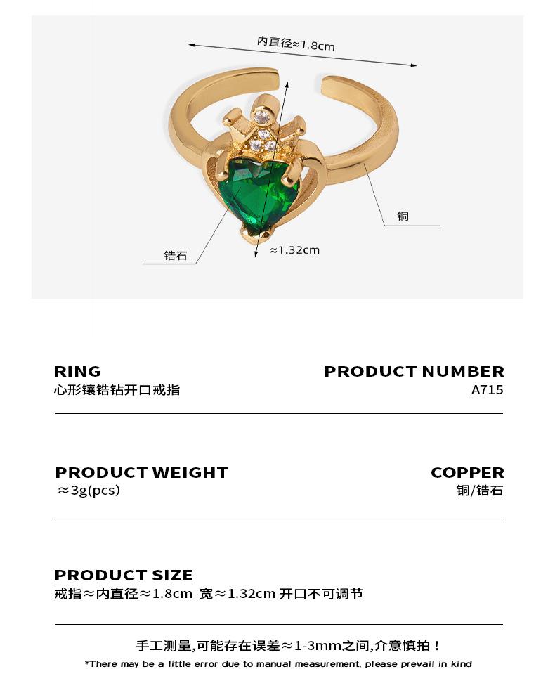 Nuevo anillo abierto de circonita encantador de esmeralda china, material de cobre, nicho, personalidad que no se desvanece, anillo de temperamento exquisito