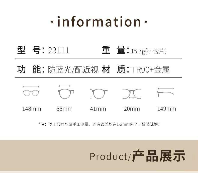 23111 nuevas gafas vintage anti-luz azul para mujer, montura negra de moda, lentes planas tipo ojo de gato, montura de gafas para miopía de estilo universitario