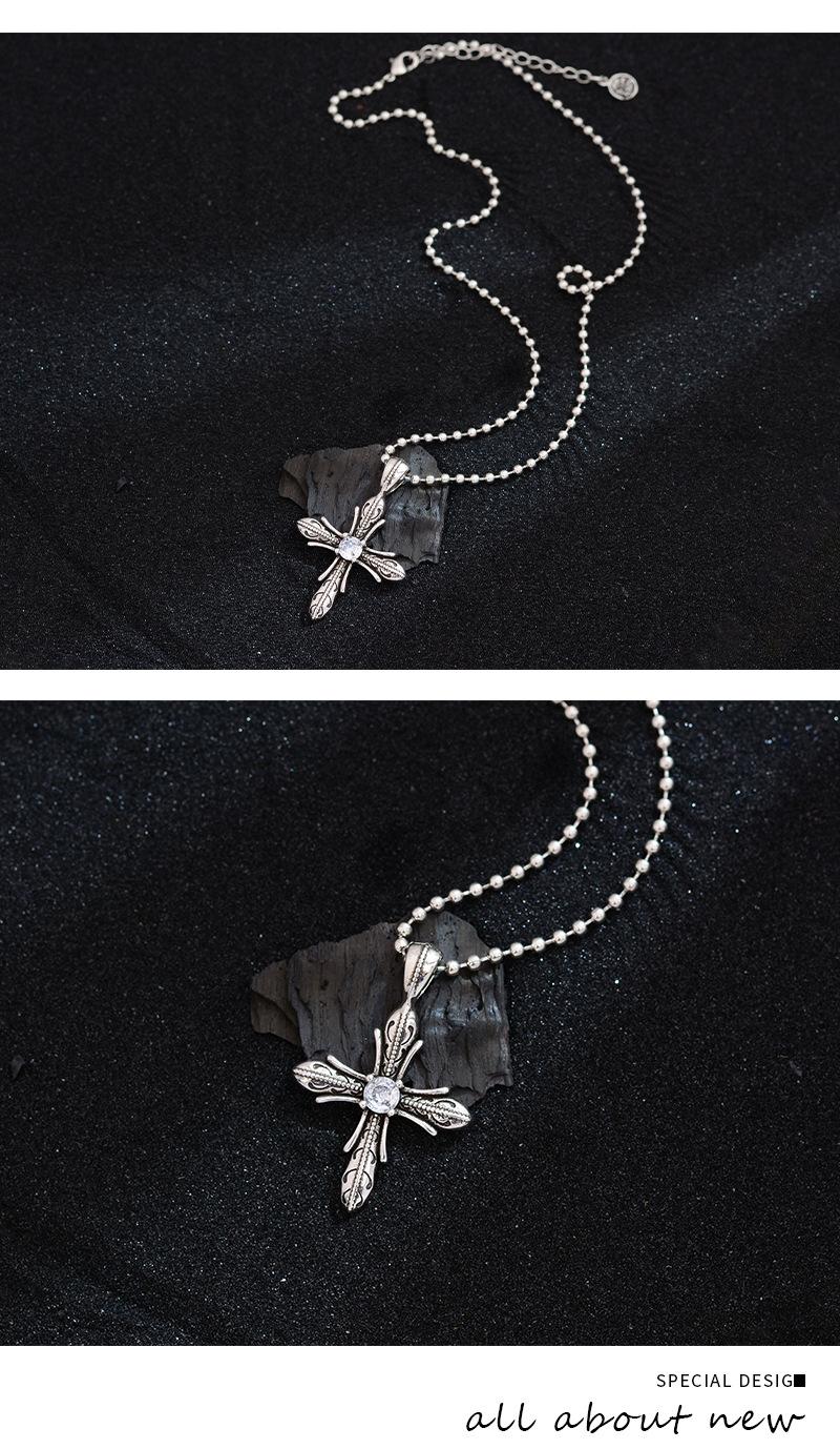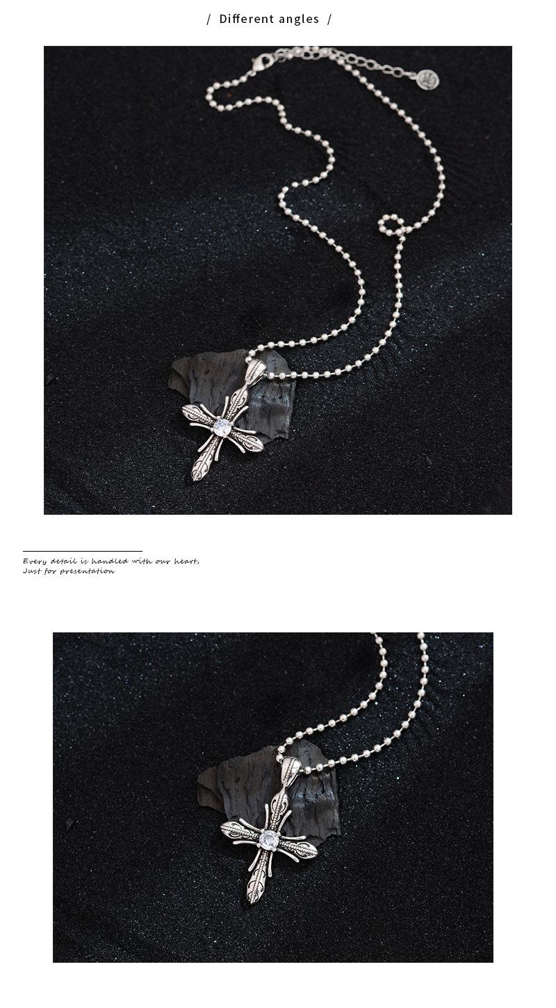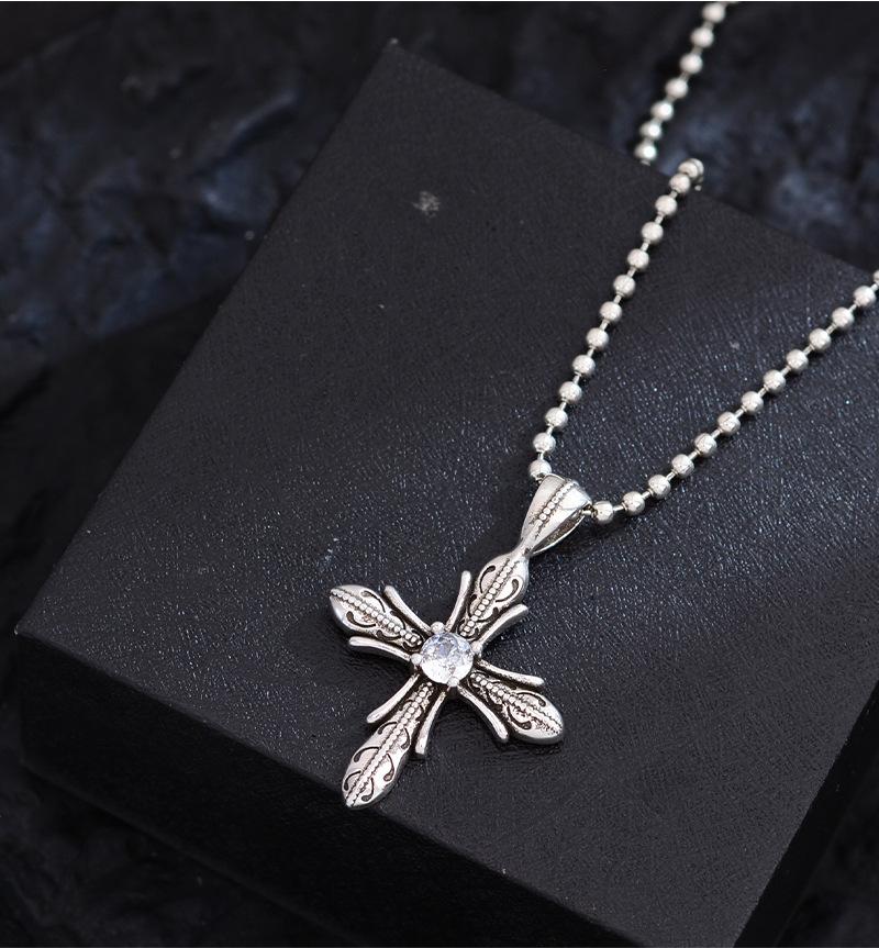 Collar con colgante de cruz con incrustaciones de diamantes, estilo europeo y americano, estilo retro hip-hop, para mujer, cadena de lana moderna.