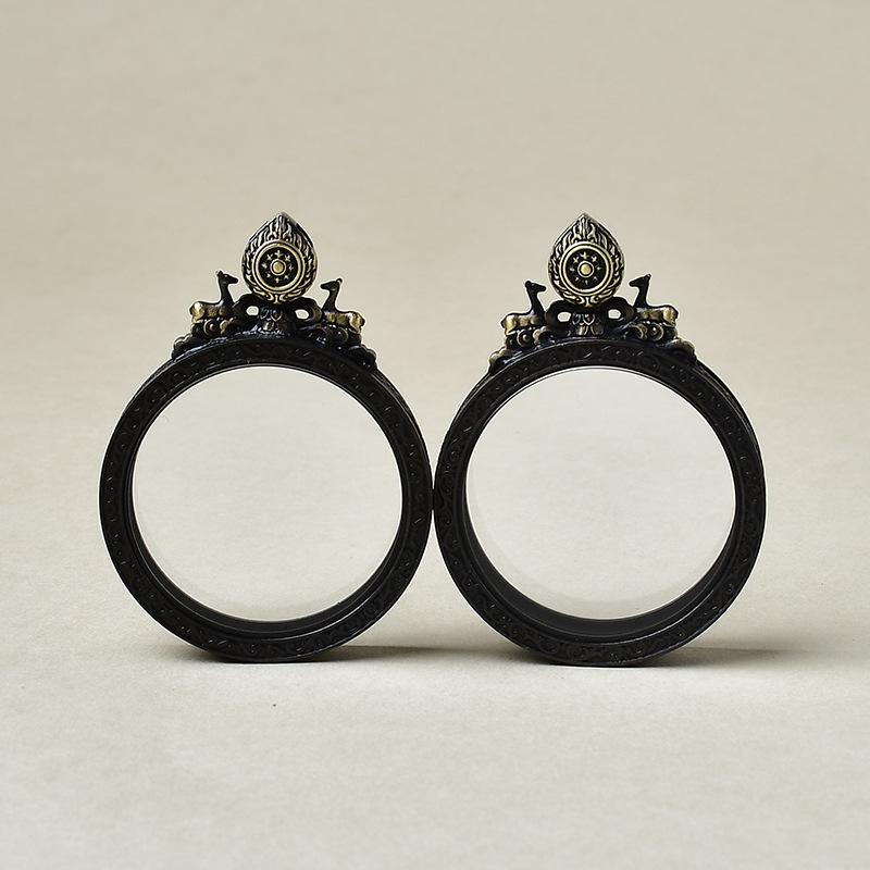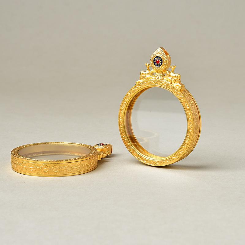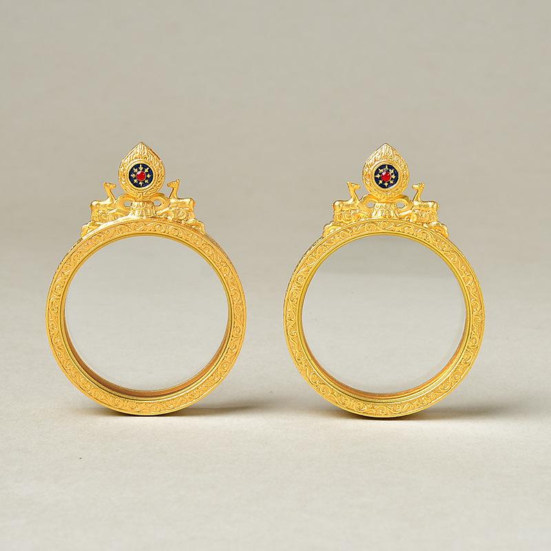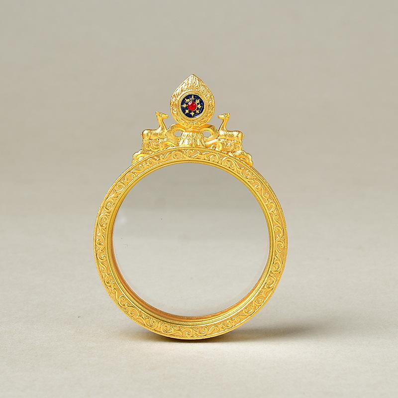 Caja gabu de cobre puro doble ciervo escuchando el sutra cabeza de flor concha de doble cara thangka colgante redondo retro se pueden seleccionar una variedad de patrones