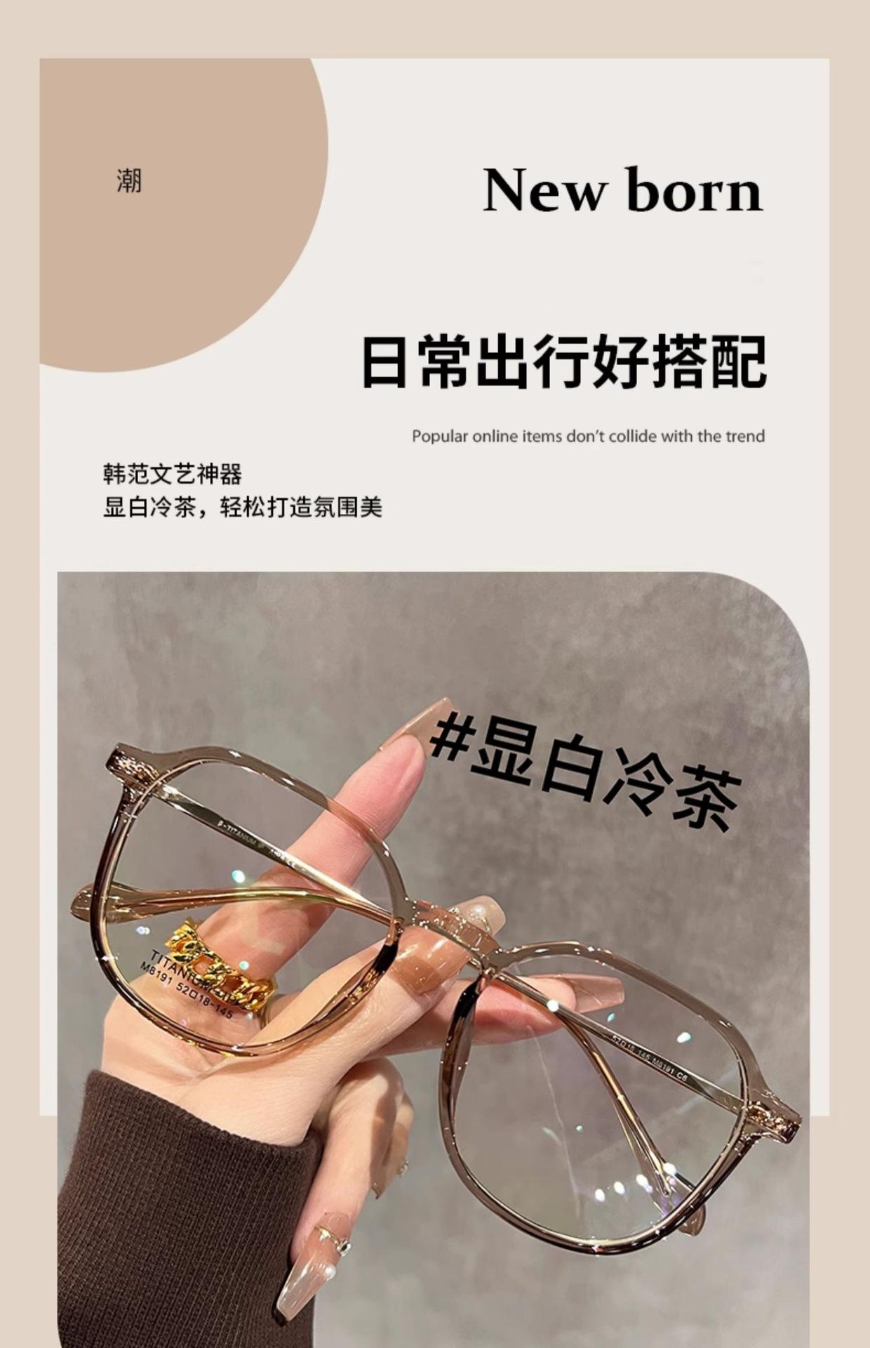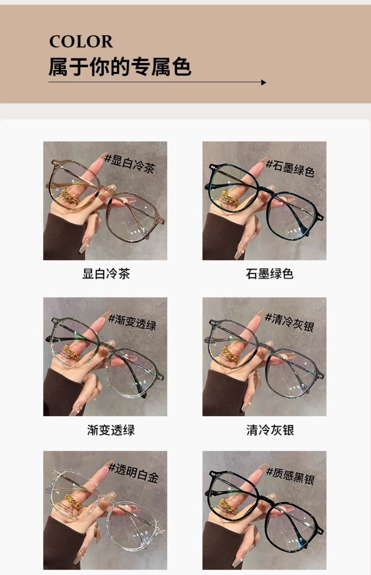 Nuevas gafas para miopía de alta definición con montura grande, color té frío, gafas ópticas poligonales lisas, montura cuadrada ultraligera para niñas