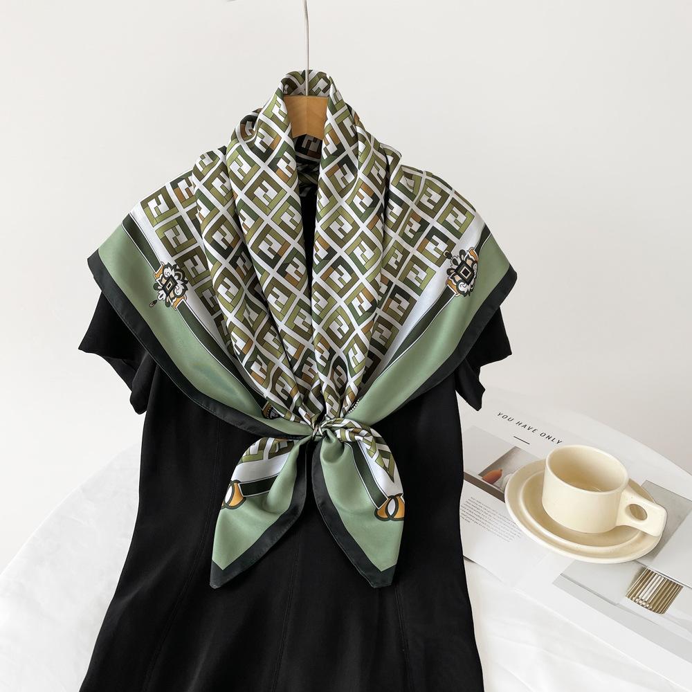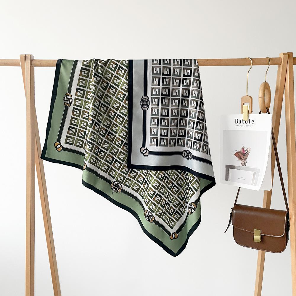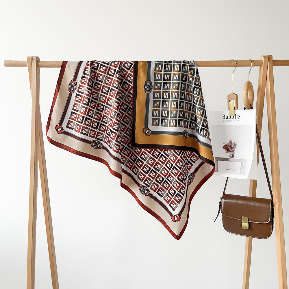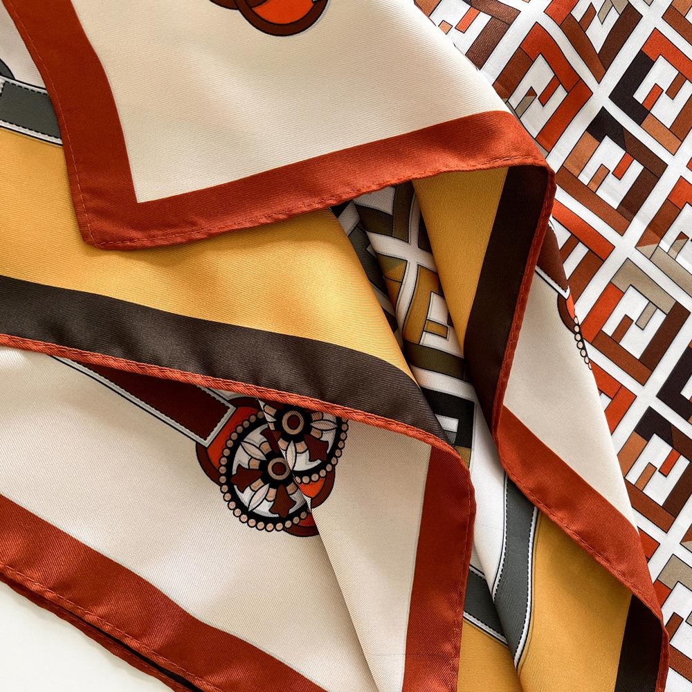 Bufanda de seda de 90 cm para mujer, bufanda estampada de dos colores y doble cara, bufanda cuadrada grande de sarga transfronteriza de Europa y Estados Unidos, chal, venta al por mayor