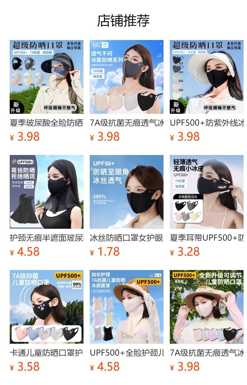 Protector Solar Facial UPF500 Mascarilla Gini Protección UV para Mujer Seda de Hielo Verano Transpirable 7A Antibacteriana Mascarilla de Ácido Hialurónico
