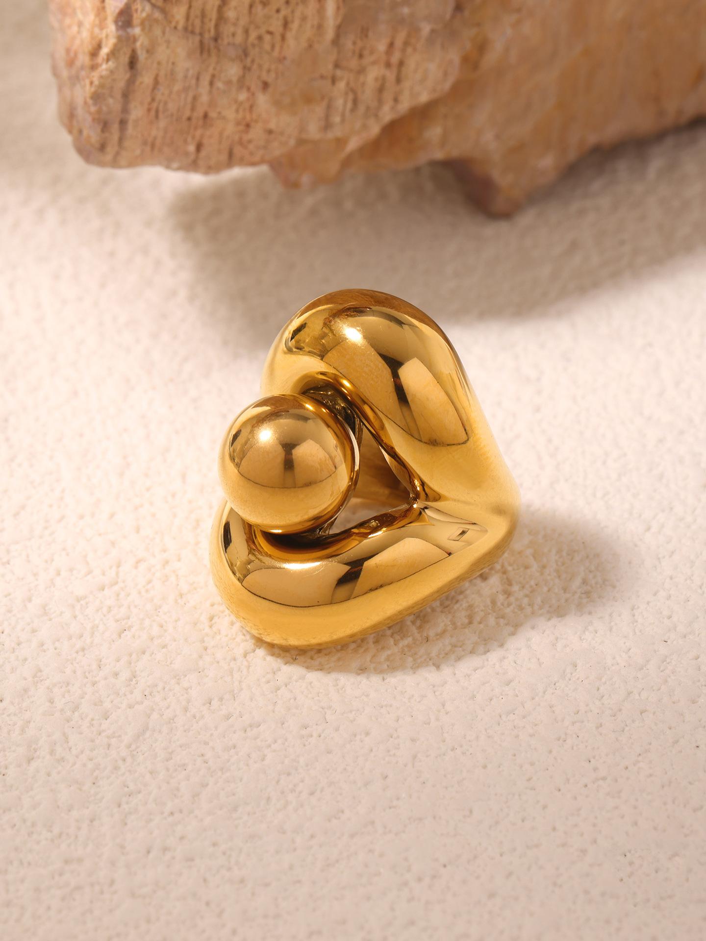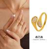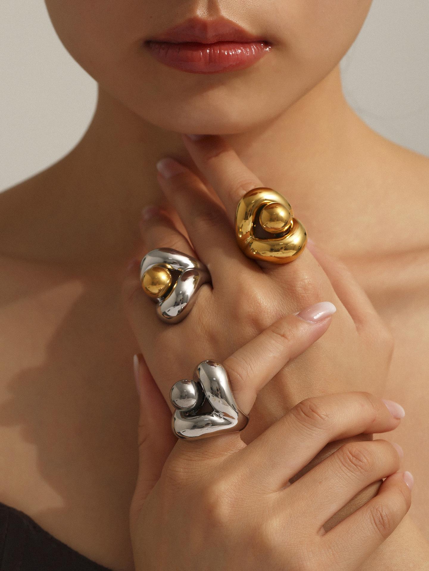 Anillo de cuentas redondas europeas y americanas de acero inoxidable de doble capa Xinyixin no se desvanece oro real de 18k moda exagerada anillo de dedo de comida