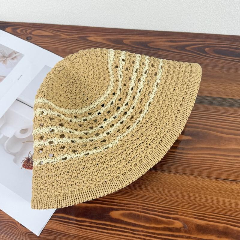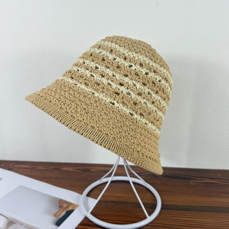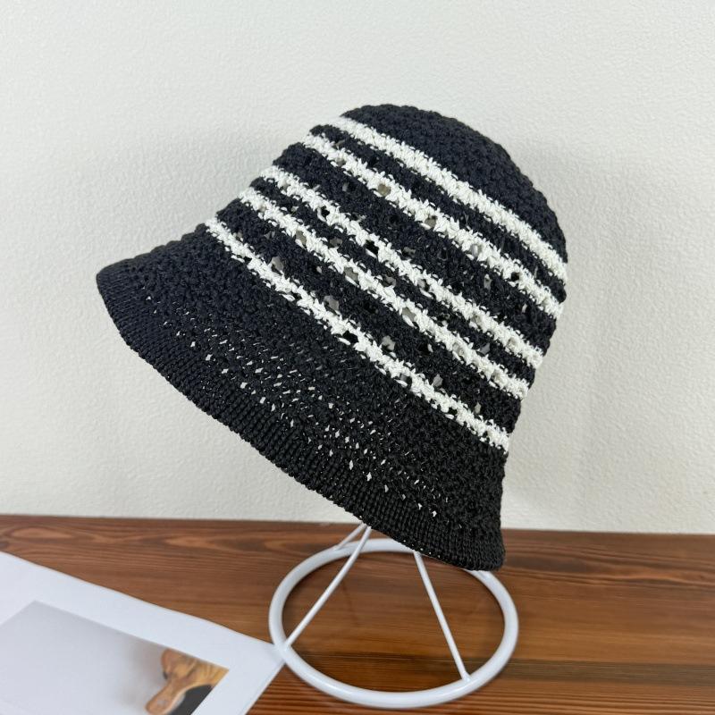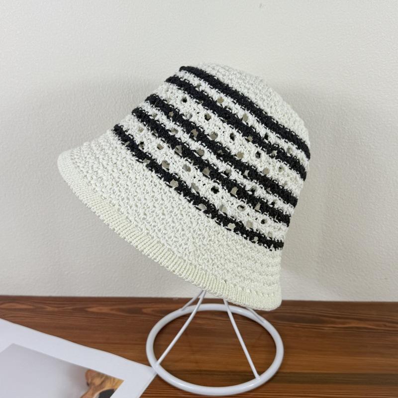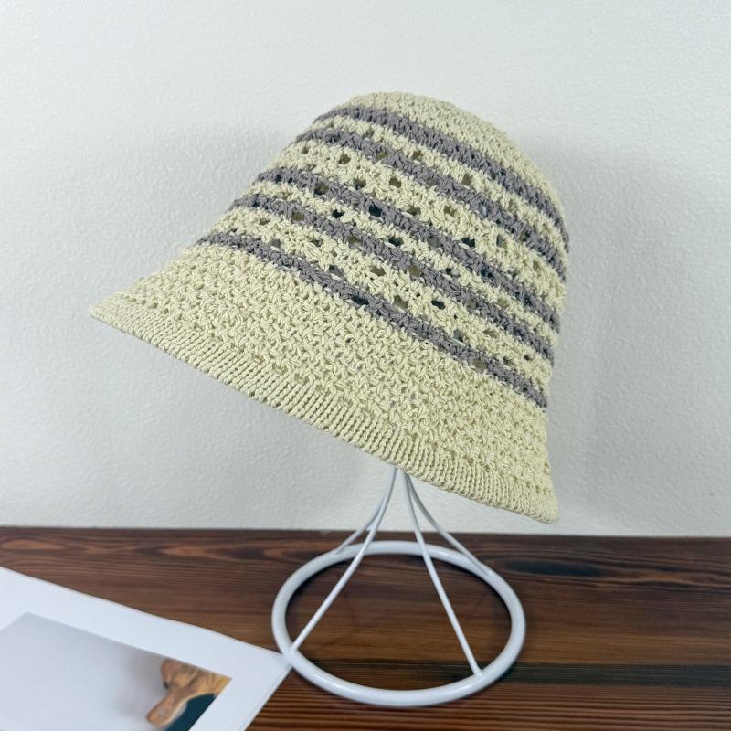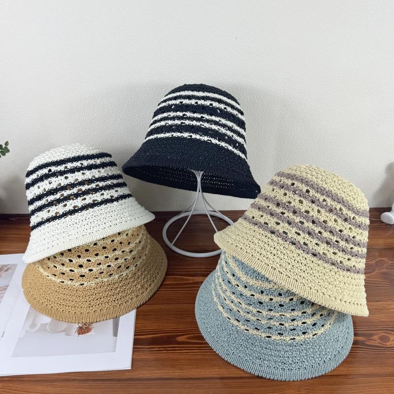 Nuevo sombrero de pescador a rayas hueco para mujer, transpirable, para primavera y verano, protector solar, fino, a la moda, tipo cubo