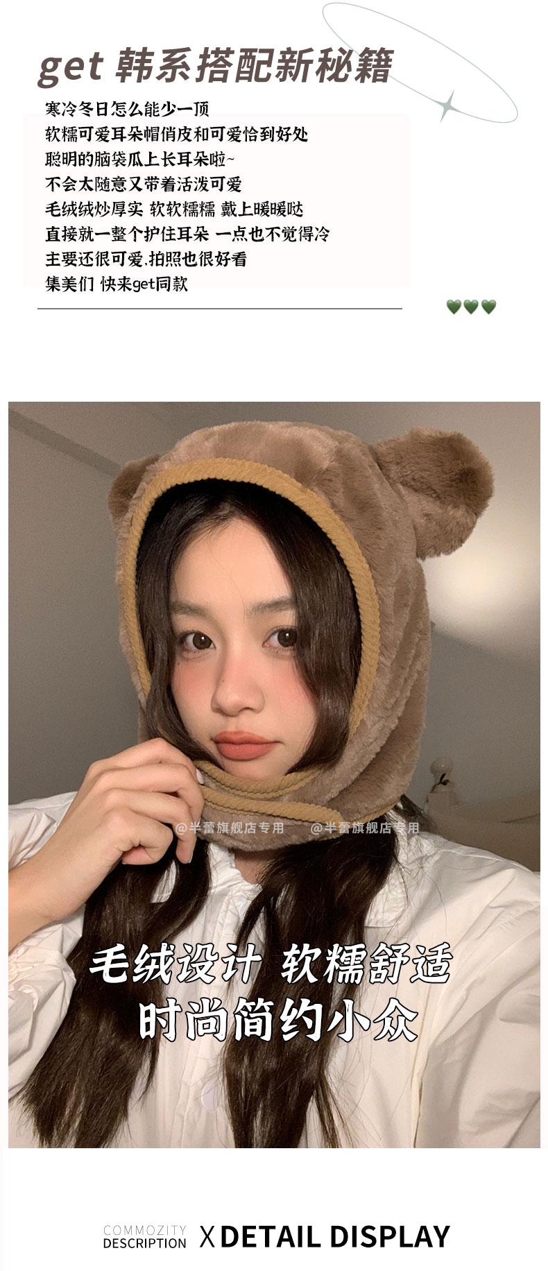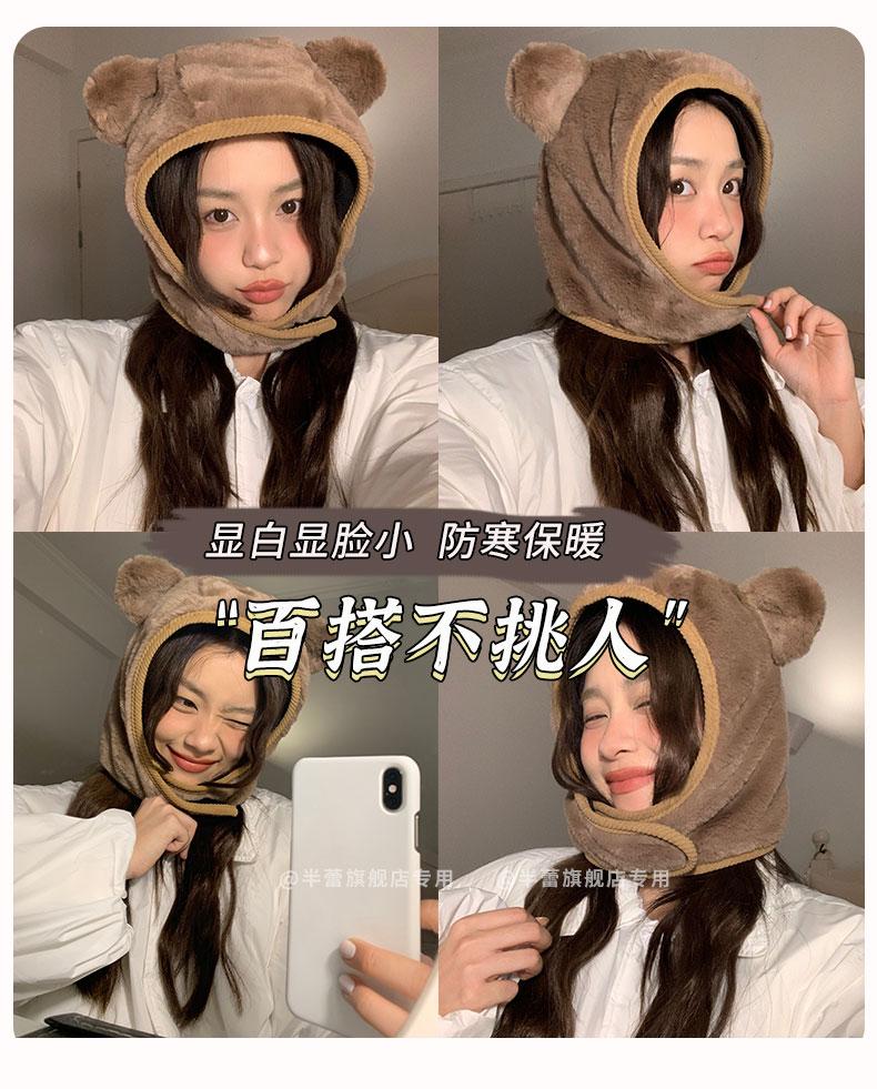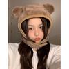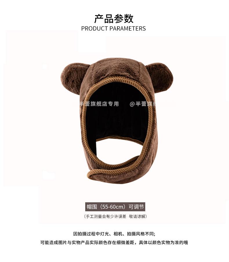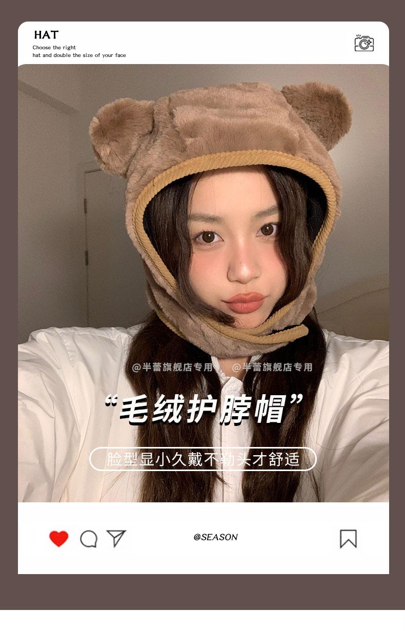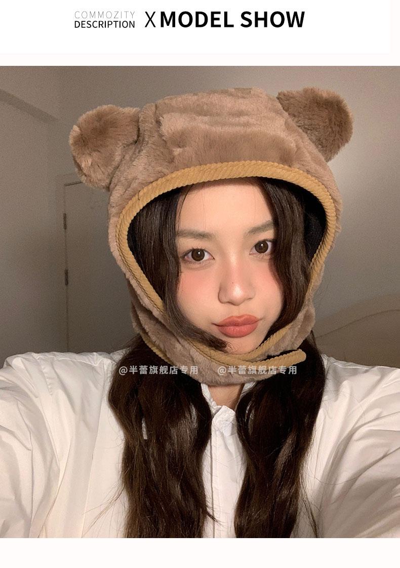 Sombrero pullover con orejas de oso 2023 para mujer, gorro de esquí de invierno, cálido, protección para las orejas, lindo dibujo animado de felpa, sombrero Lei Feng